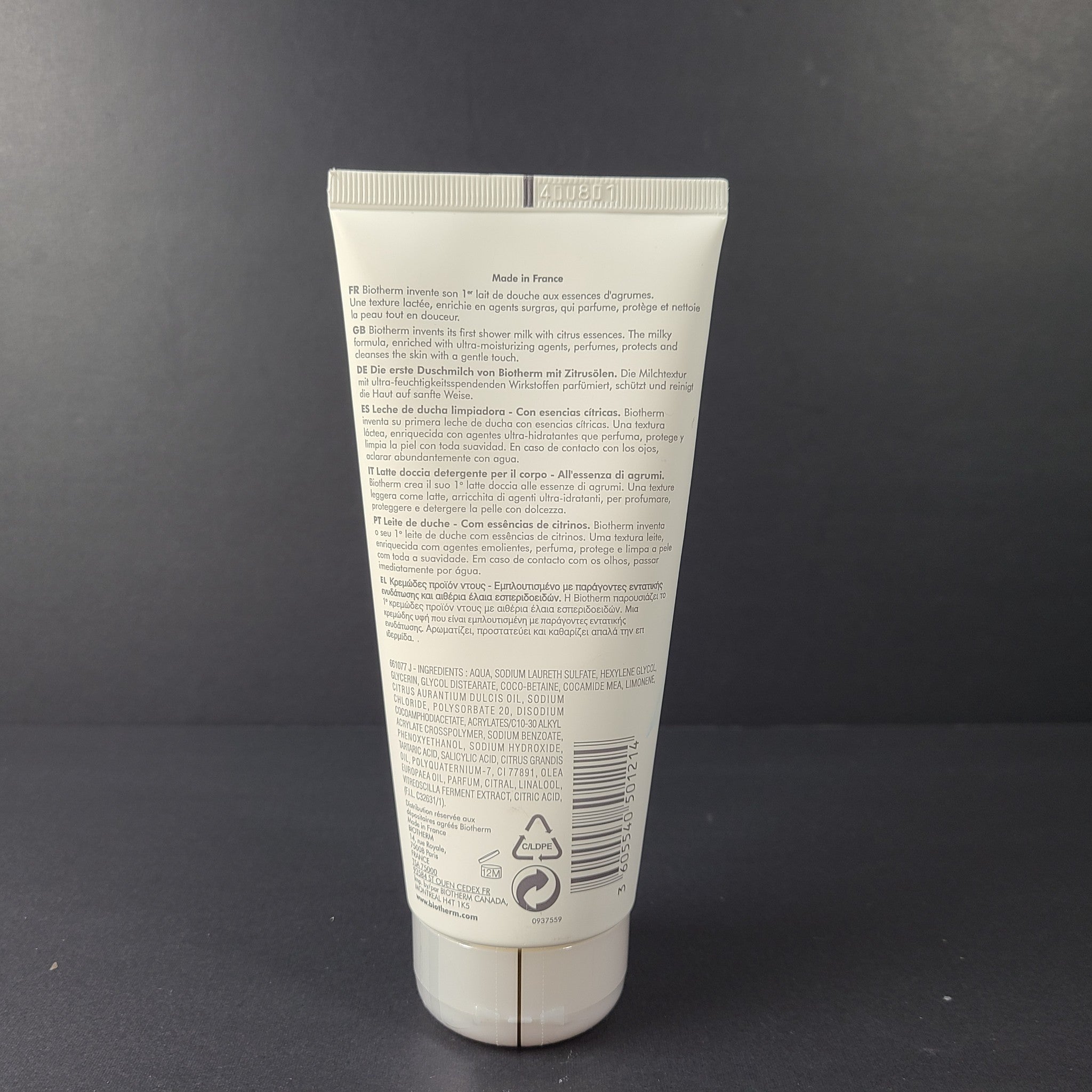 Biotherm Lait De Douche Cleansing Shower Milk Hydration 6.76 fl. oz.NEW