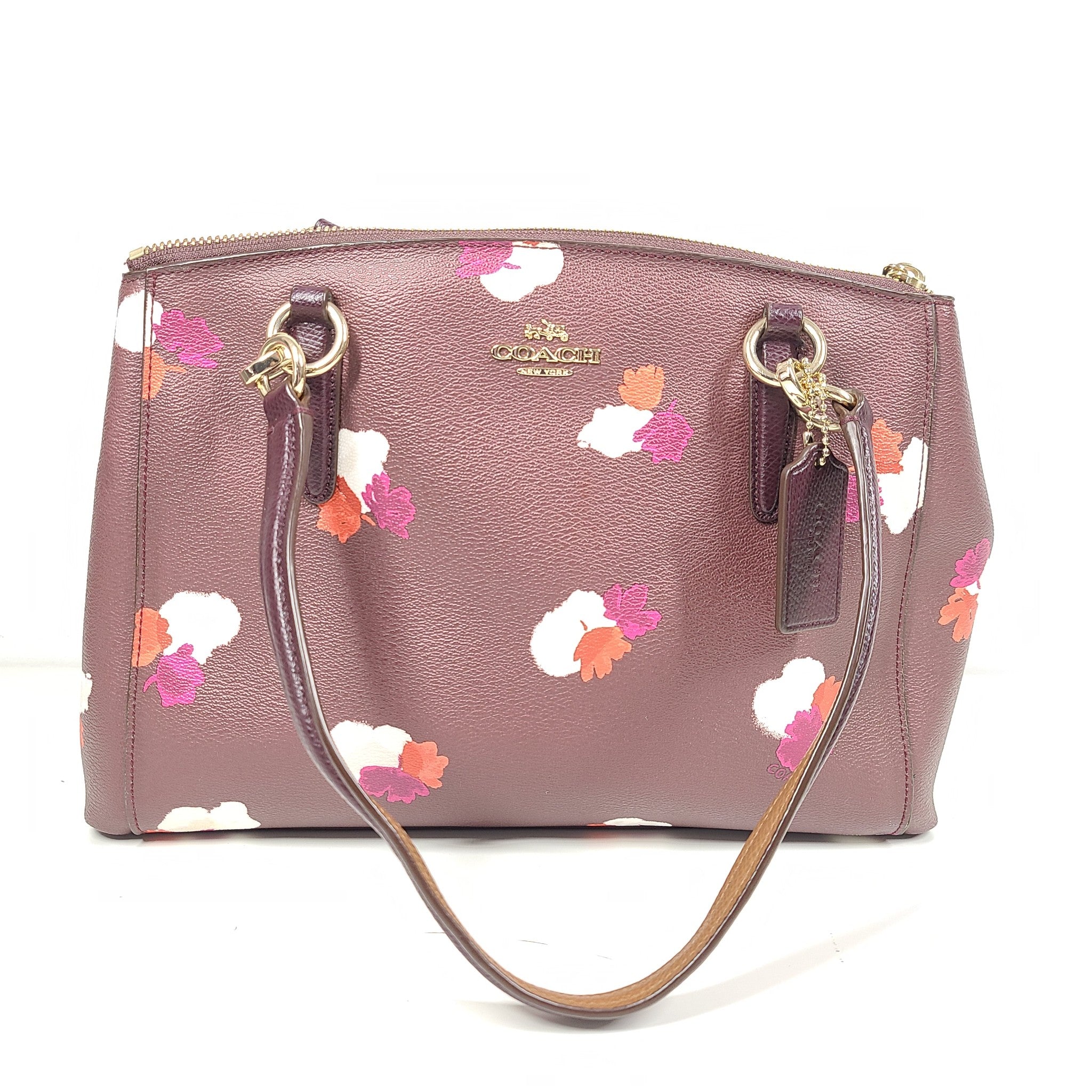 Coach Christie Carryall Burgundy Flower Print Coated Canvas Satchel