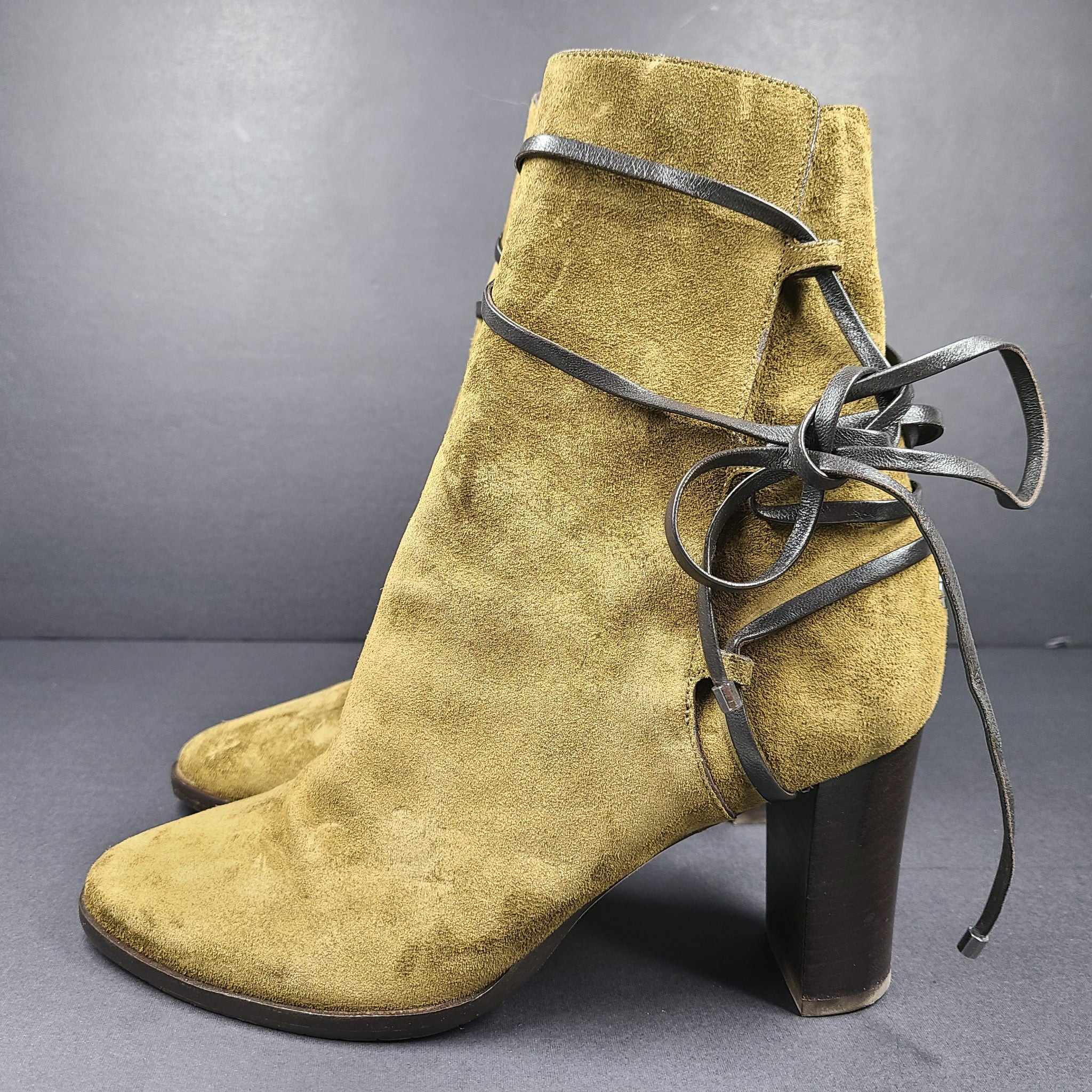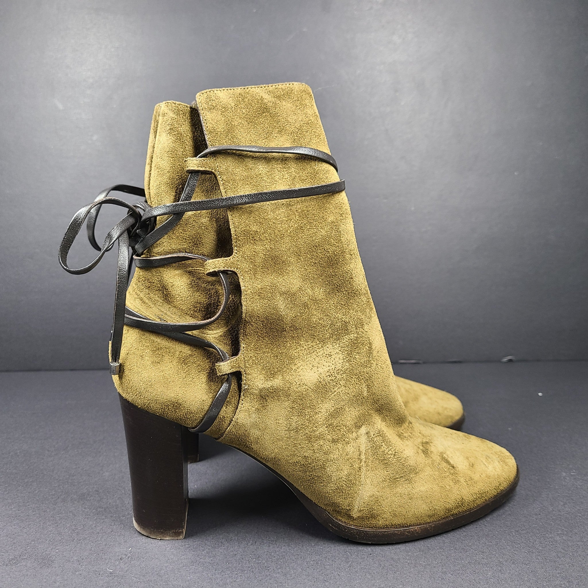 Jimmy Choo Hampton 80 Women's Block Heel Booties Suede Olive Sz 8 Made in Italy