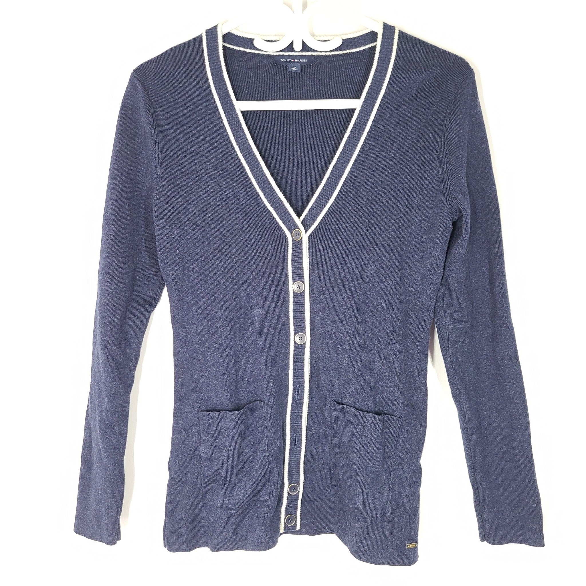 Tommy Hilfiger Women's V-Neck Button Down Sweater Vest Cardigan Navy Blue Sz S