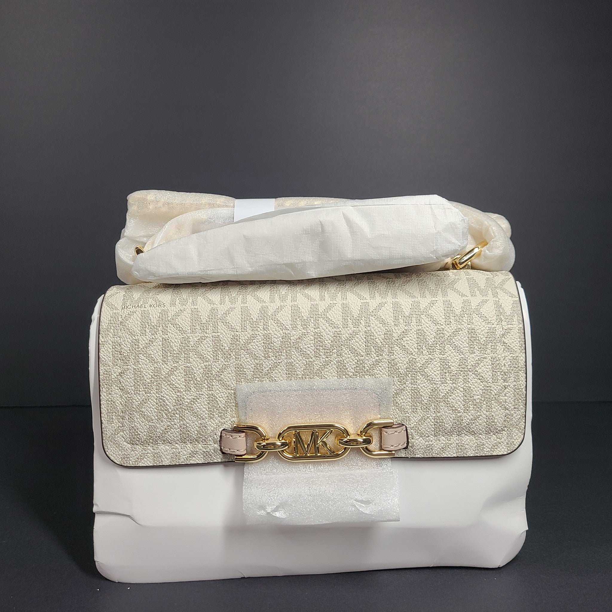 Michael Kors Heather NS Crossbody Bag Leather Monogram Vanilla Pink