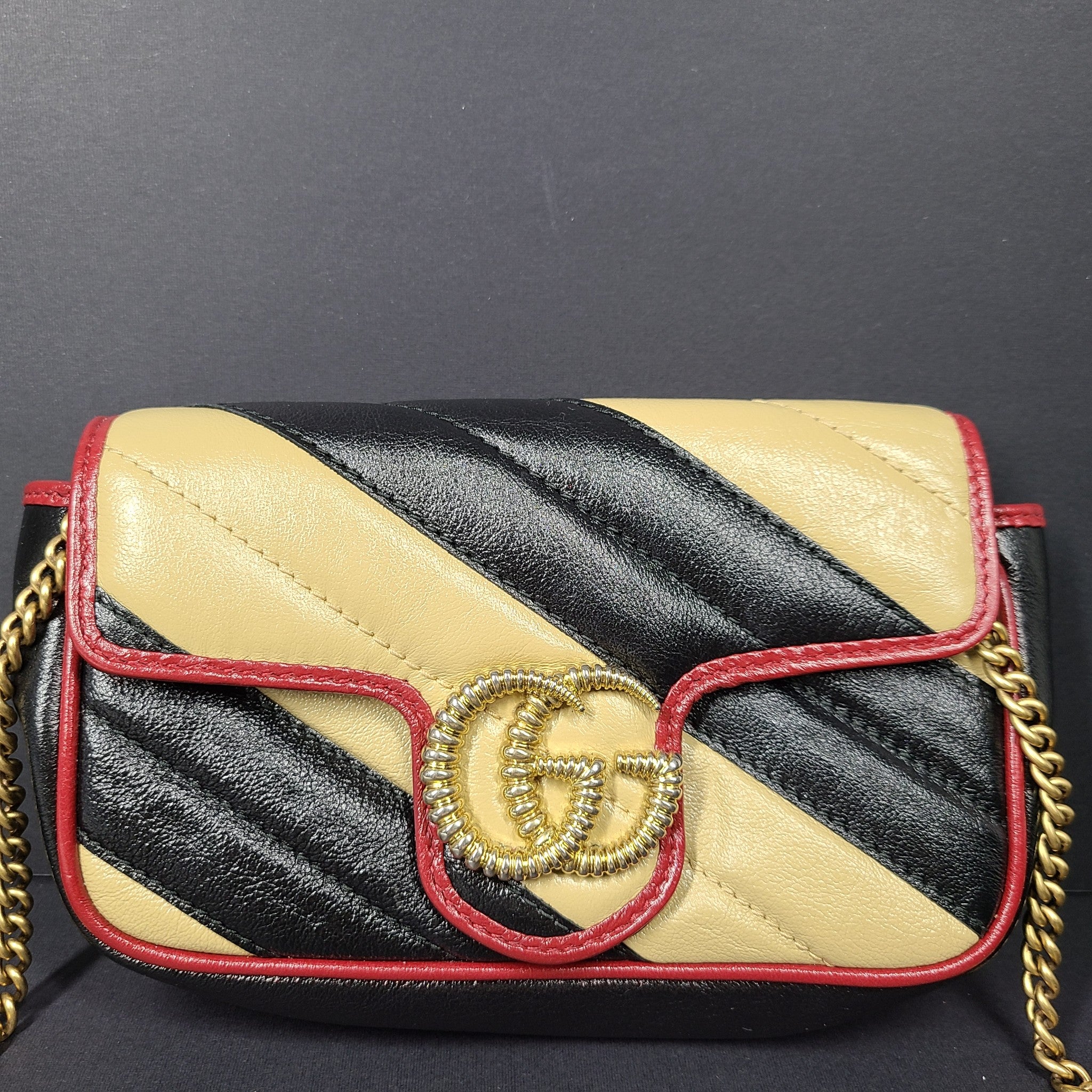 Gucci GG Marmont Bag Super Mini Flap Torchon Matelasse Diagonal Striped 574969
