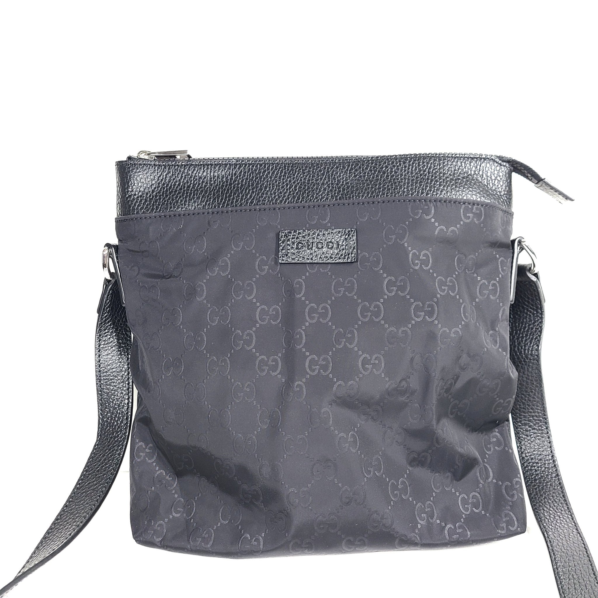 Gucci GG Nylon Monogram Dollar Calfskin Messenger Bag 510342 Crossbody Black