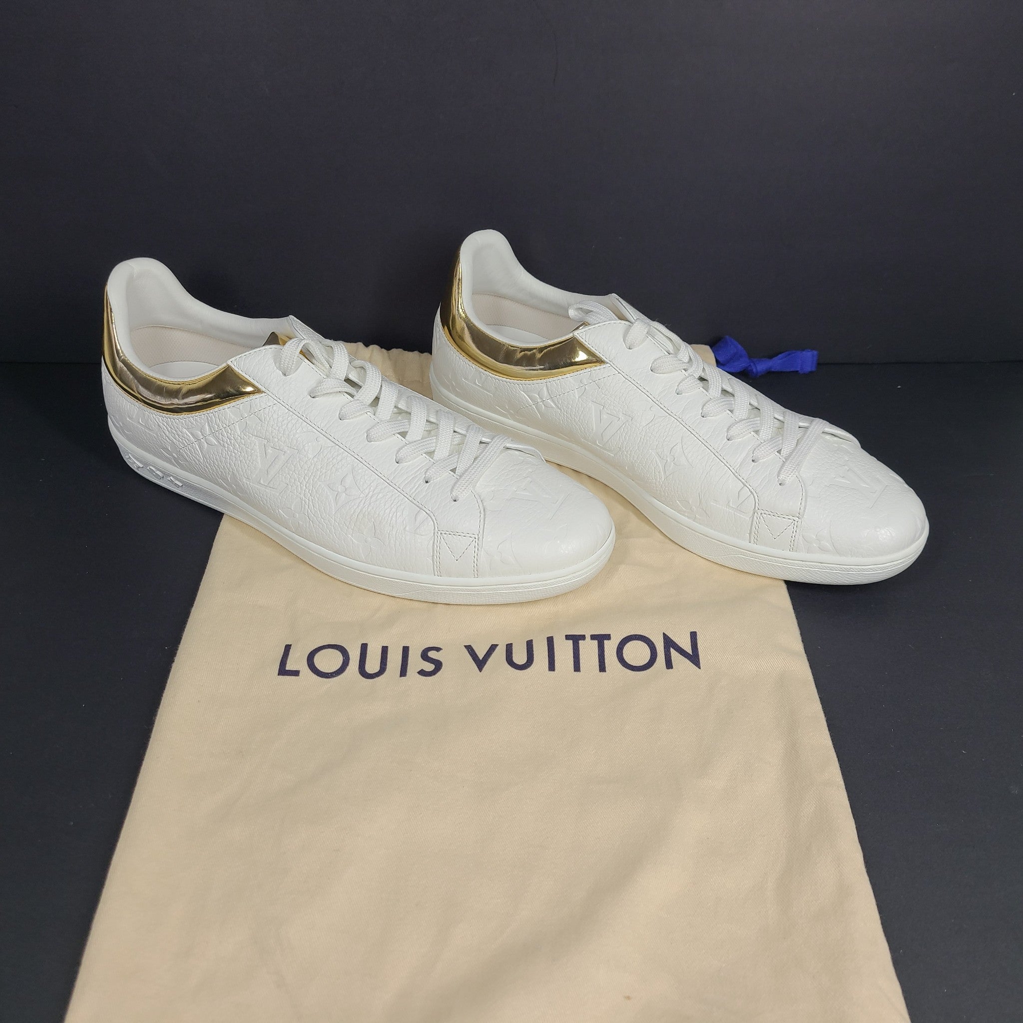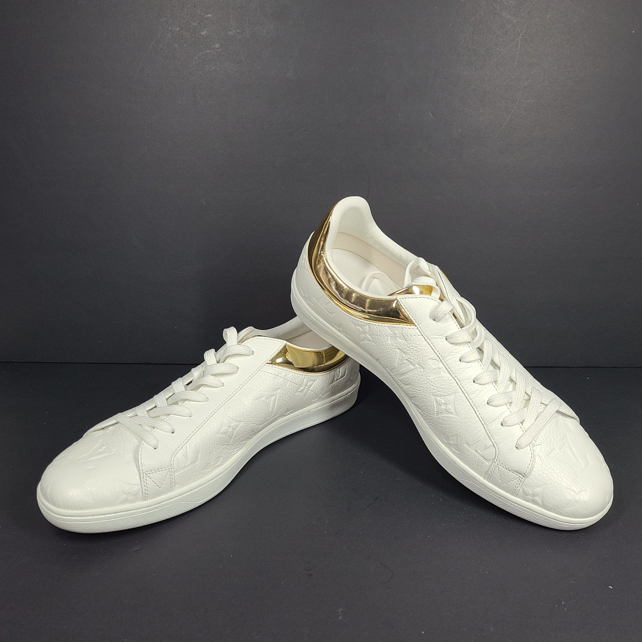 Louis Vuitton Luxembourg Trainer Sneakers Monogram Embossed White/Gold 8.5 EXC!