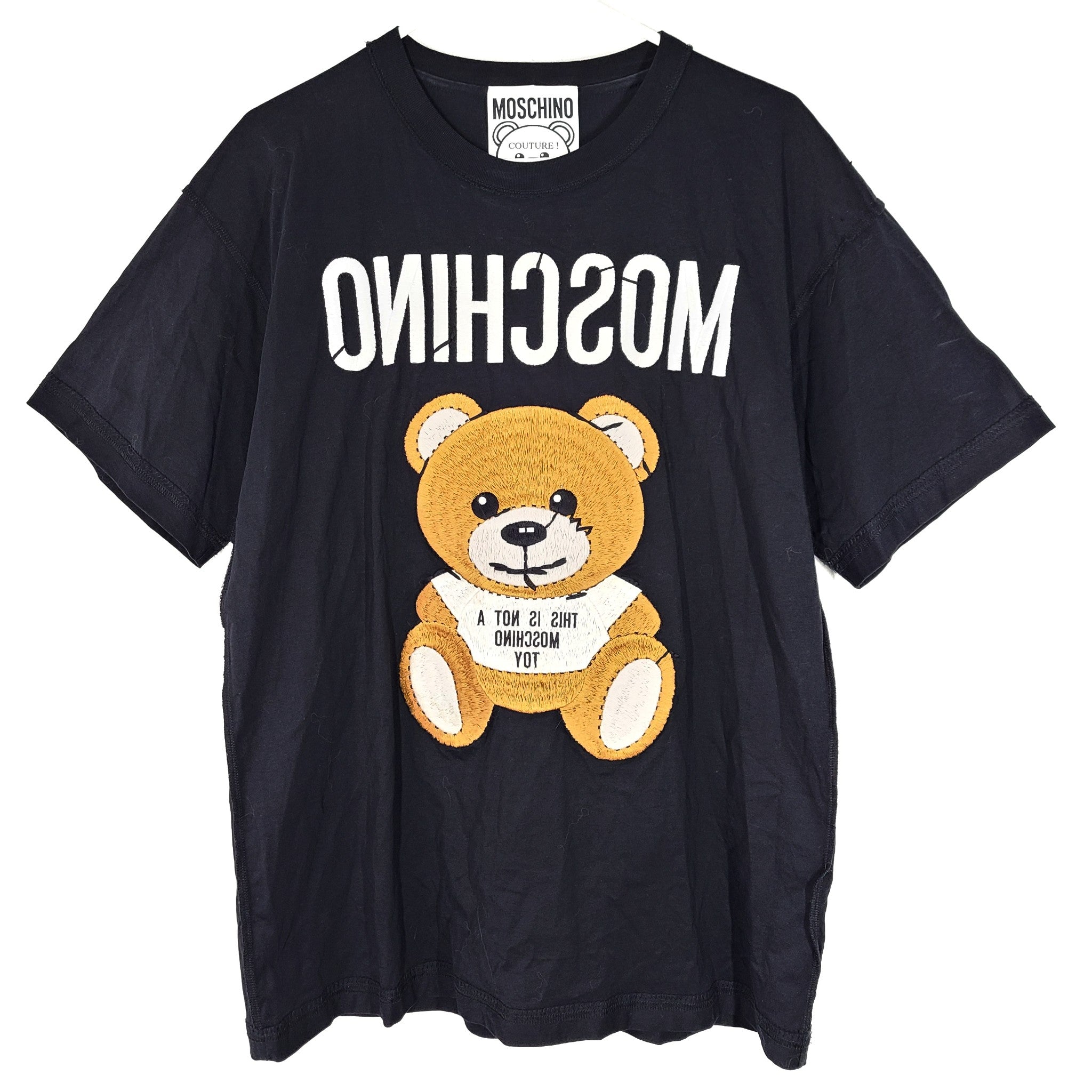 Moschino Couture Women's Oversized Teddy Bear Embroidered T-Shirt Black Sz M