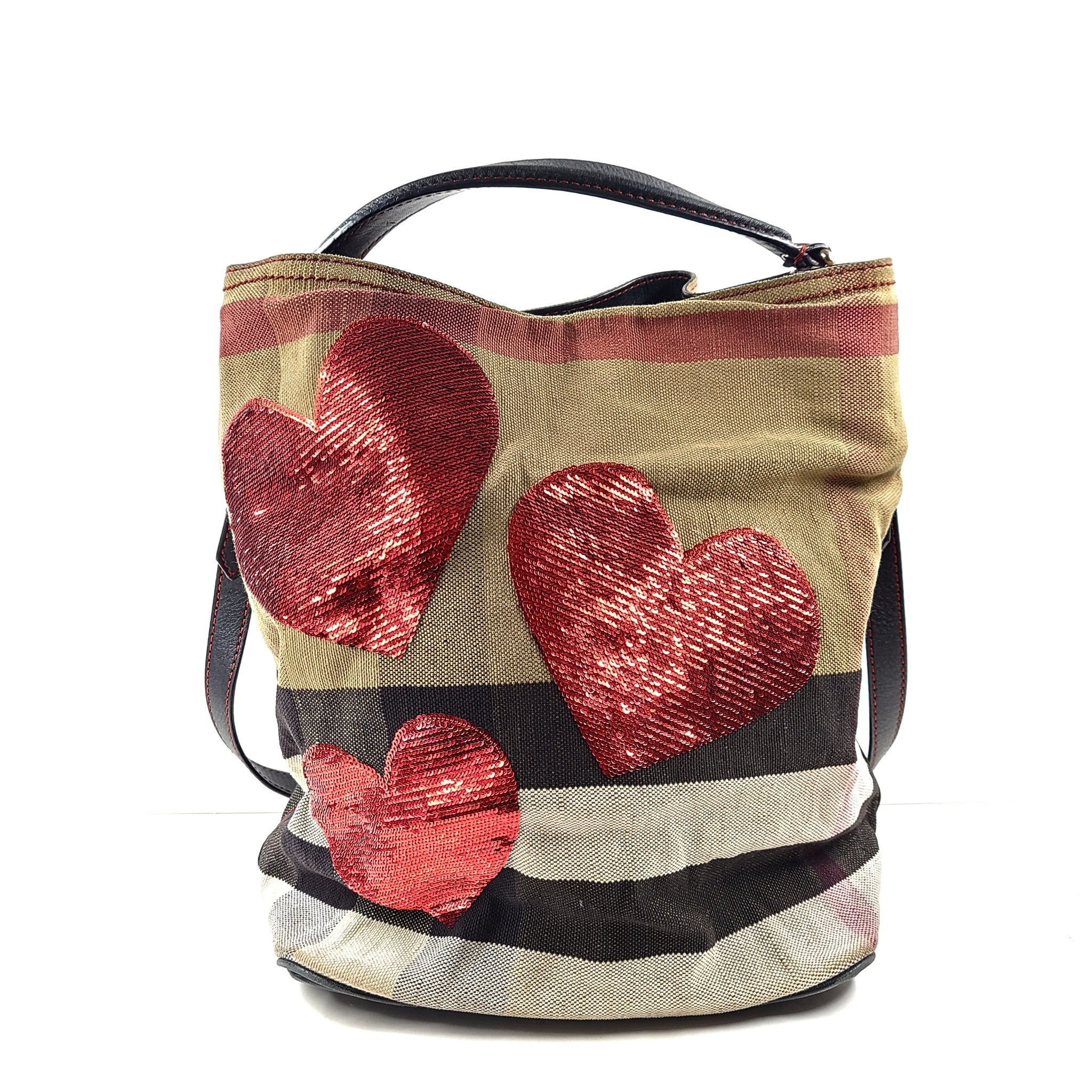 Burberry Women's Ashby Bucket Bag Check w/ Ltd Edition Sequin Hearts