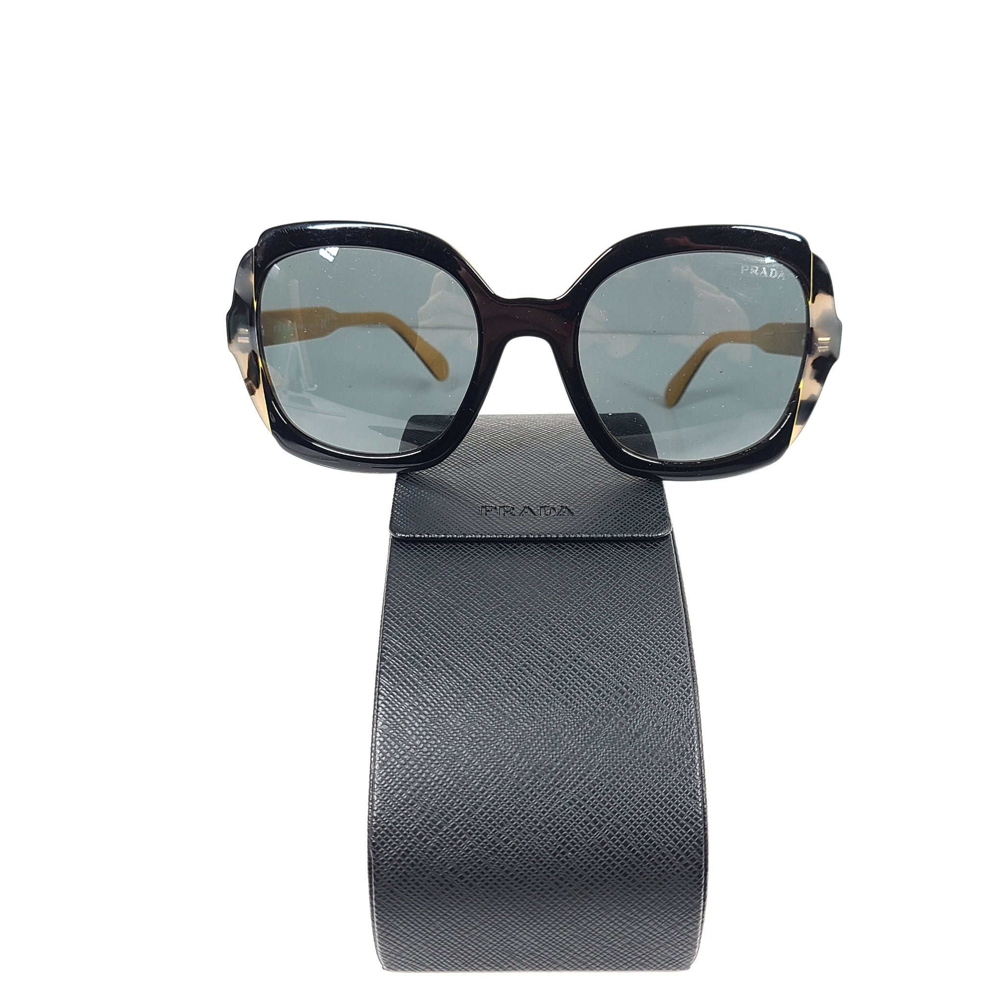 Prada Round Sunglasses SPR 16U Black Tortoise Shell 54-21 140 Large Full Frame