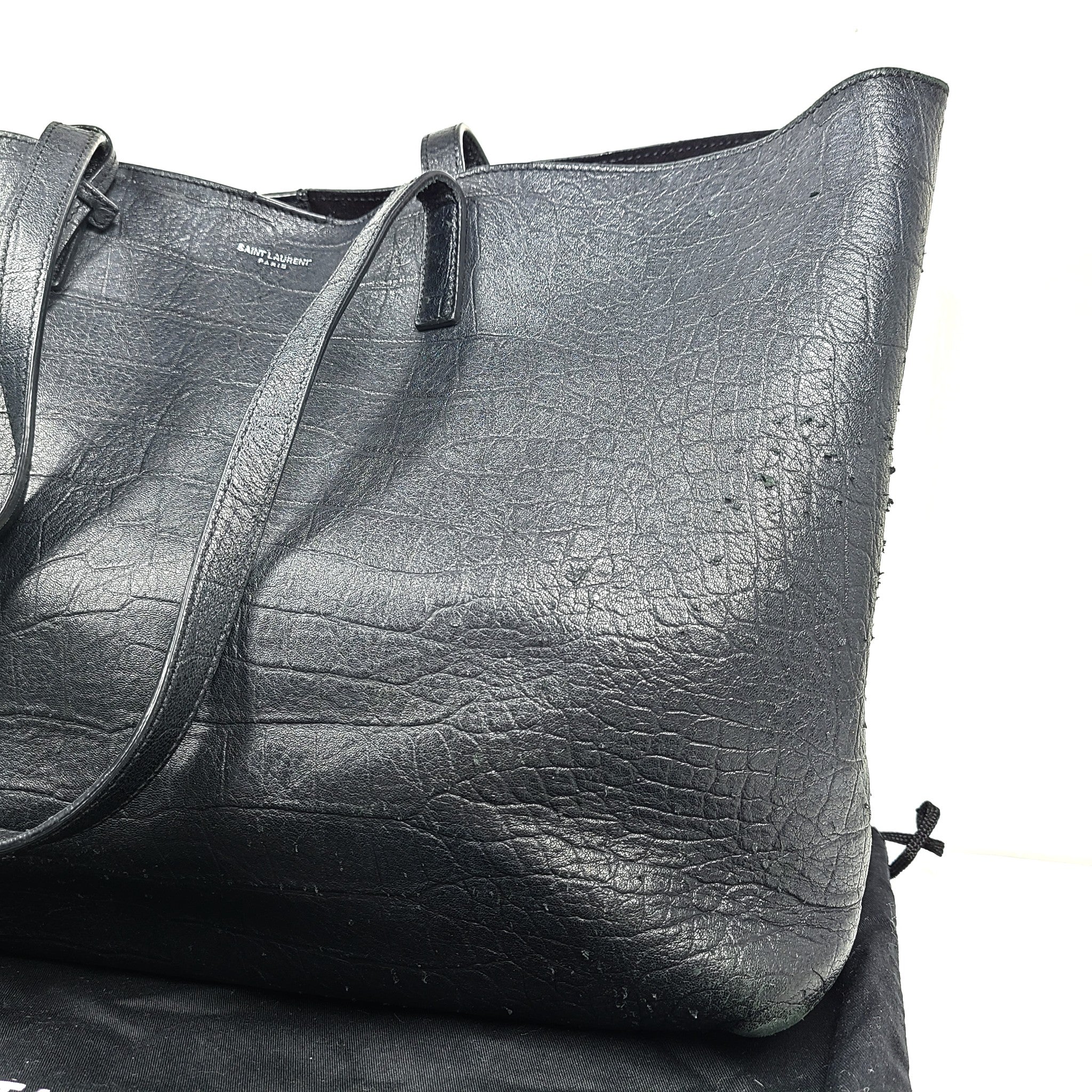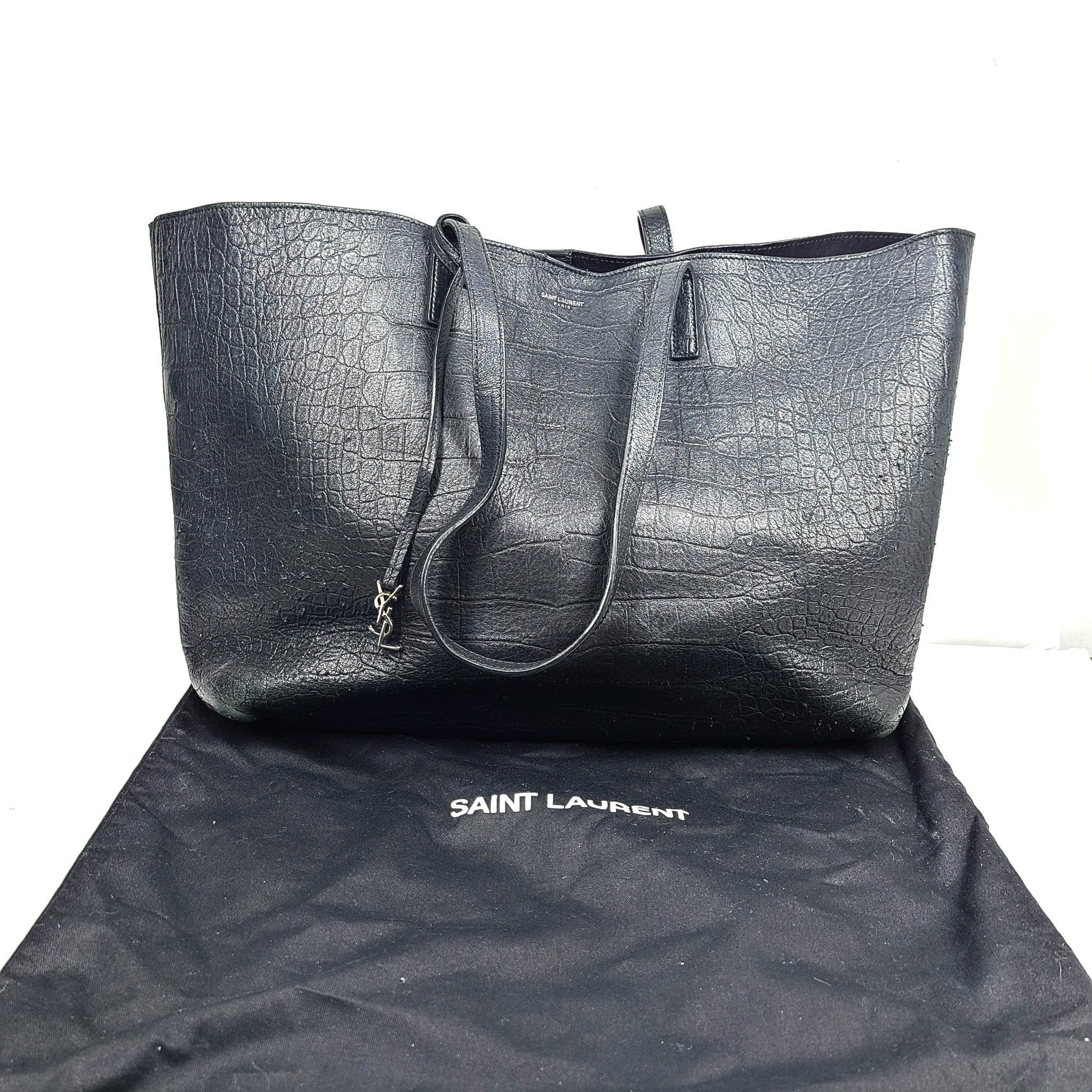 Saint Laurent Calfskin Leather Crocodile Embossed Large Shopper Tote Bag Black