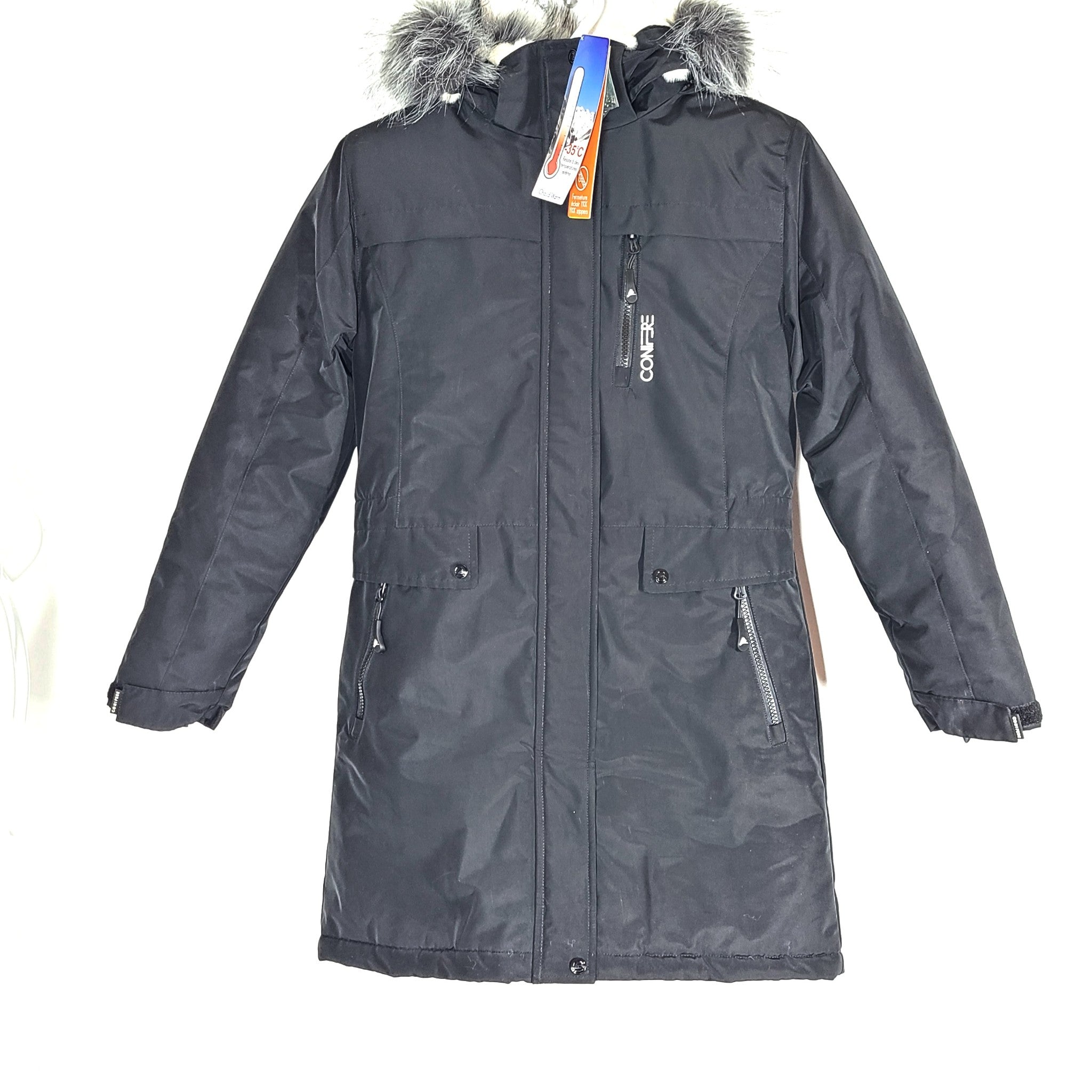 Conifere Pietra Girls' Winter Coat Parka Black w Faux Fur Hood Trim Sz S (10Y)