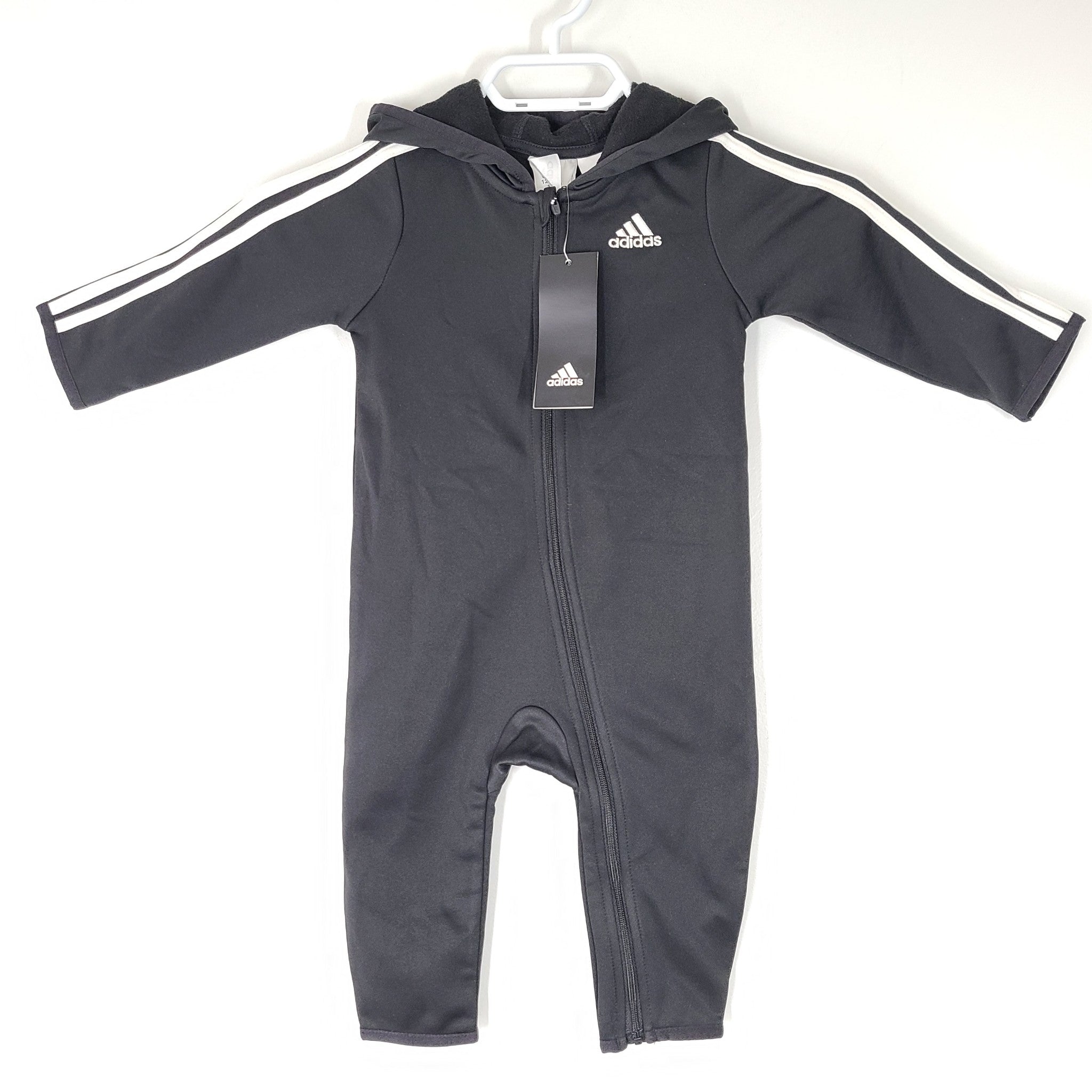 Adidas Toddler Tracksuit Full Zip Hooded Jumpsuit AM0020 Black 12 Months