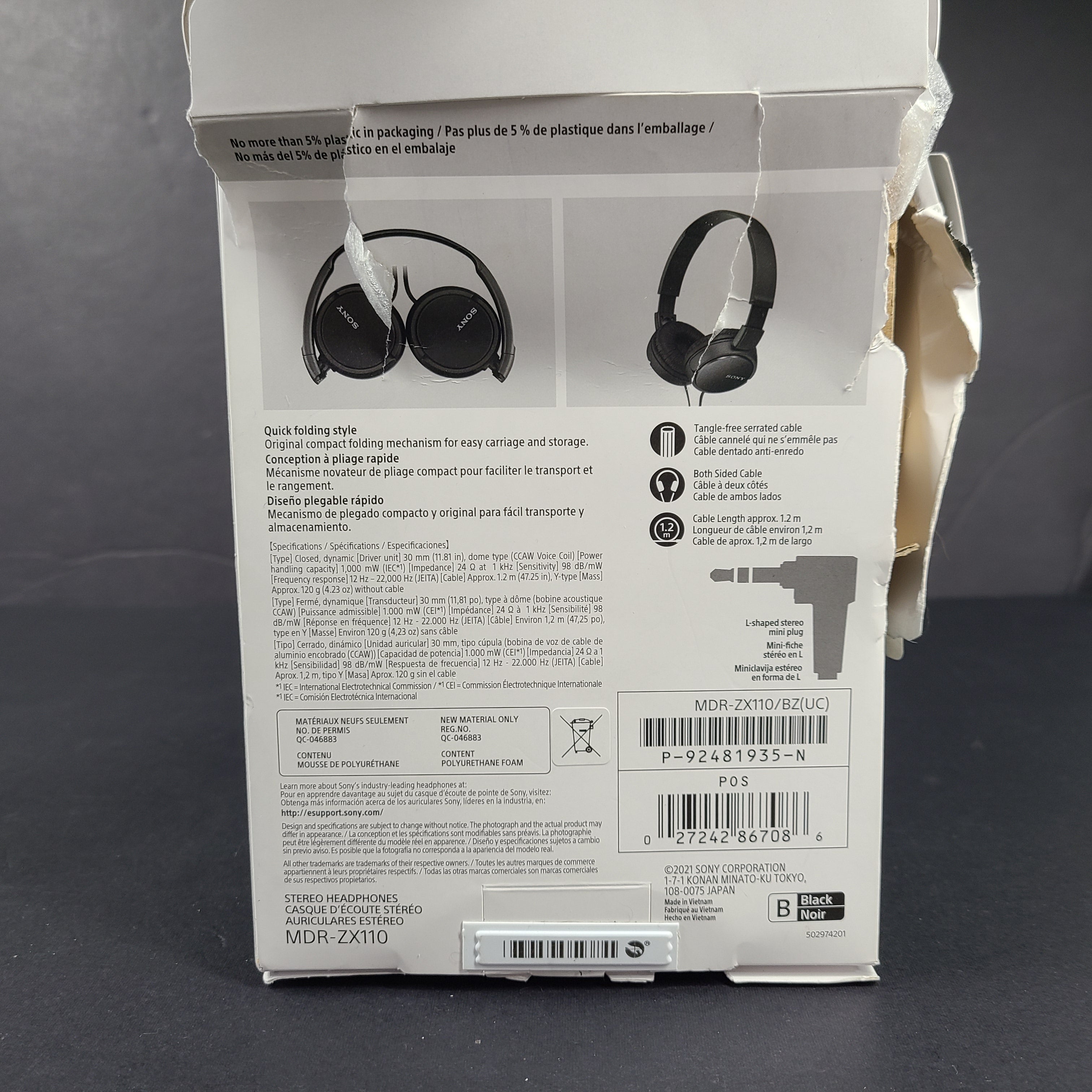 Sony MDR-ZX110 Black Wired On-Ear Headphones