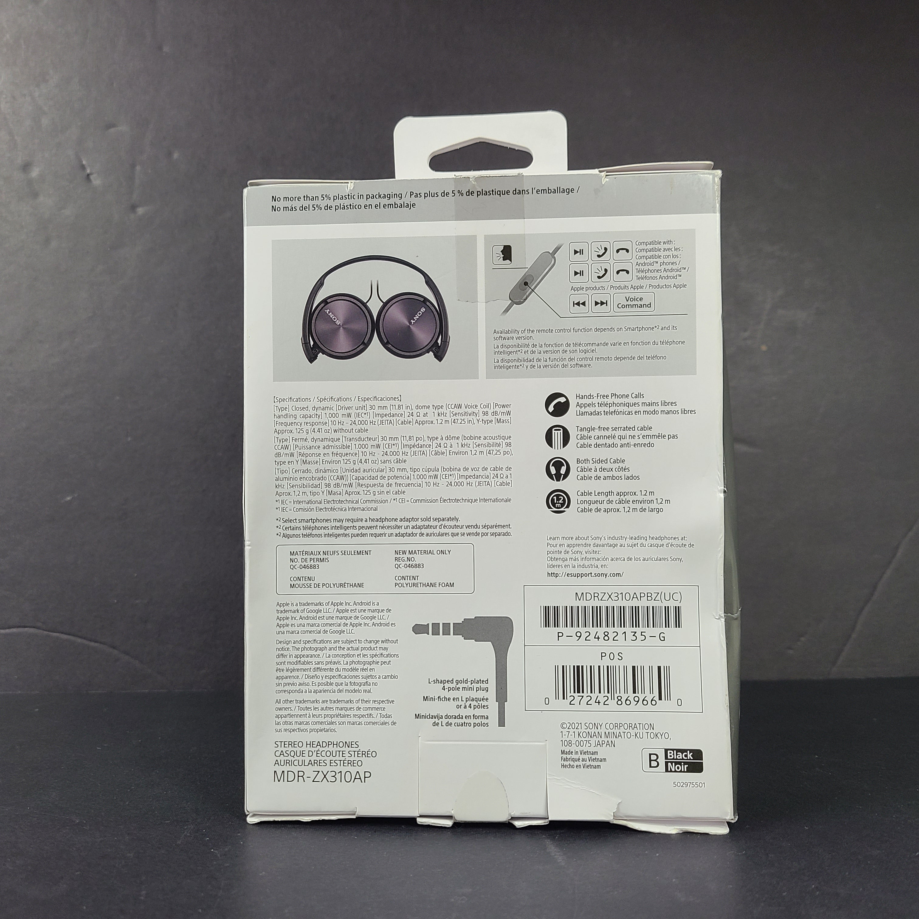 Sony MDR-ZX310AP Wired On-Ear Headphones Black - ZX Series