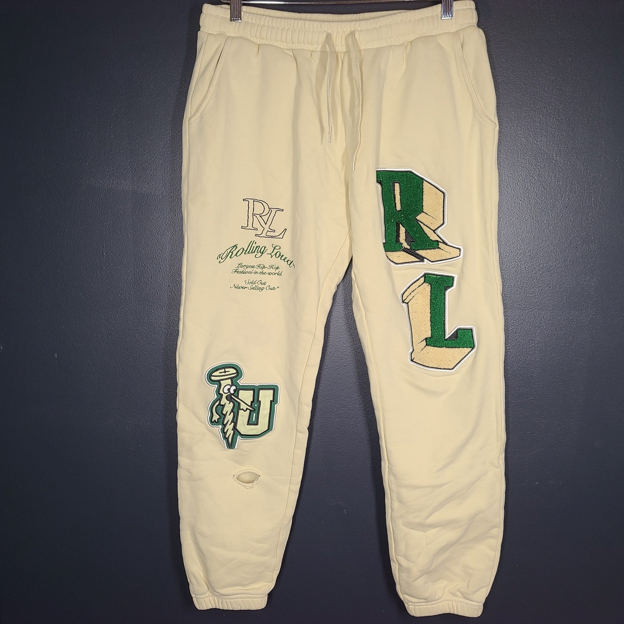 Rolling Loud Men's Sweatpants Joggers Beige with Embroidery Sz L