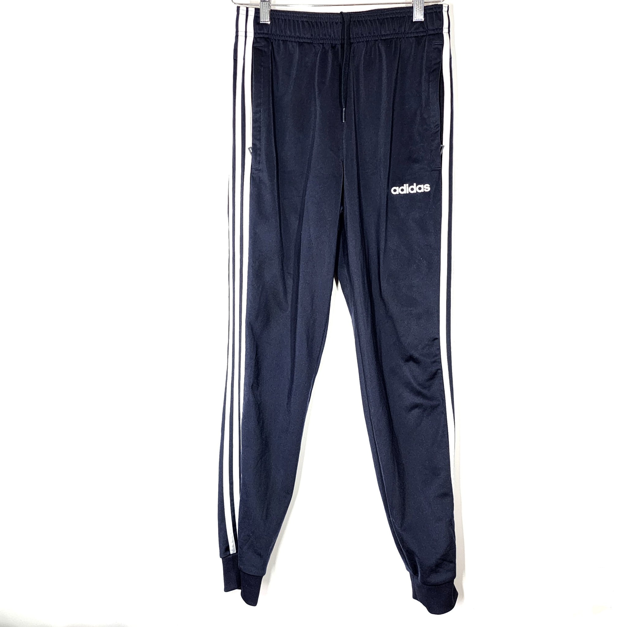 adidas Essentials Men's Warm Up Joggers Tapered 3 Stripes Track Pants Navy Sz S