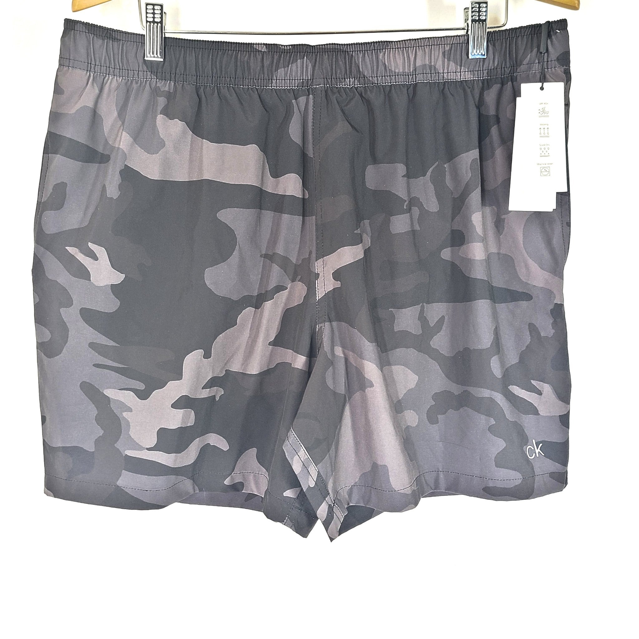 Calvin Klein Men's Euro Volley Swim Trunks UPF 40+ Shorts Black Camo Sz XL