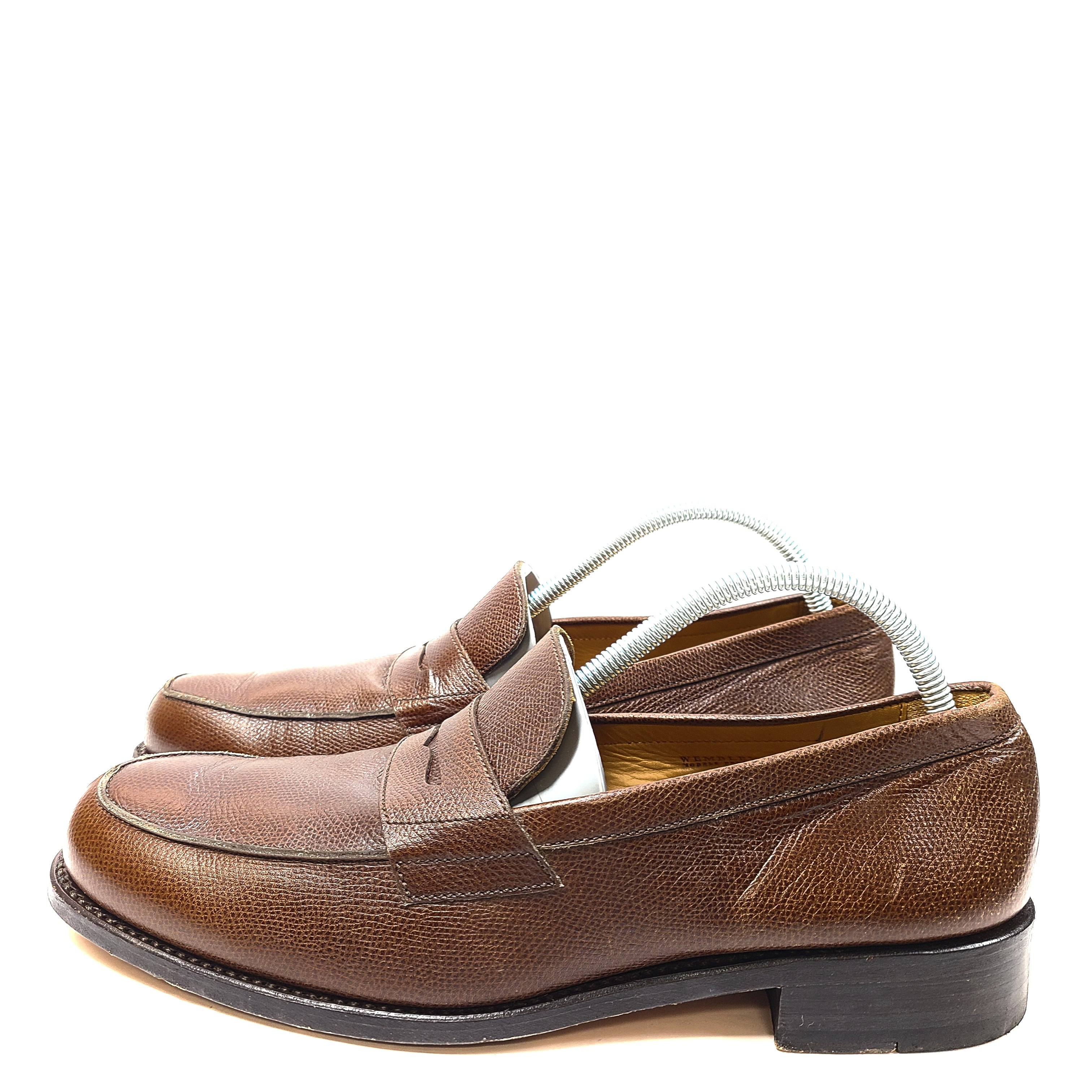 Wembley Men's Grained Italian Leather Loafers 155 Shoes Brown Sz EU 45/ US 11.5