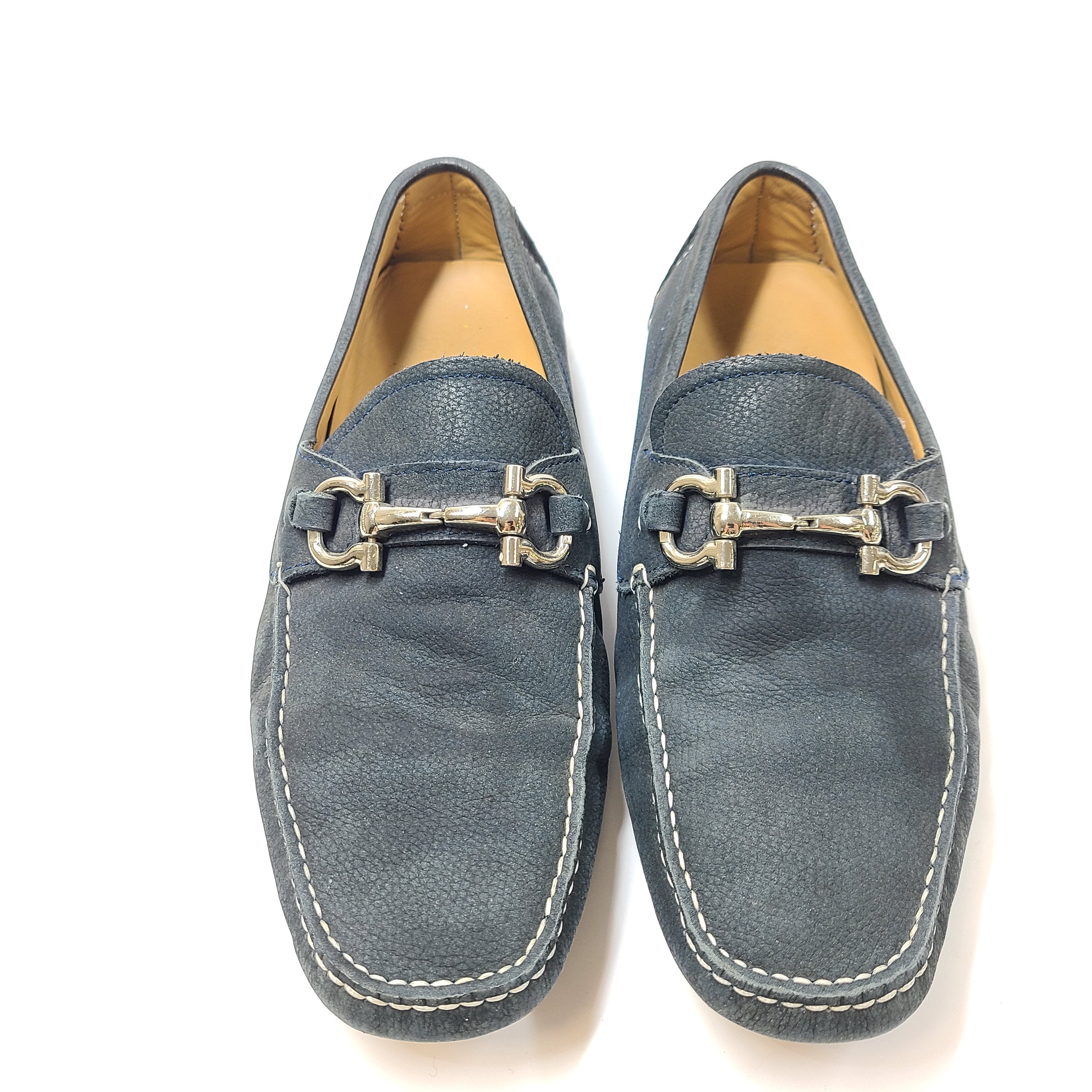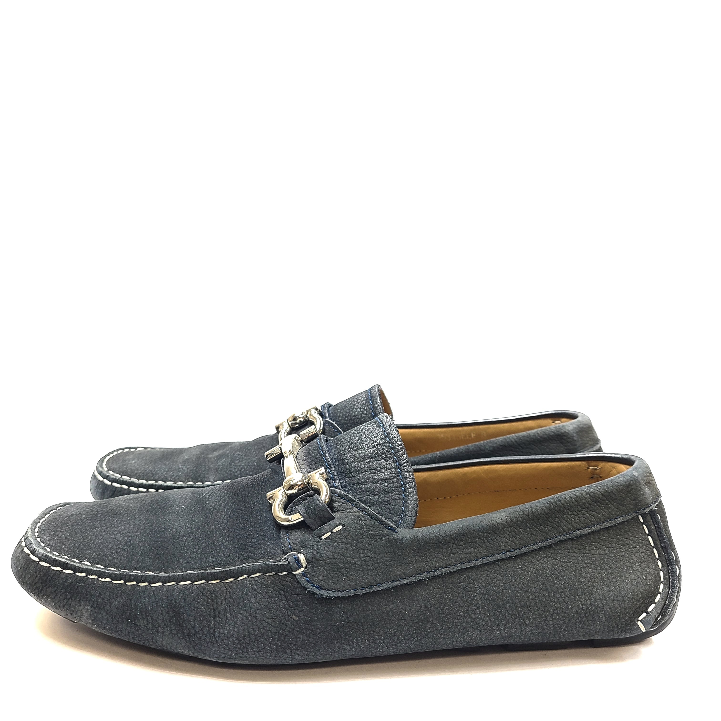 Salvatore Ferragamo Men's Gancini Loafers Mocassins Shoes Leather Blue Sz 8 Wide