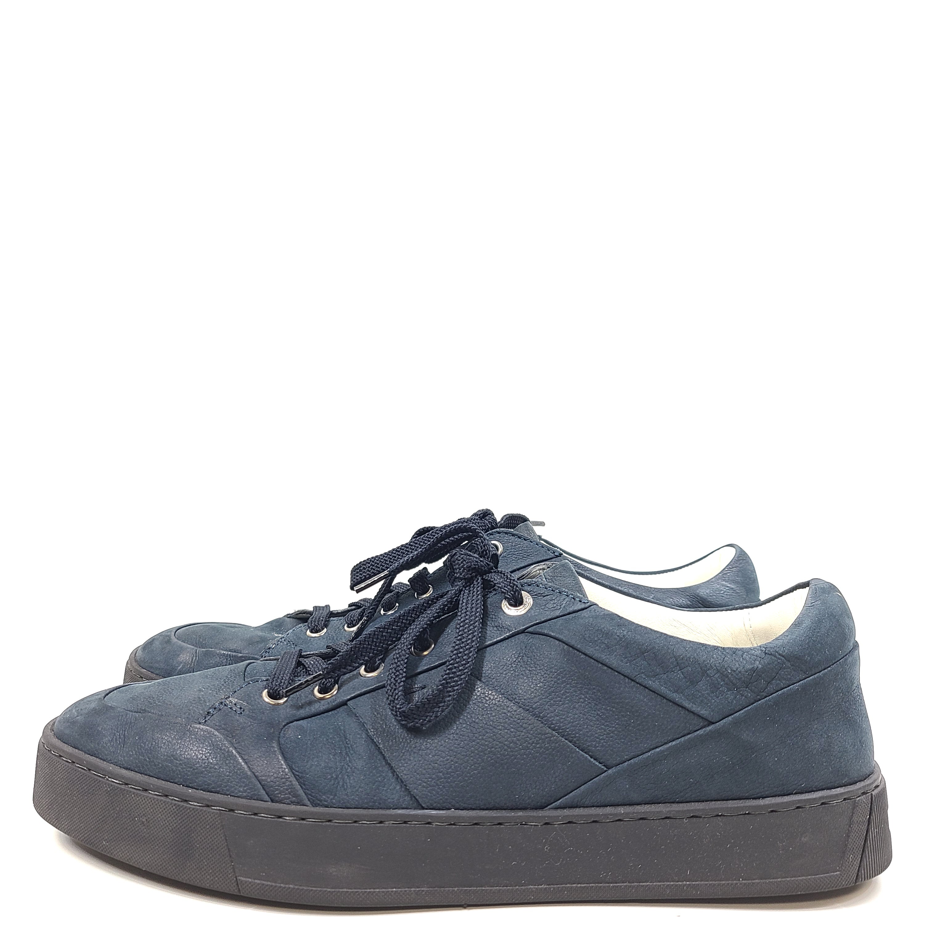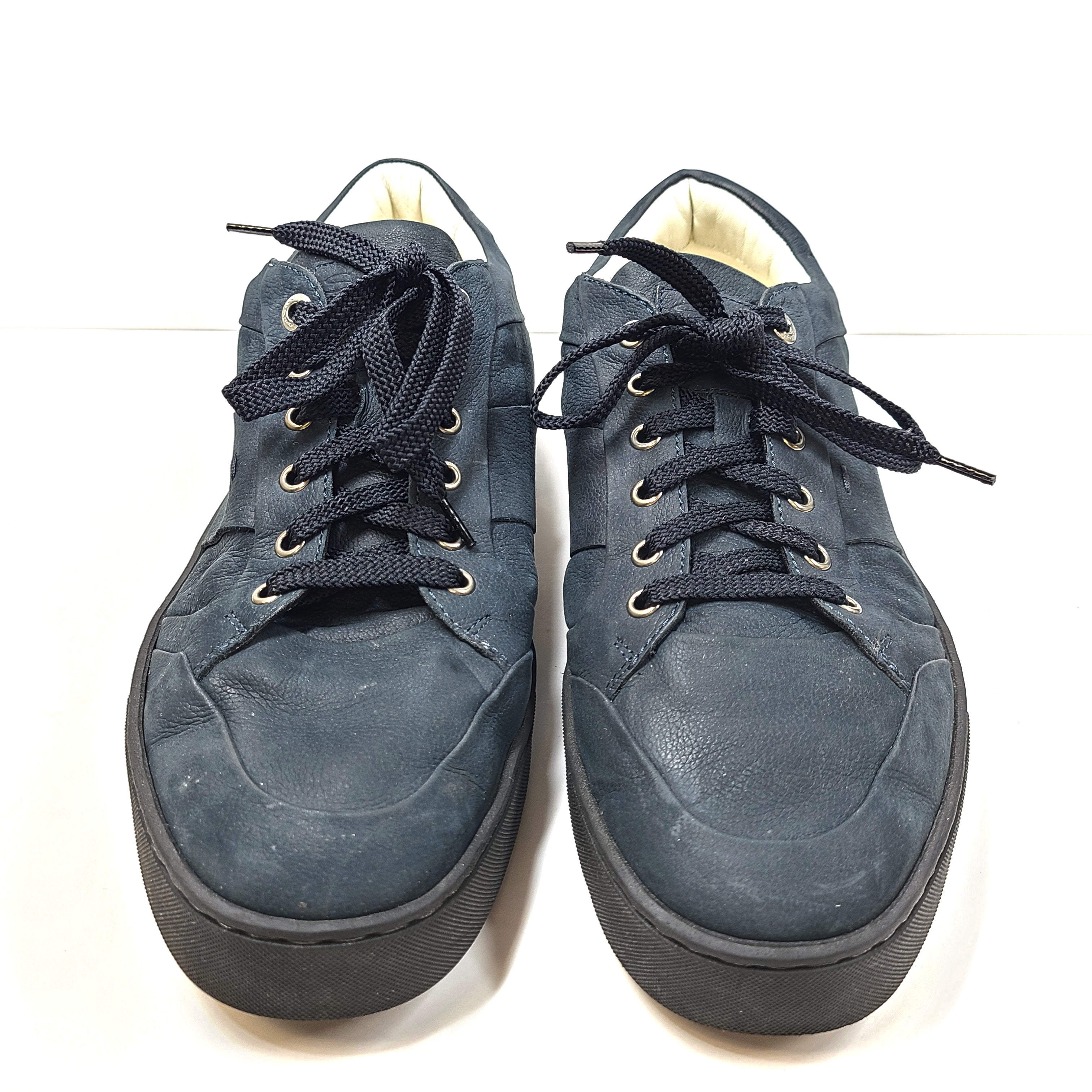 Santoni Men's Grained Leather Low-Top Lace-Up Sneakers Blue Sz 11