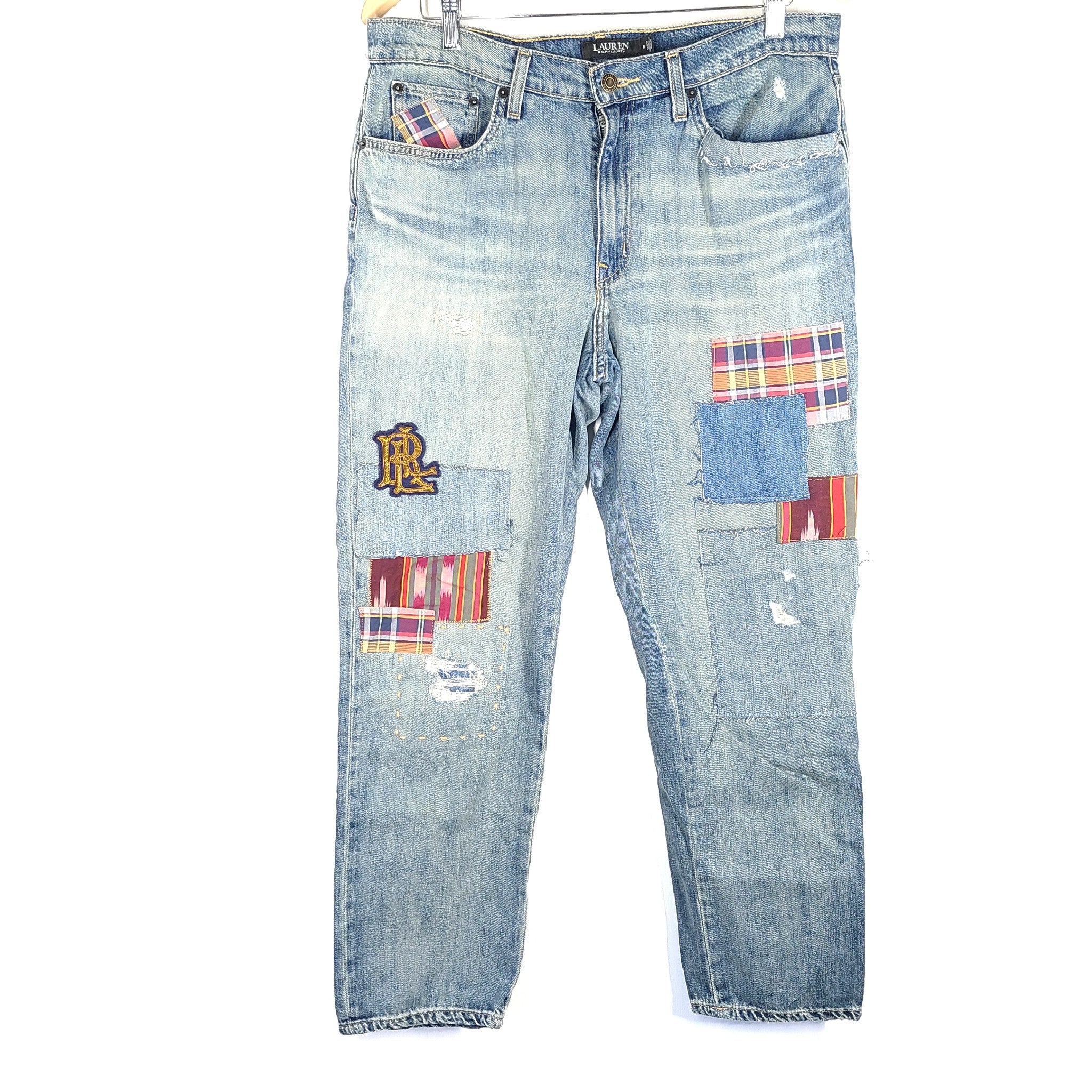 Ralph Lauren LRL Women's Patchwork Relaxed Tapered Jeans Blue Sz 8