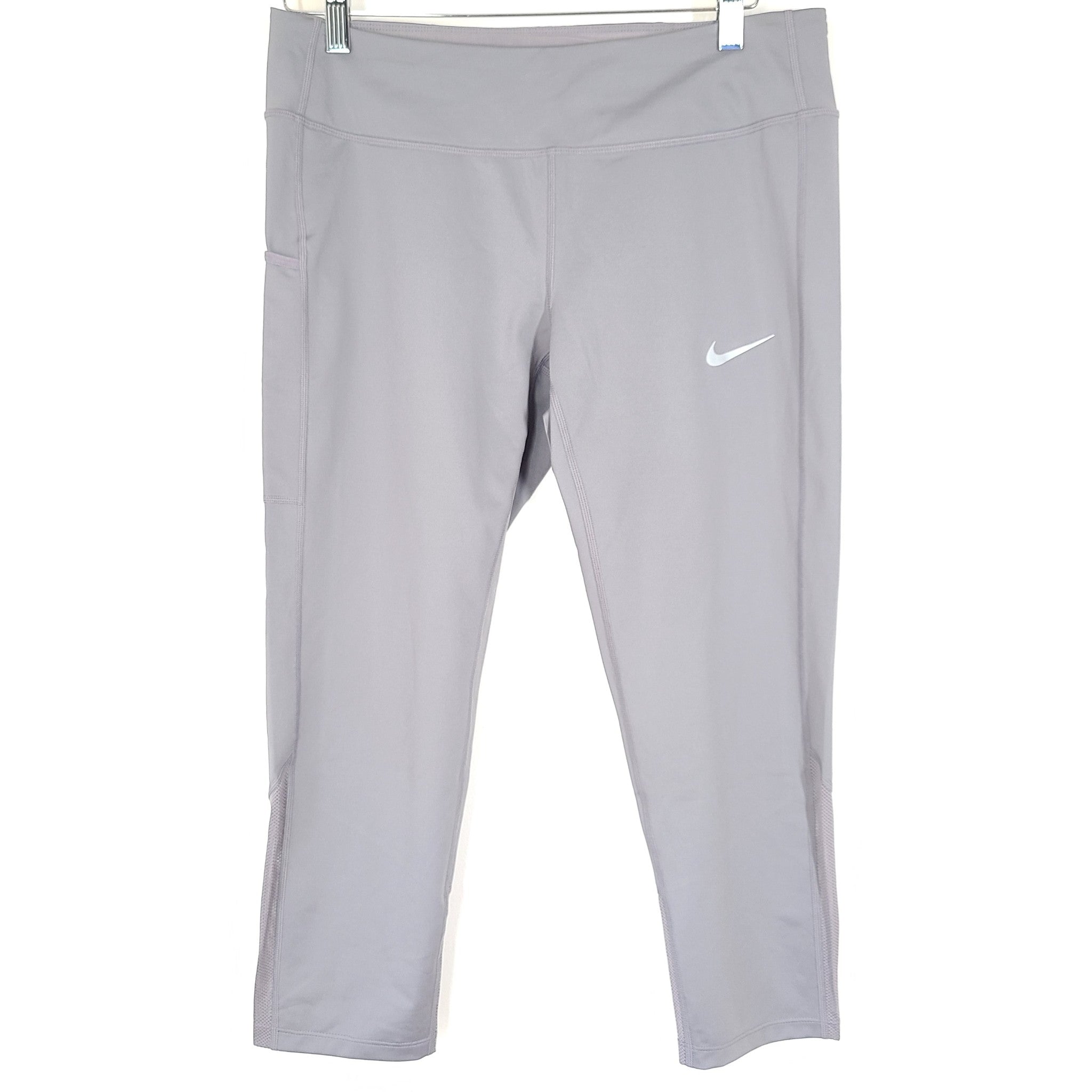 Nike Women's Power Dri-Fit Racer Running Crop Leggings CD8214 Gray Sz L