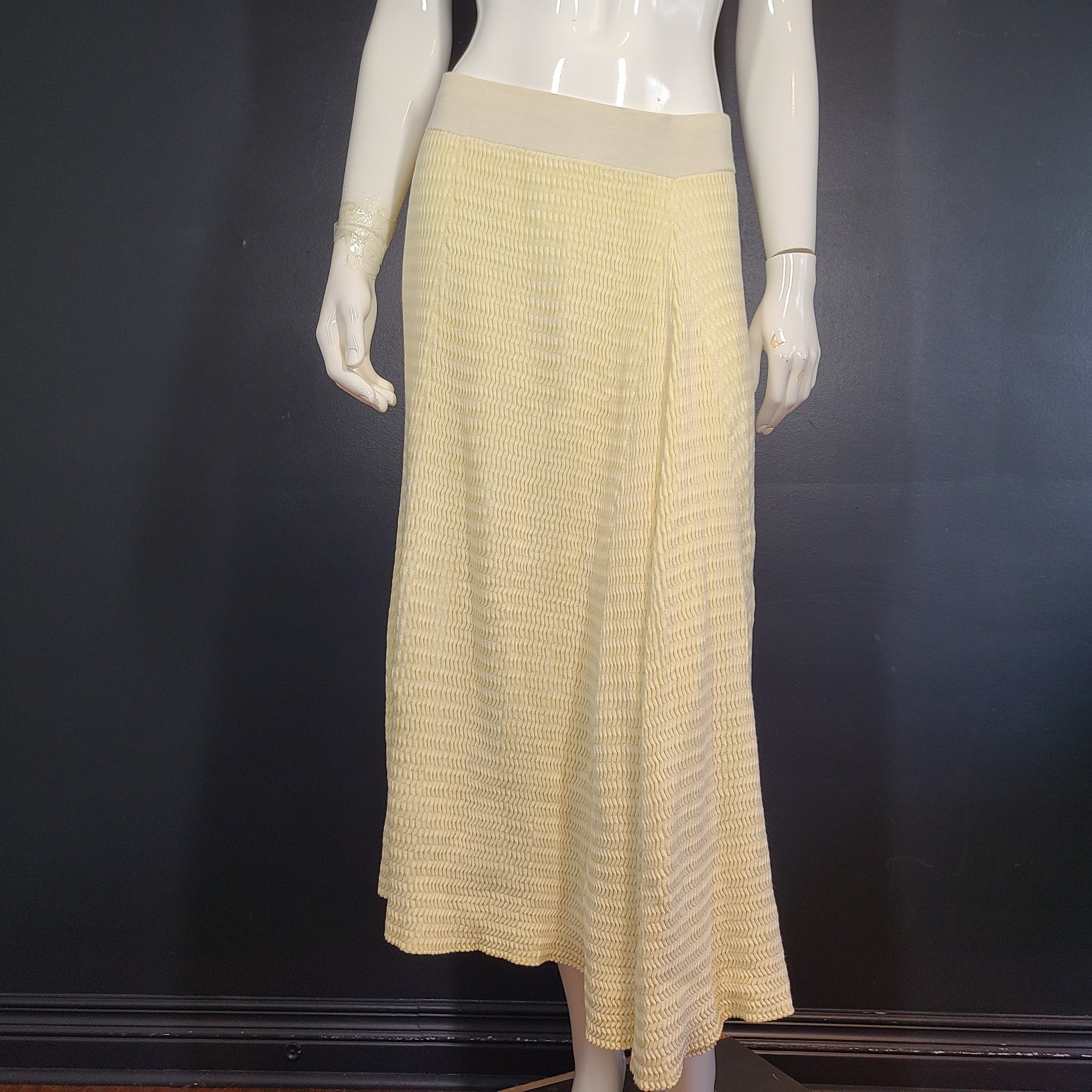 COS Crinkle Rib Stretch A-Line Midi Skirt Flowy Beige Sz S
