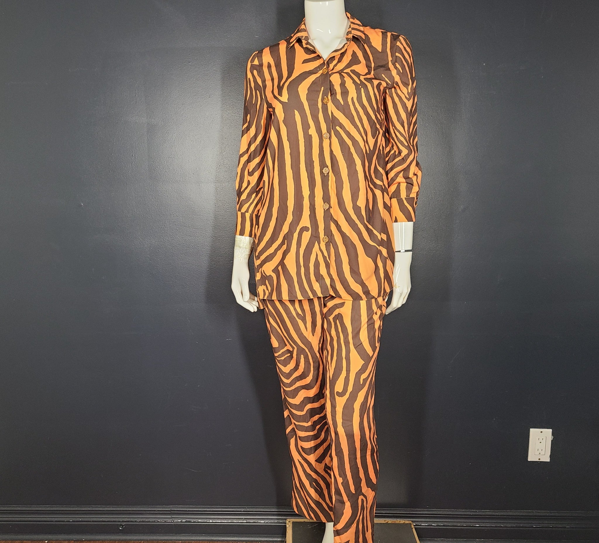 Georges Rech 2 Pc Set Camellia Zebra Print Shirt + Pants Orange Brown Sz 6/8