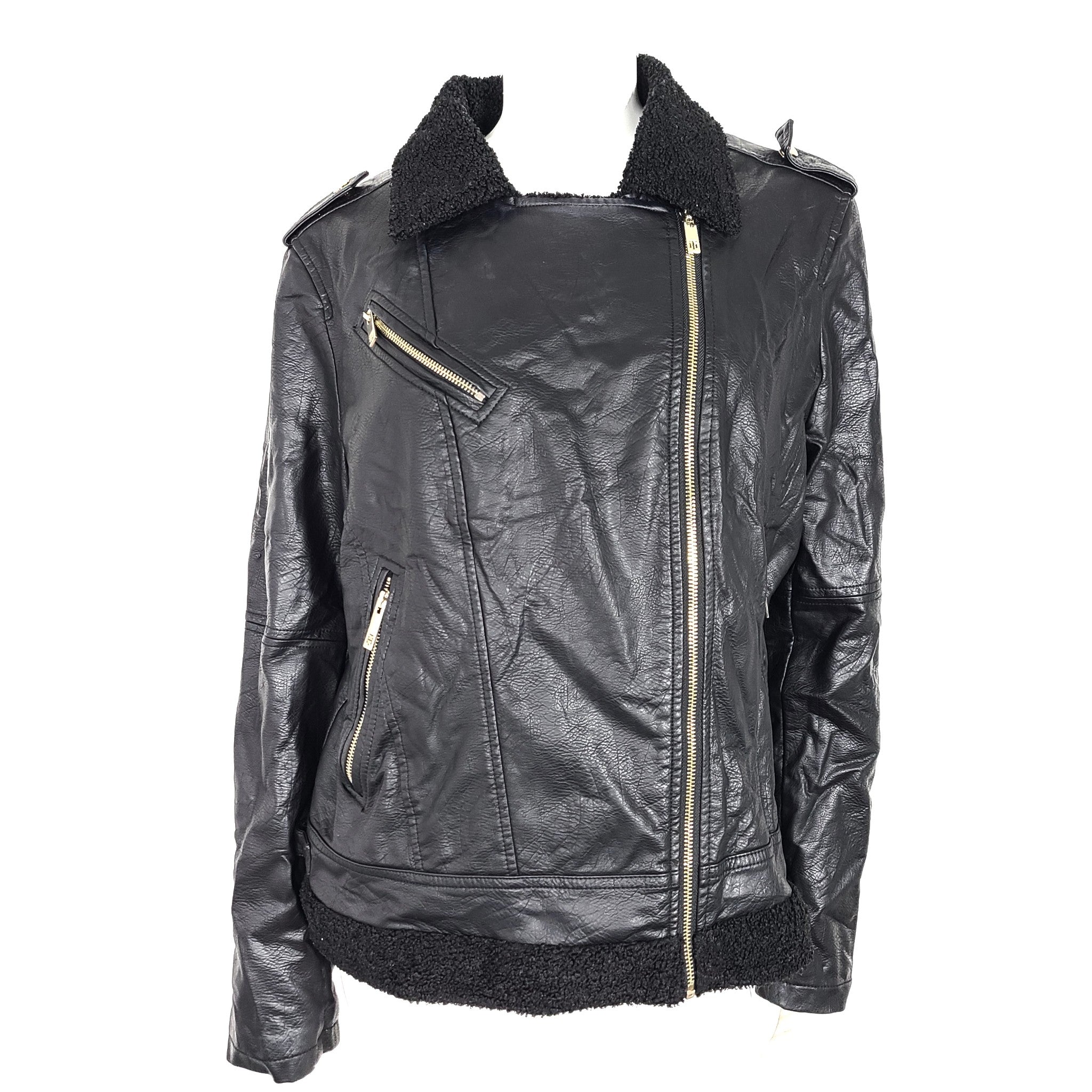 Tommy Hilfiger Women's Faux Leather Biker Jacket Sherpa Lining Black Size Sz XL