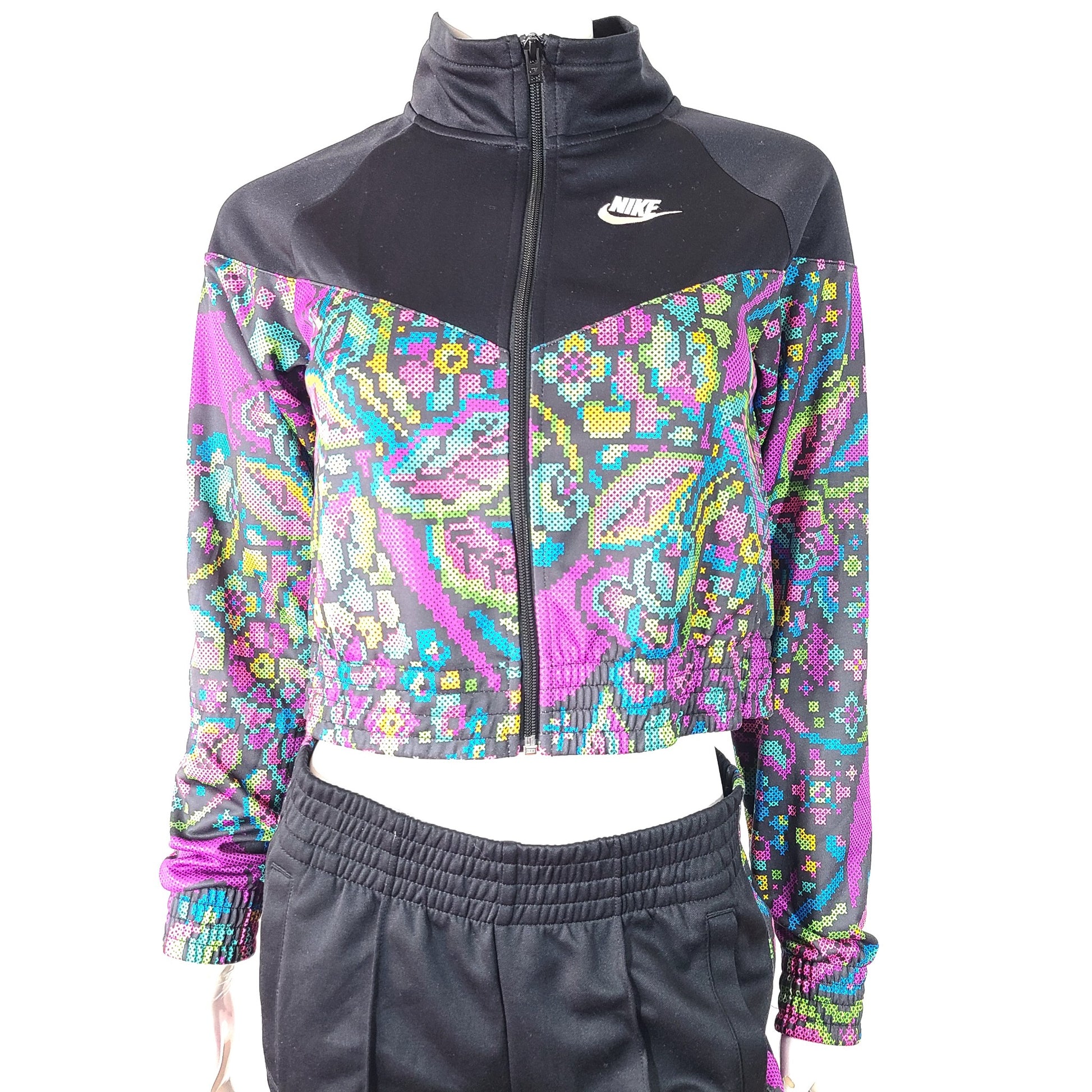 2 Pc Nike Women's Tracksuit BV2728-010 High Rise Pants Cropped Jacket Black XS