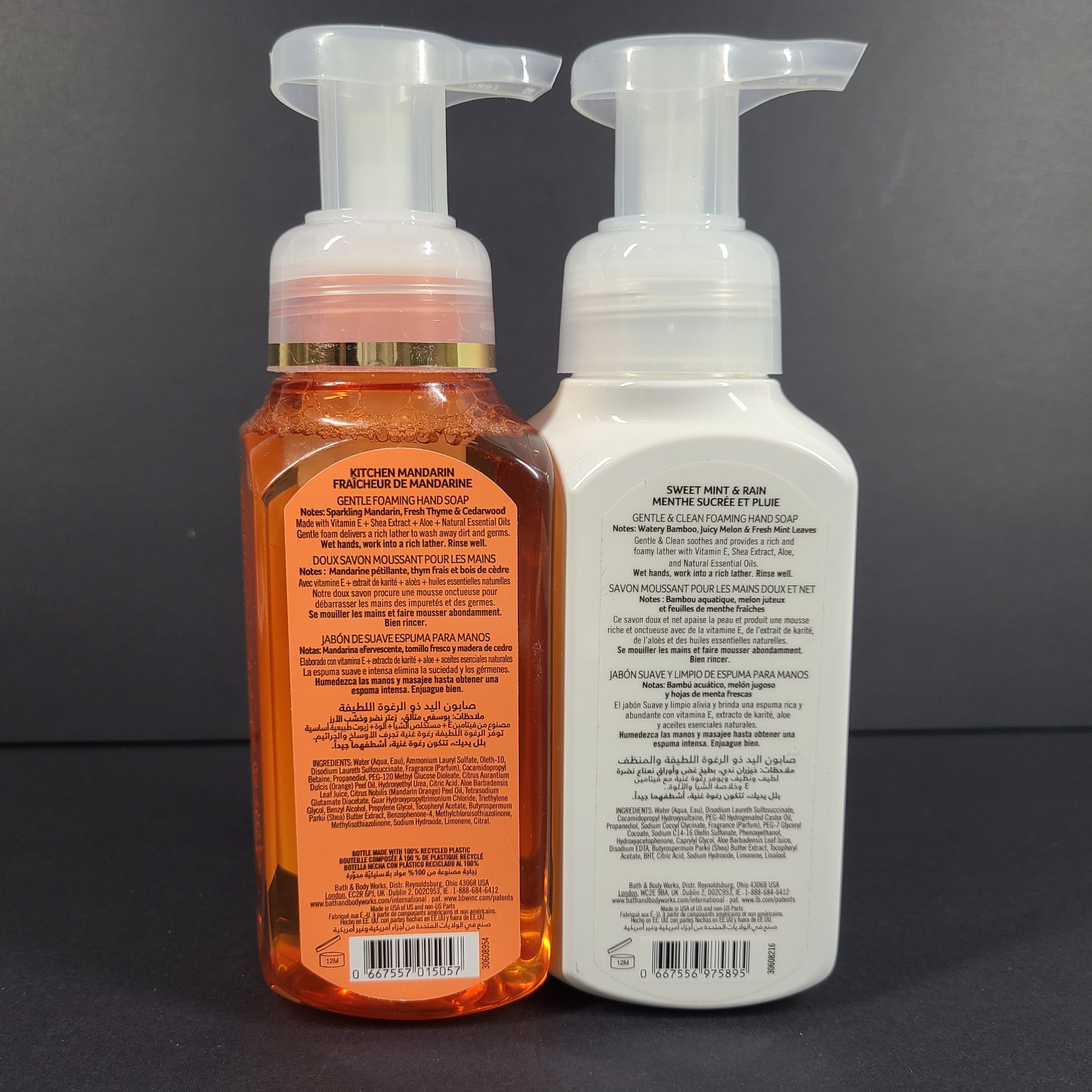 2 x 8oz Bath Body Works Kitchen Mandarin /Sweet Mint & Rain Foaming Hand Soap