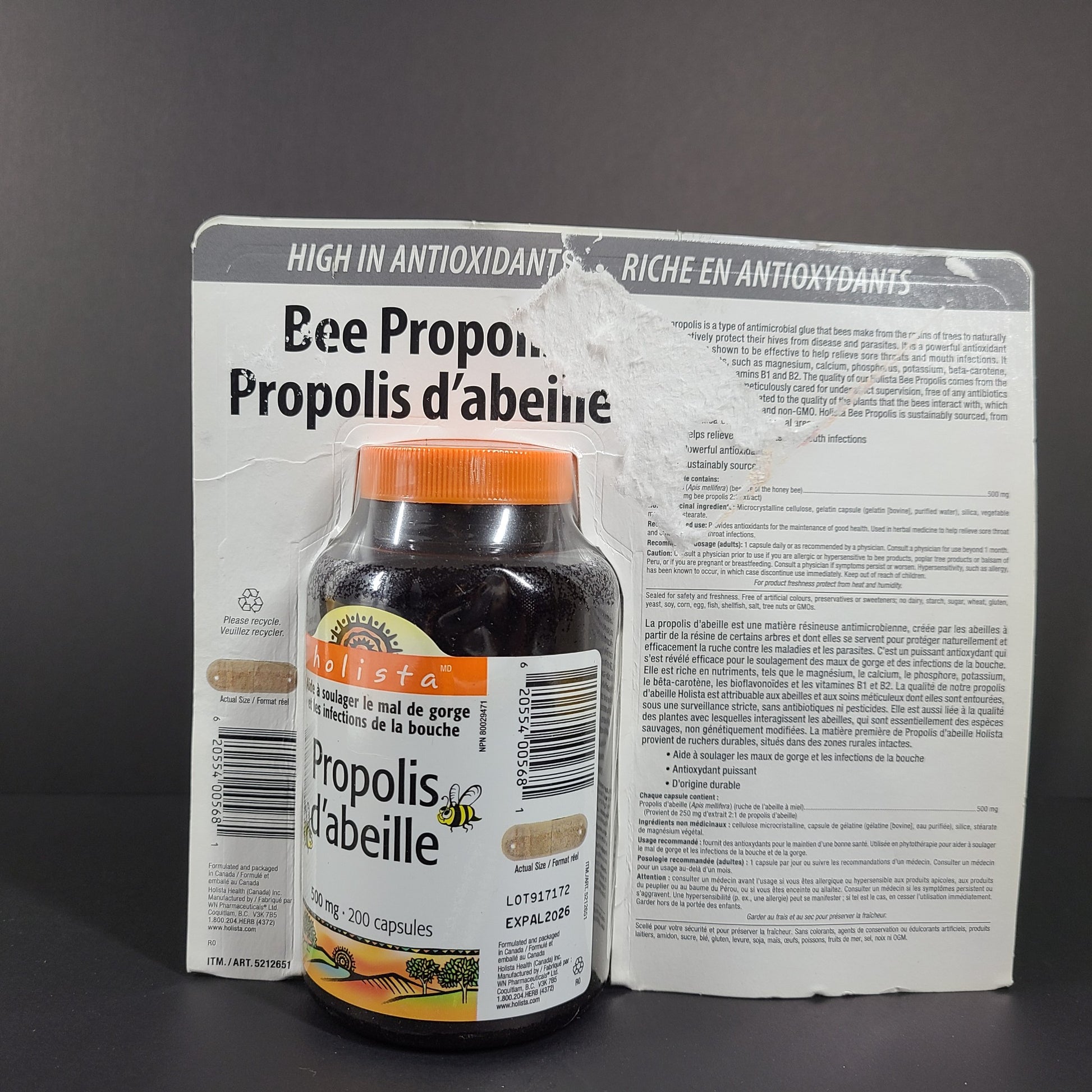 200 Ct Holista Bee Propolis 500mg Capsules Sore Throat Infection 04/26