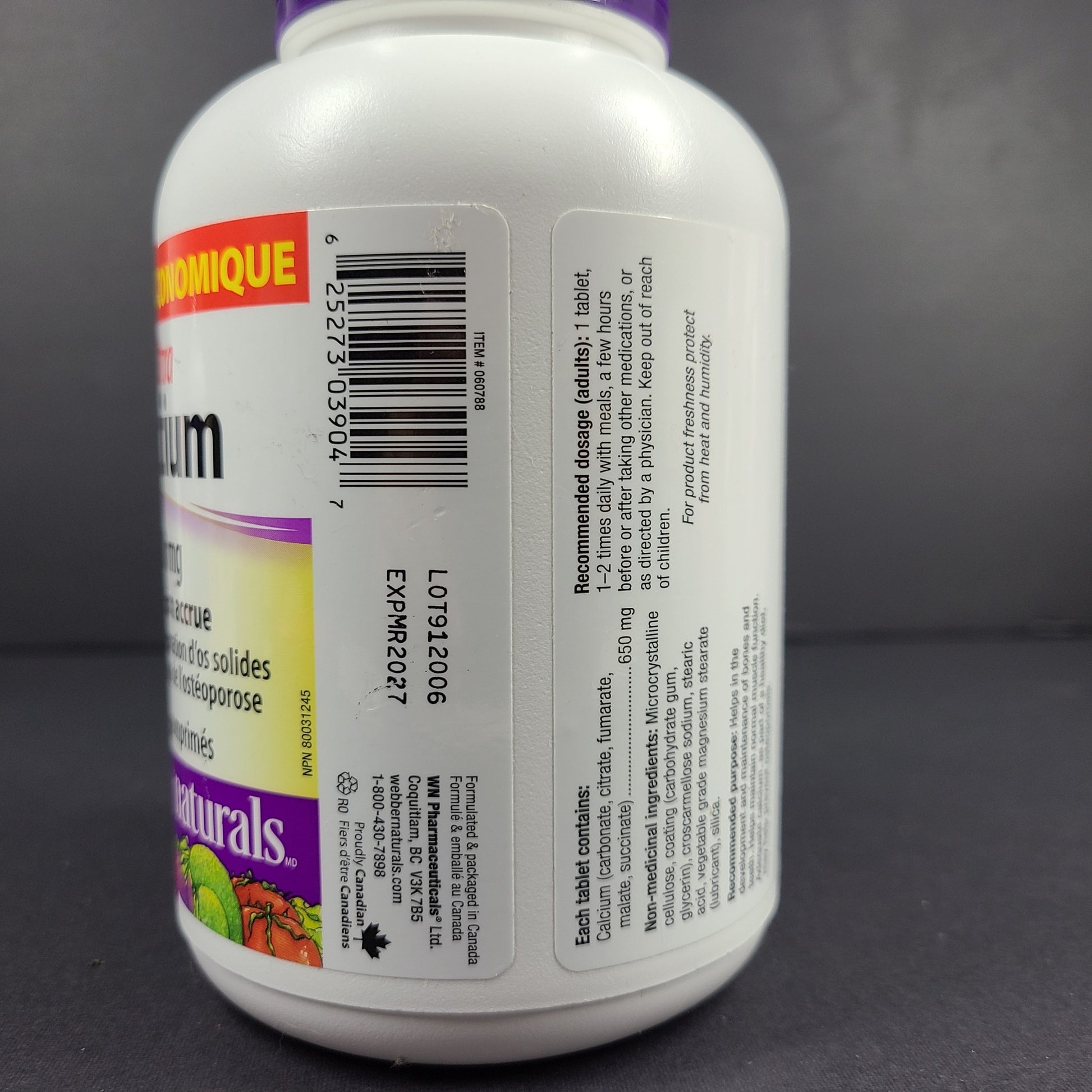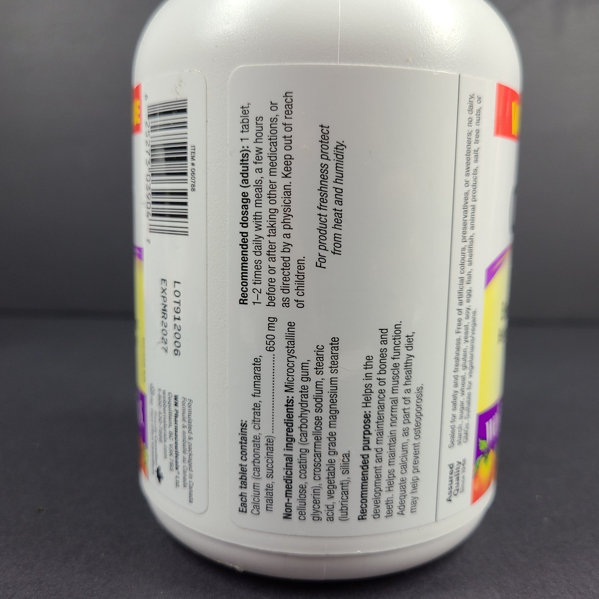 Ultra Calcium 650 mg from Webber Naturals provides a daily dose of this essential mineral in chelated forms for enhanced absorption. Chelated calcium, which is part of the Krebs cycle, is easier for the body to absorb and use. One or two tablets per day can help build and maintain strong bones and teeth and may reduce the risk of developing osteoporosis when combined with sufficient vitamin D, a healthy diet, and regular exercise.