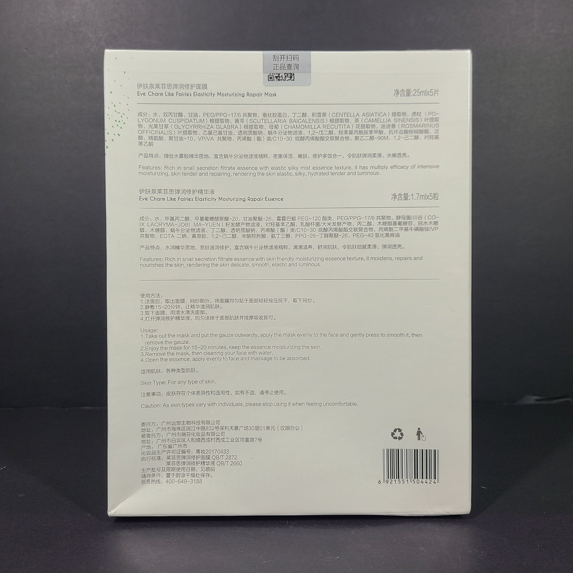 Includes: 5 x Moisturizing Repair Mask + 5 x Moisturizing Repair Essence in original sealed box.