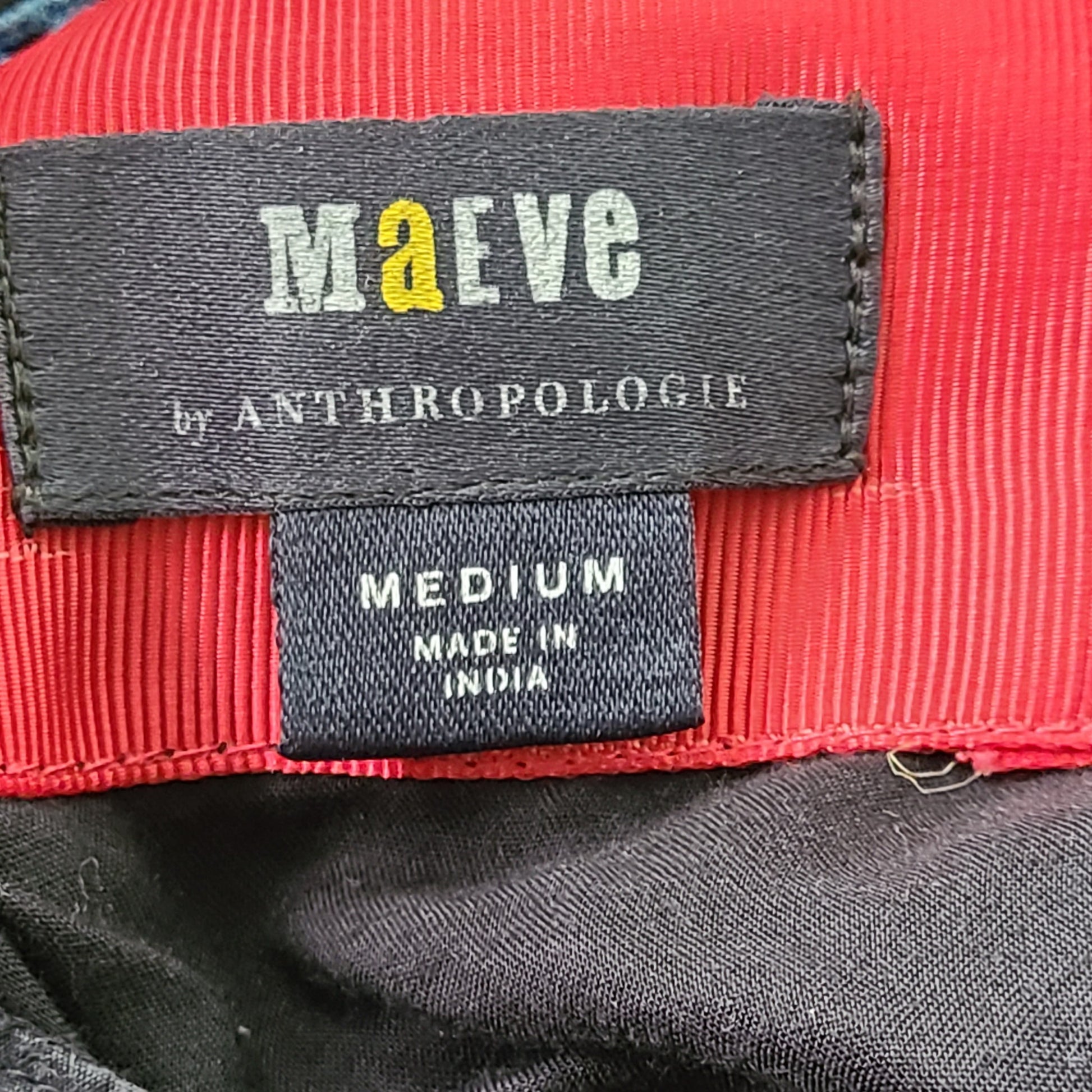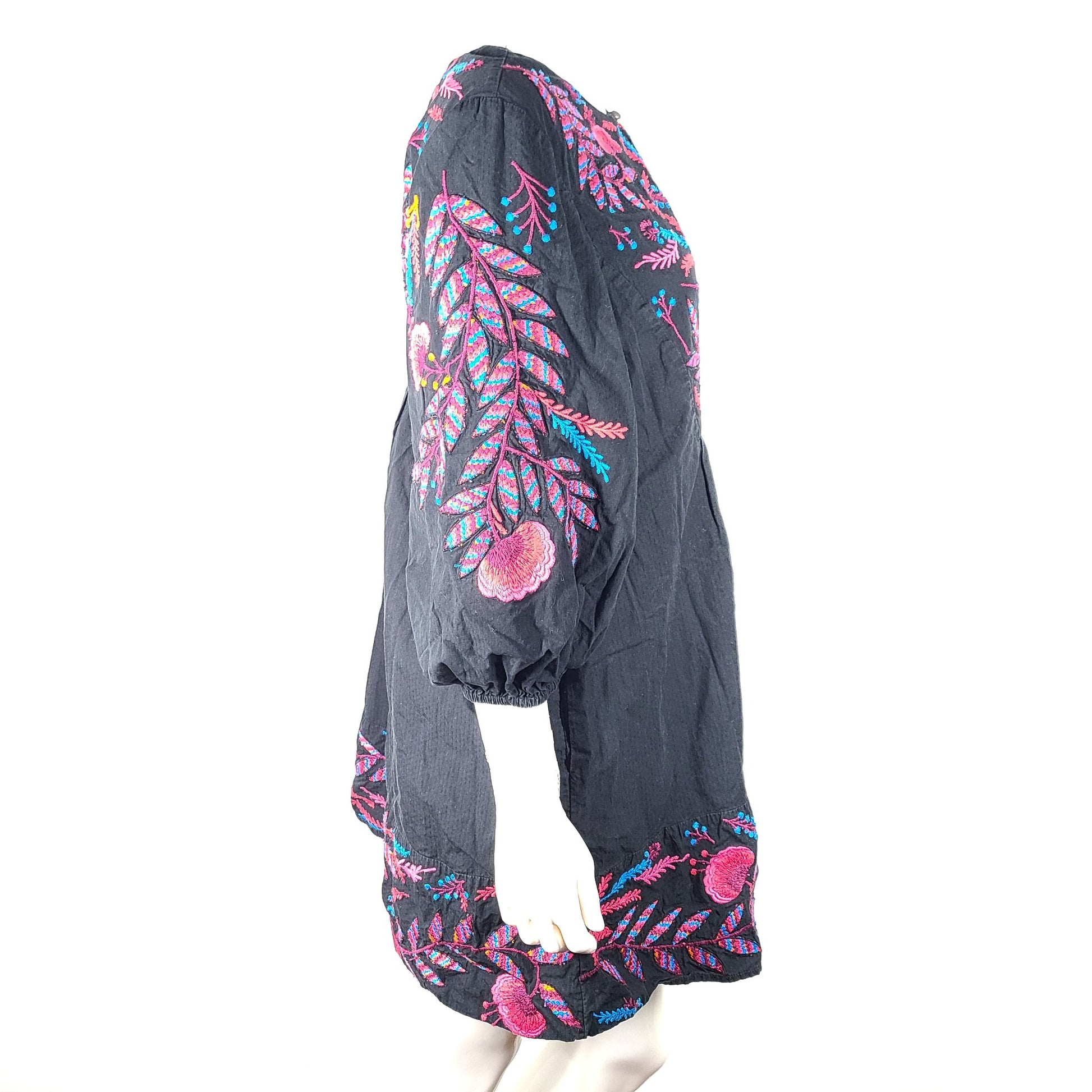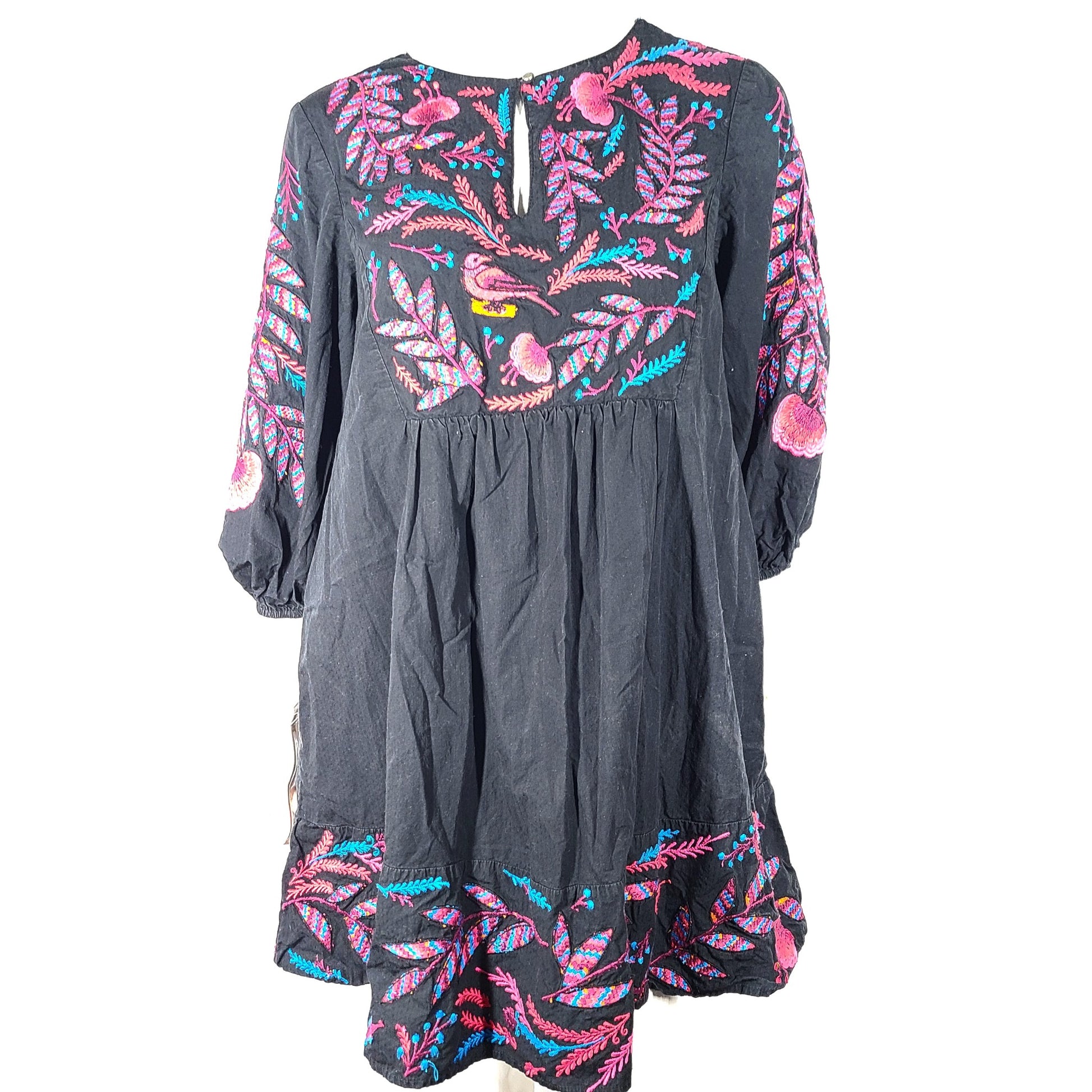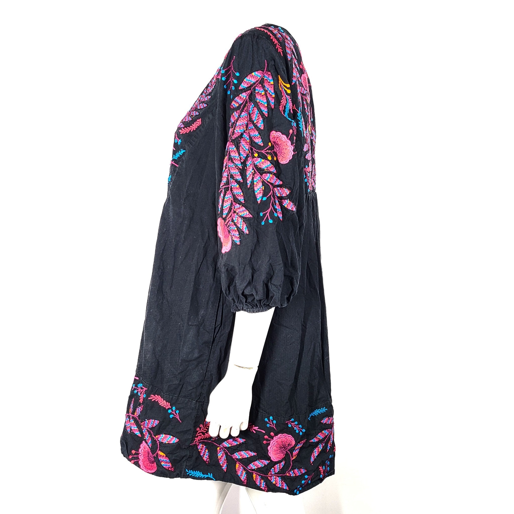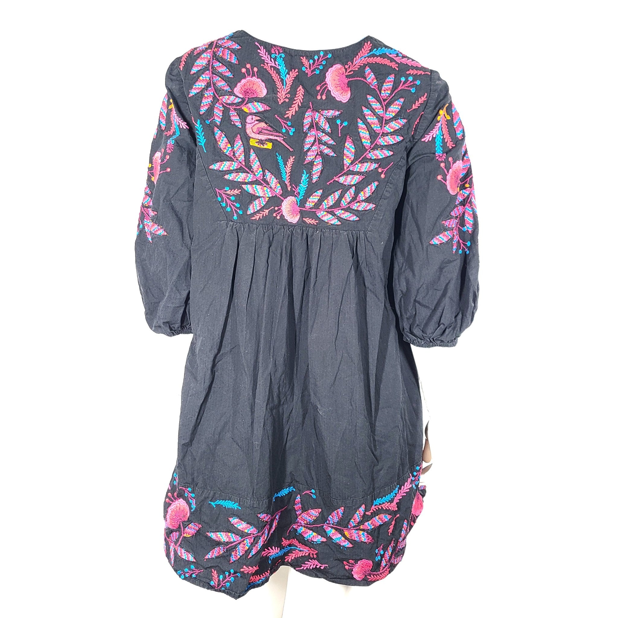 Anthropologie Maeve Embroidered Floral Tunic Dress Mini Boho Black Sz M
