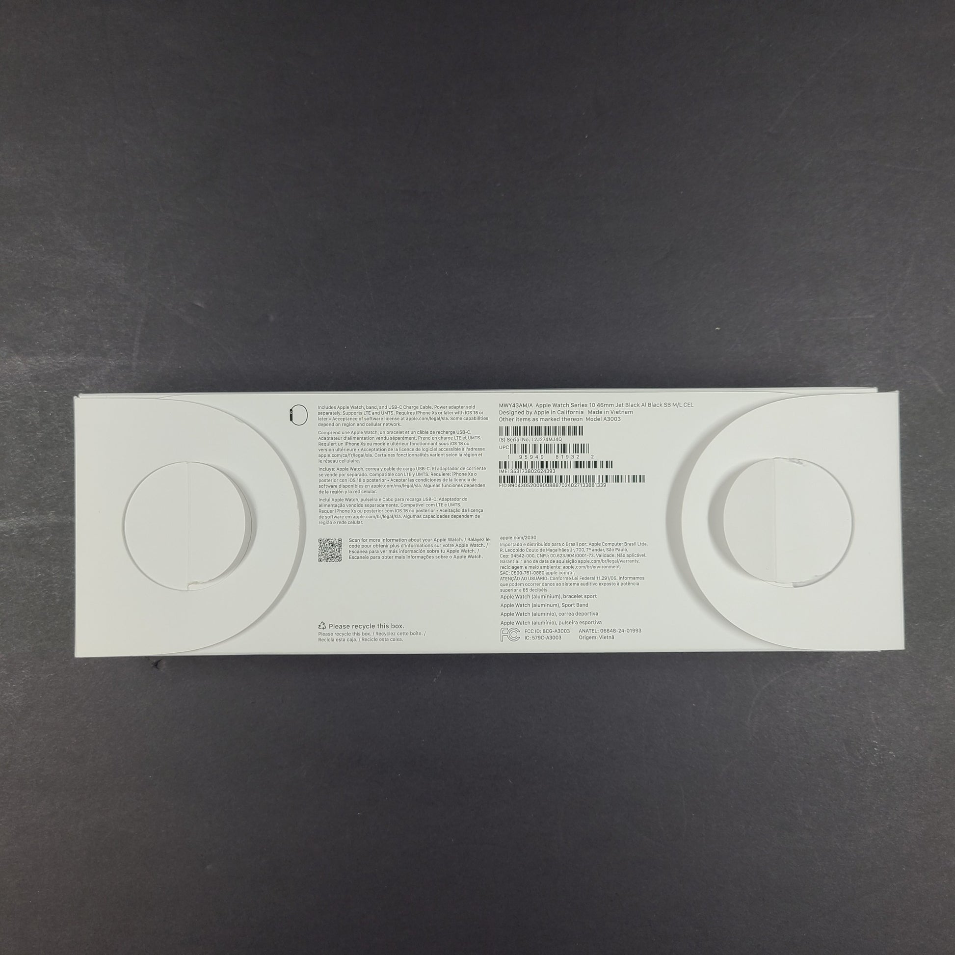 Apple Watch Series 10 46MM Black A3003 Aluminum Case GPS<E M/L Band - NEW
