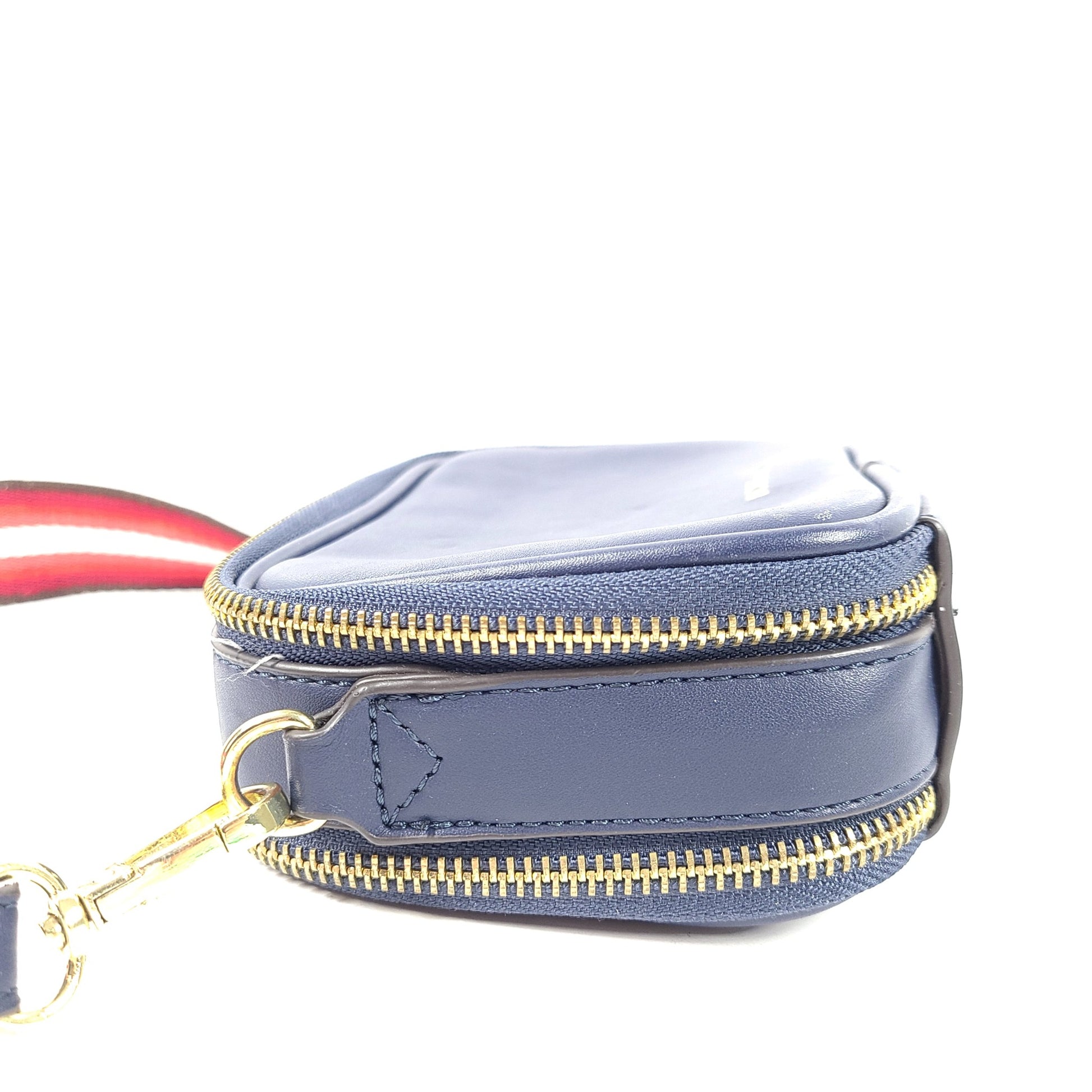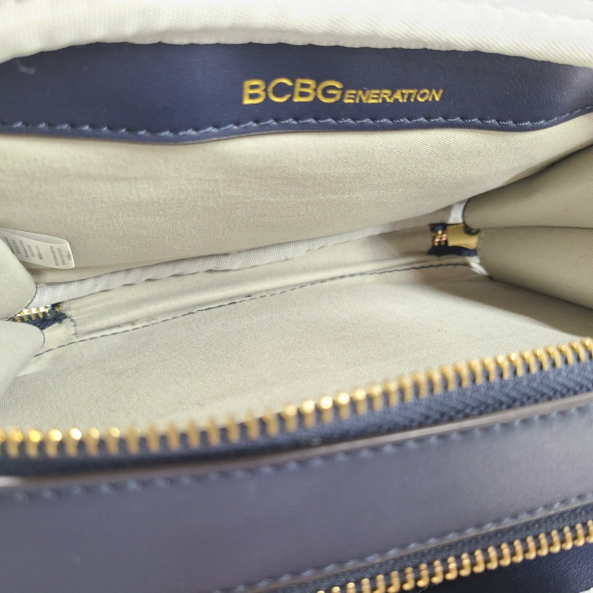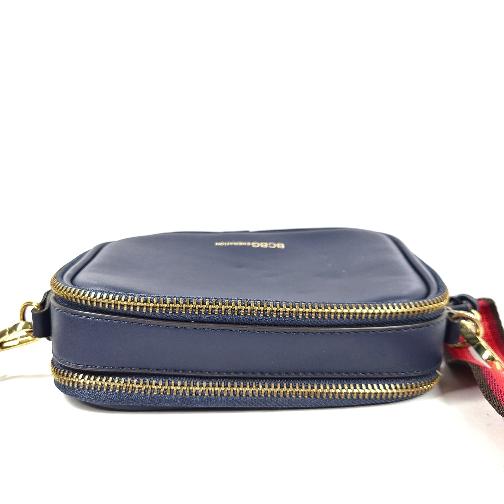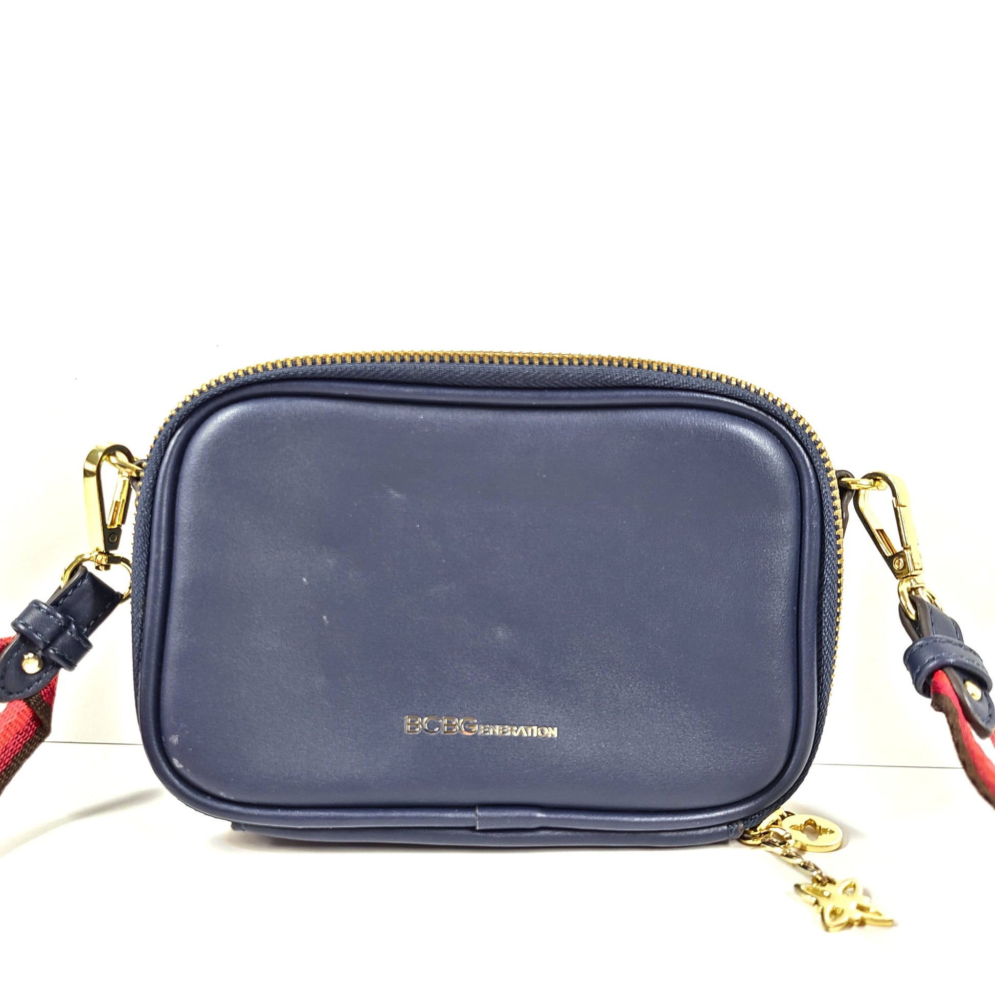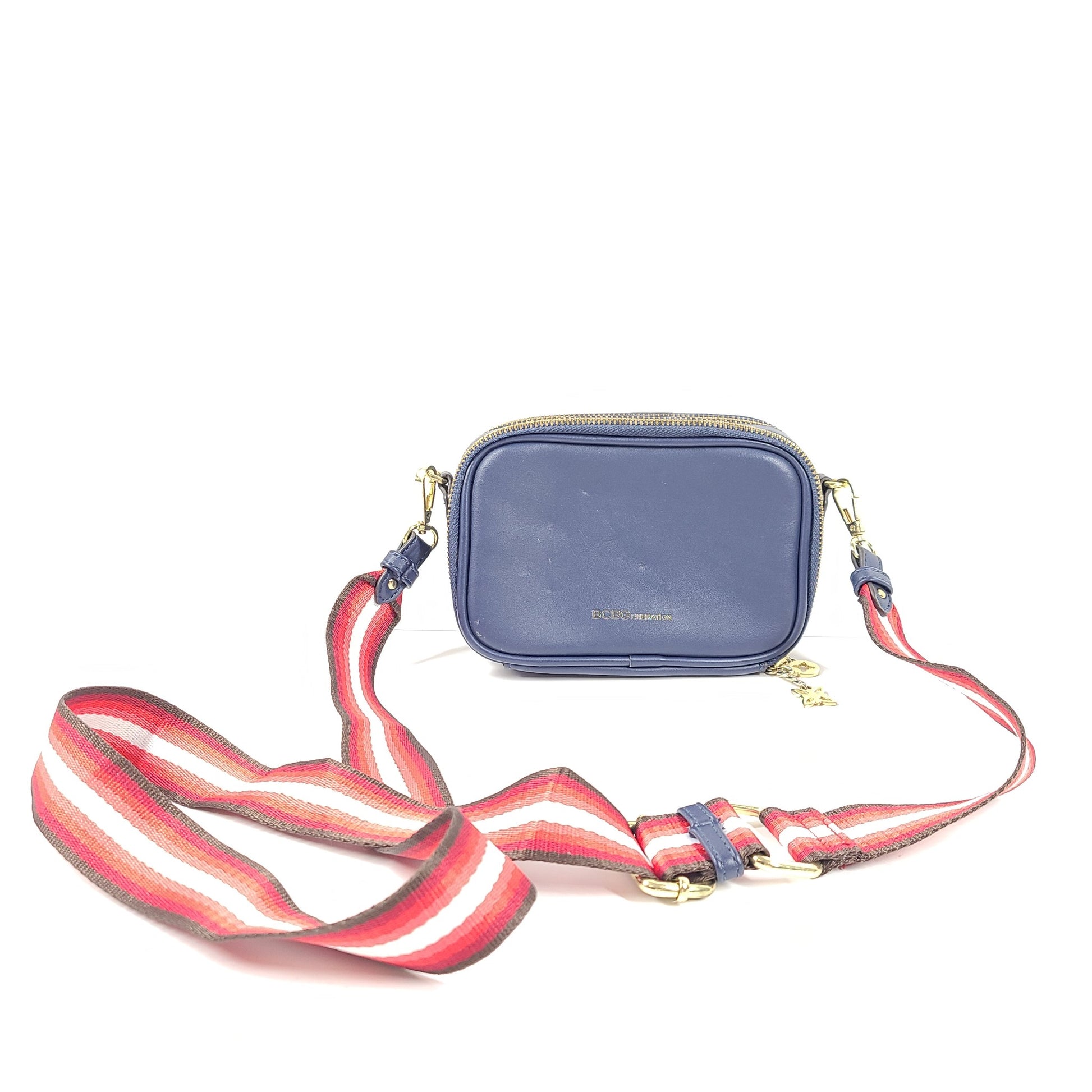 BCBGeneration Quinn Double Entry Crossbody Bag Faux Leather Zip Around Blue