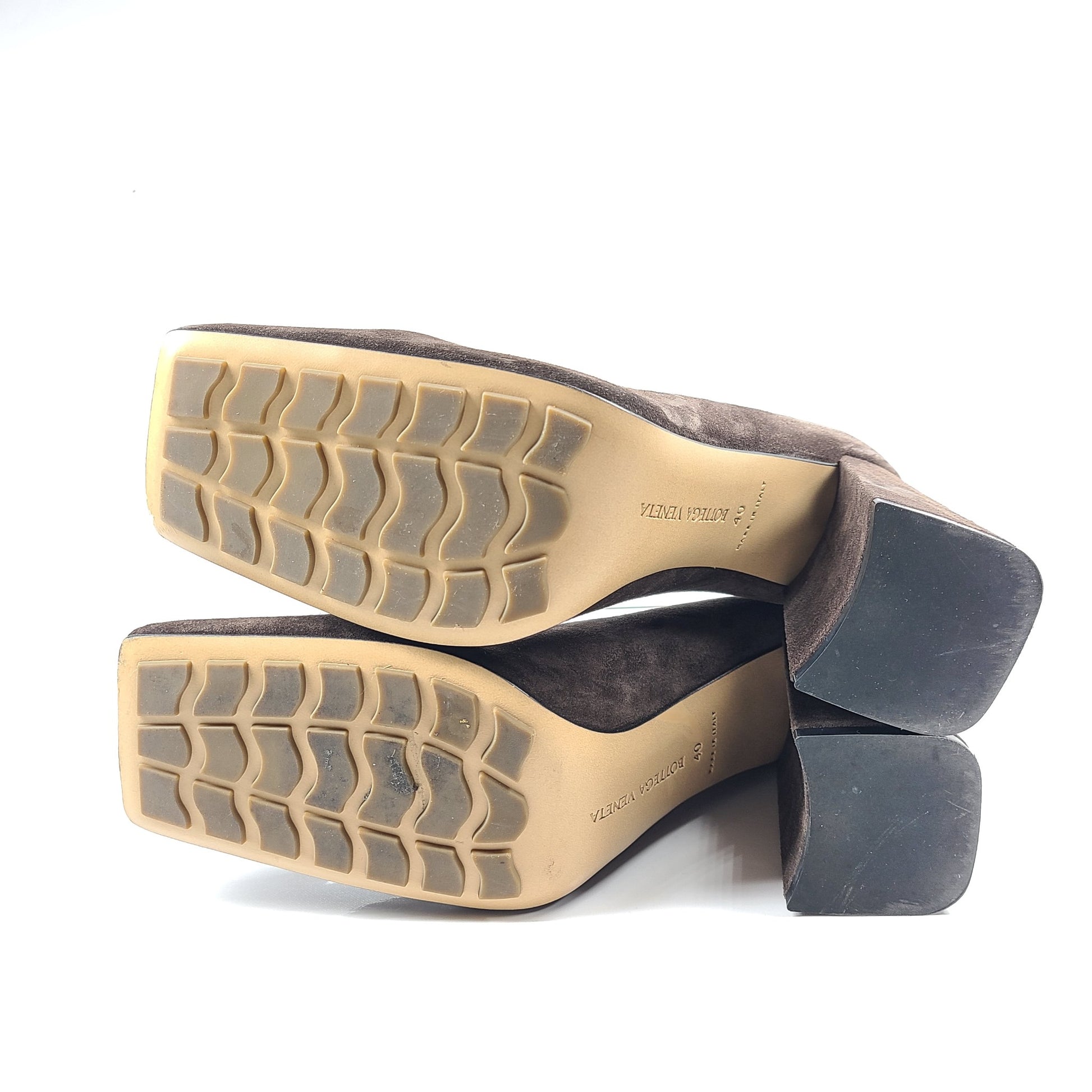 Bottega Veneta Tower Square-Toe Suede Pumps Brown Heels Shoes US 10
