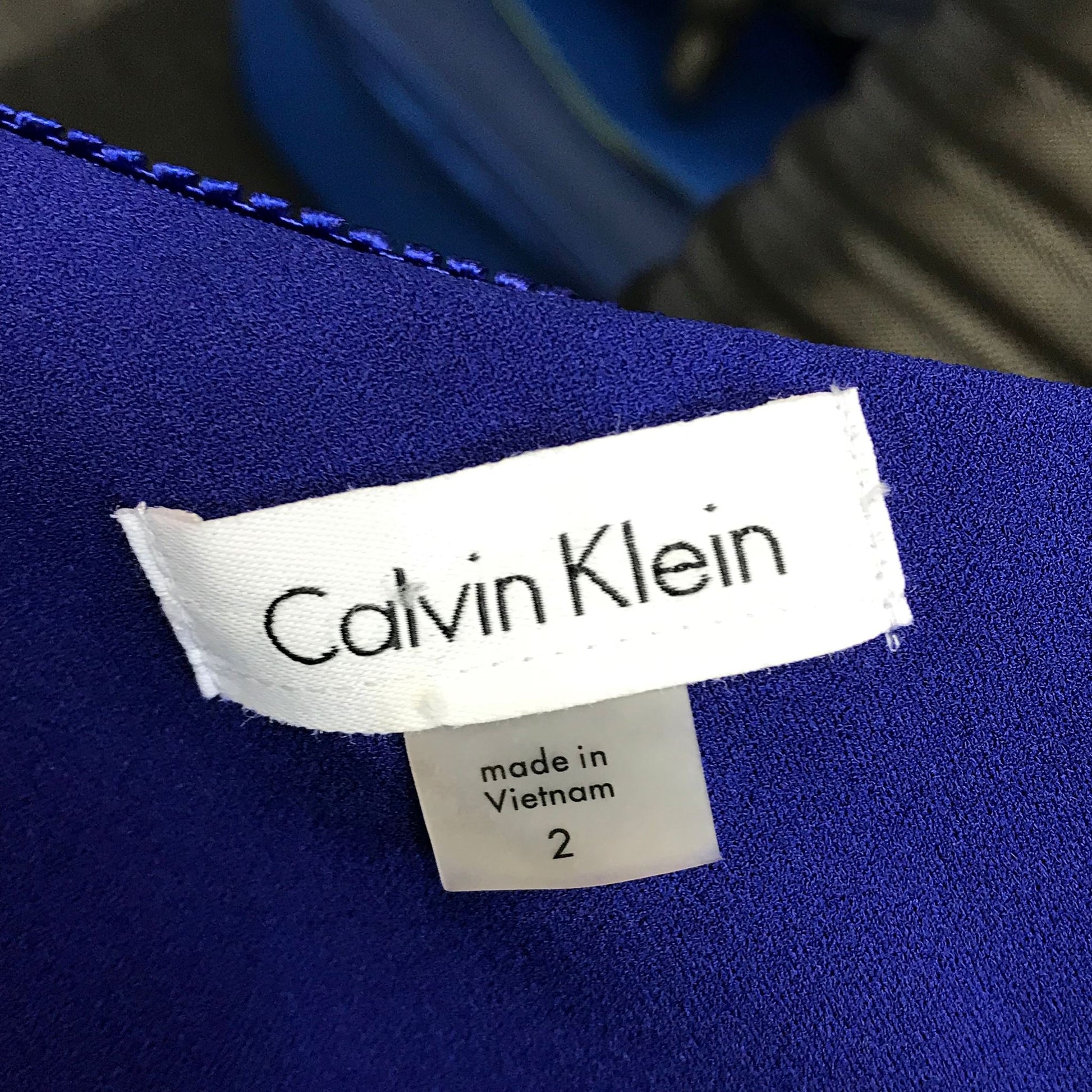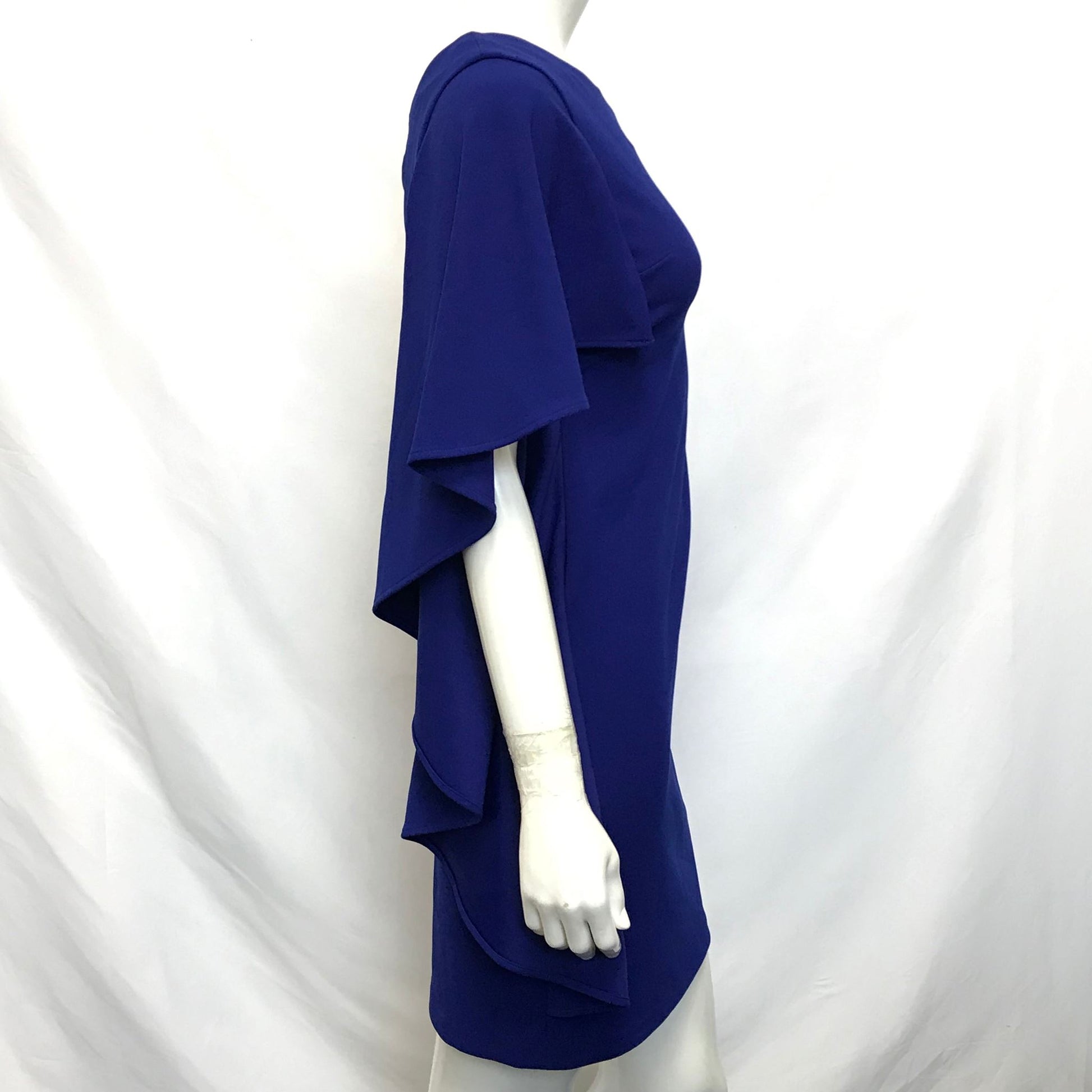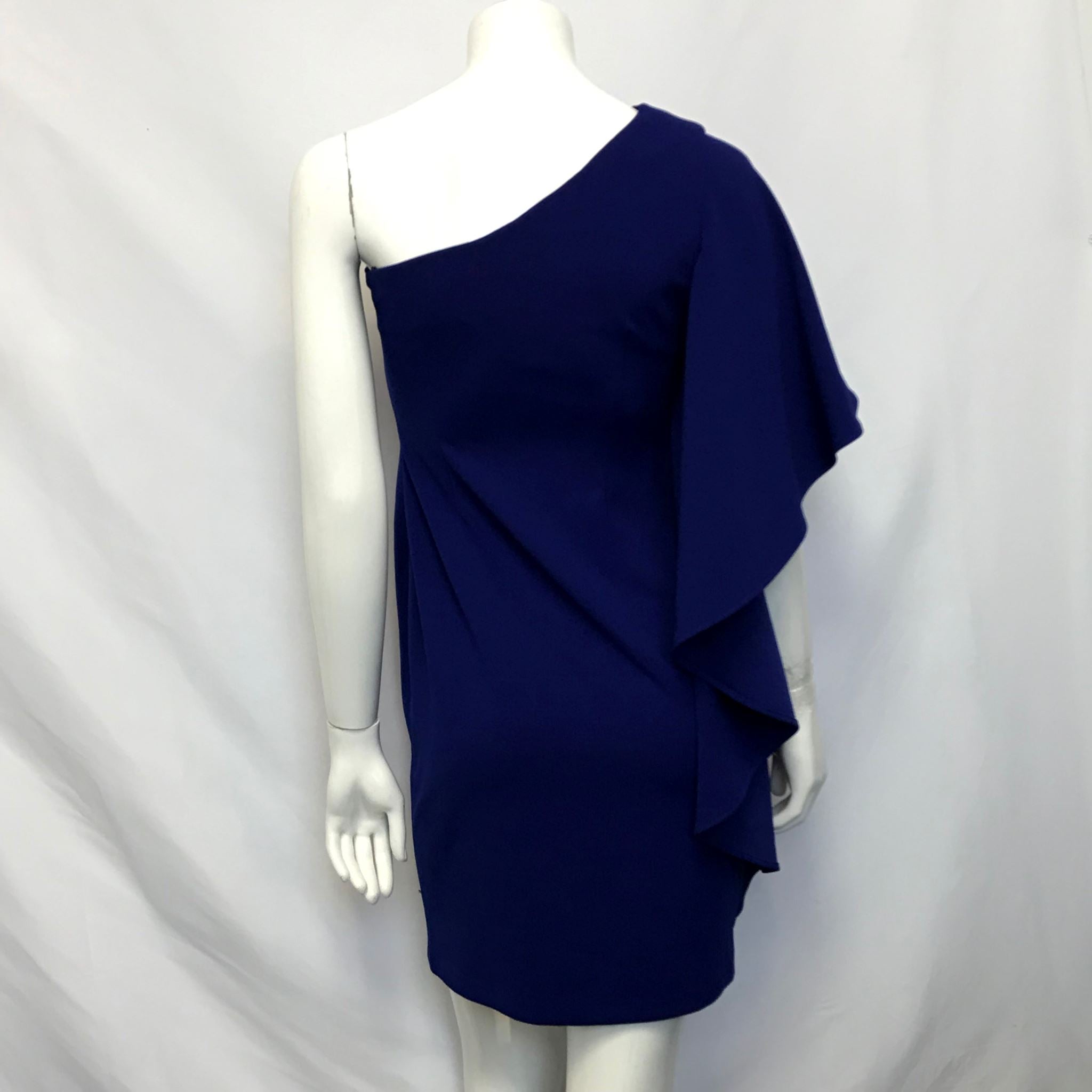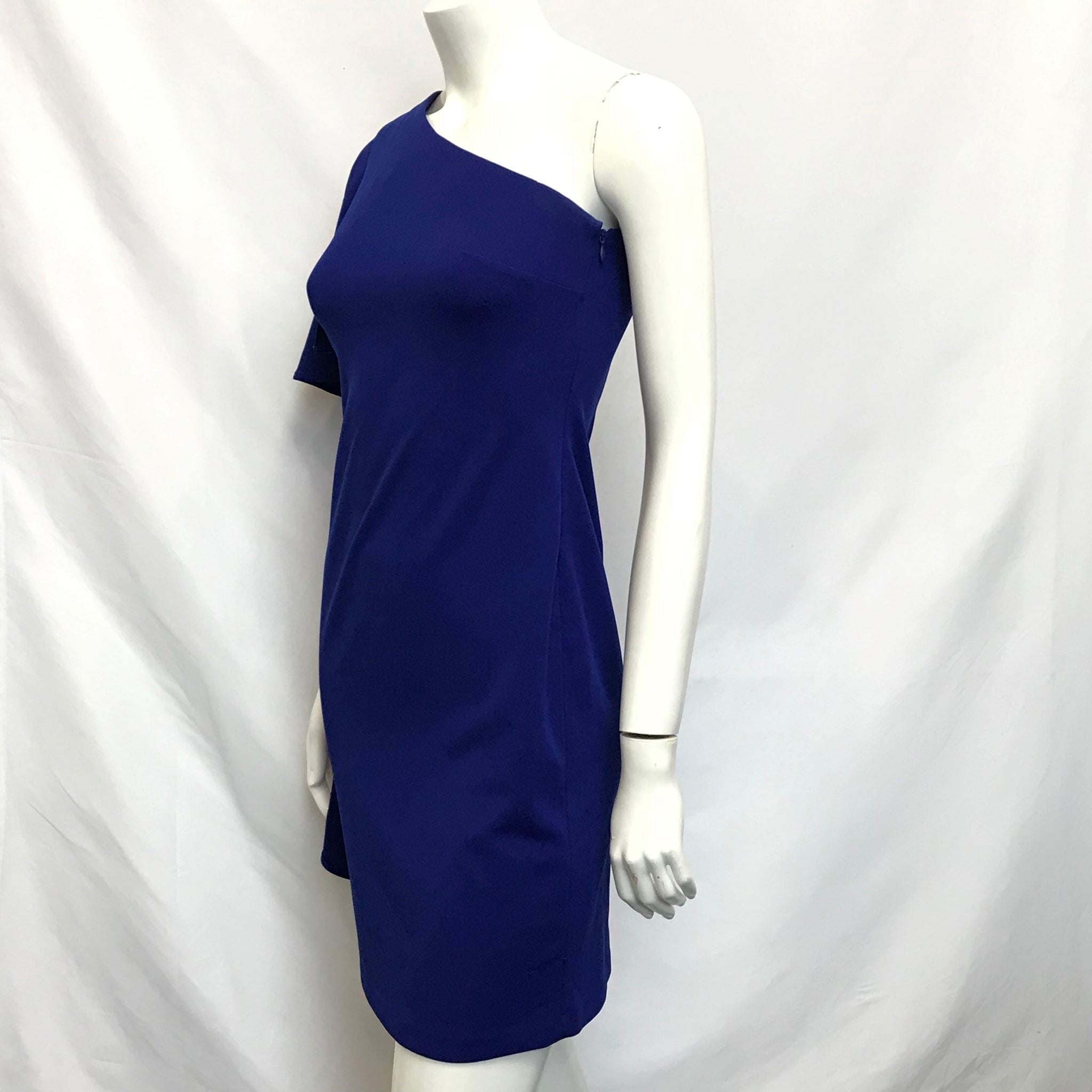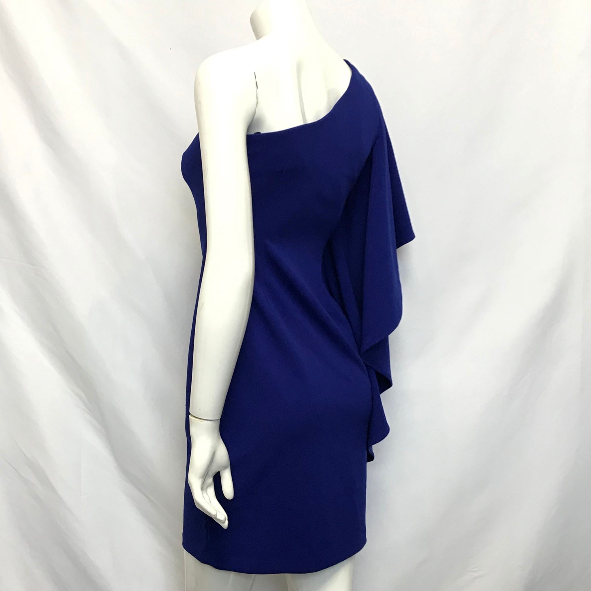Calvin Klein Asymmetrical One Sleeve Flutter Dress Cobalt Blue Sz 2