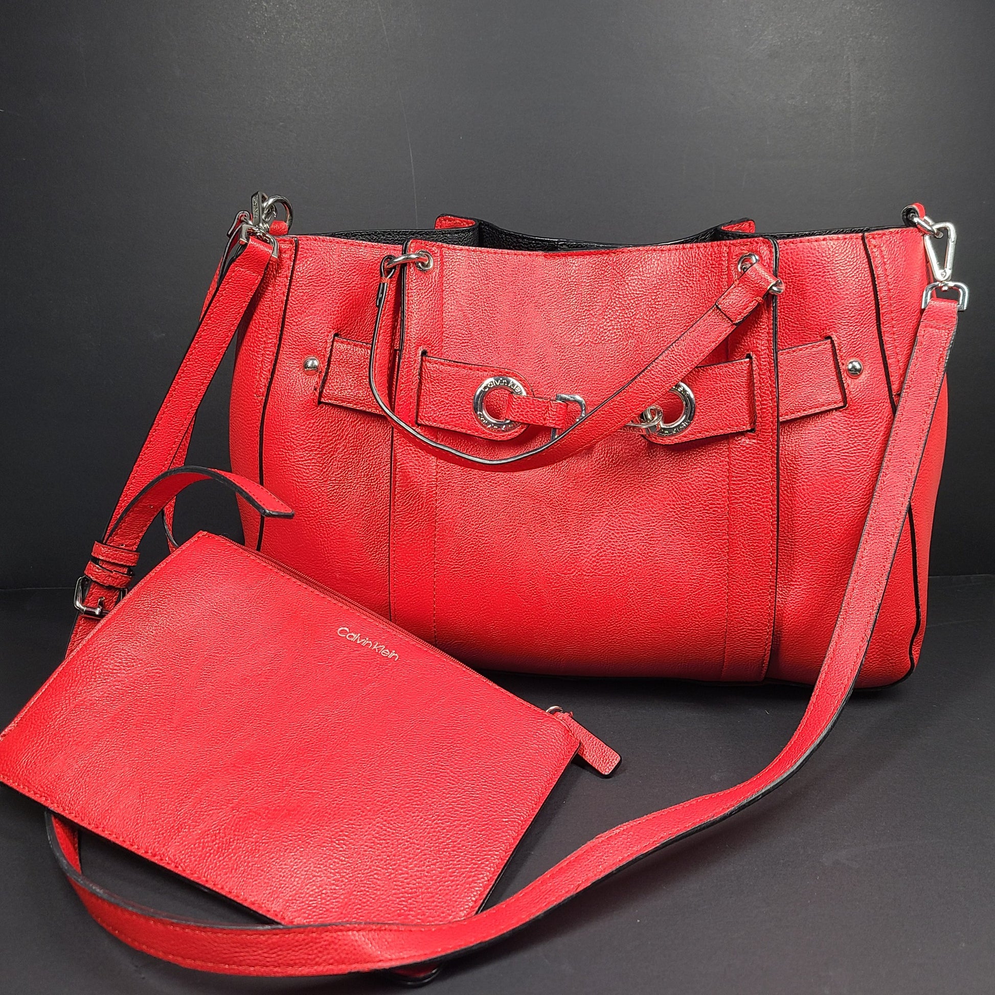 Calvin Klein Red Faux Leather Purse + Wristlet Pouch H9GDZKK1