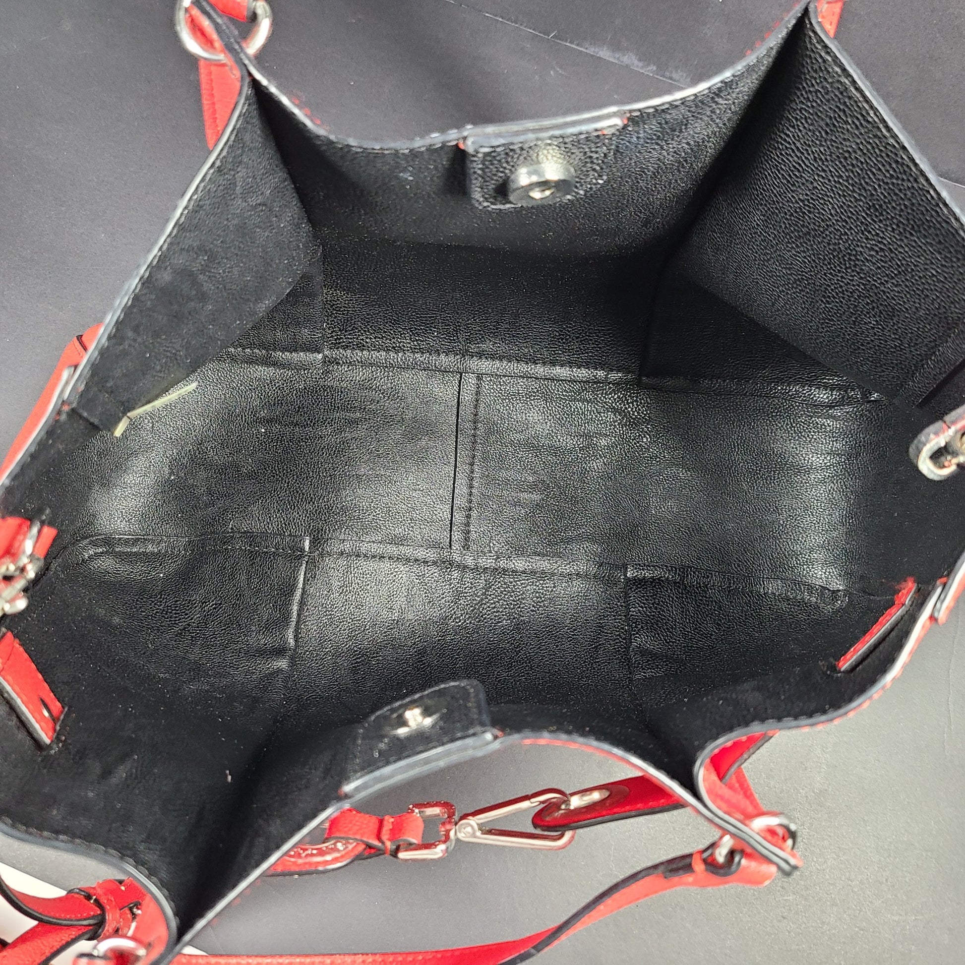- Material: Faux leather. Silver hardware.