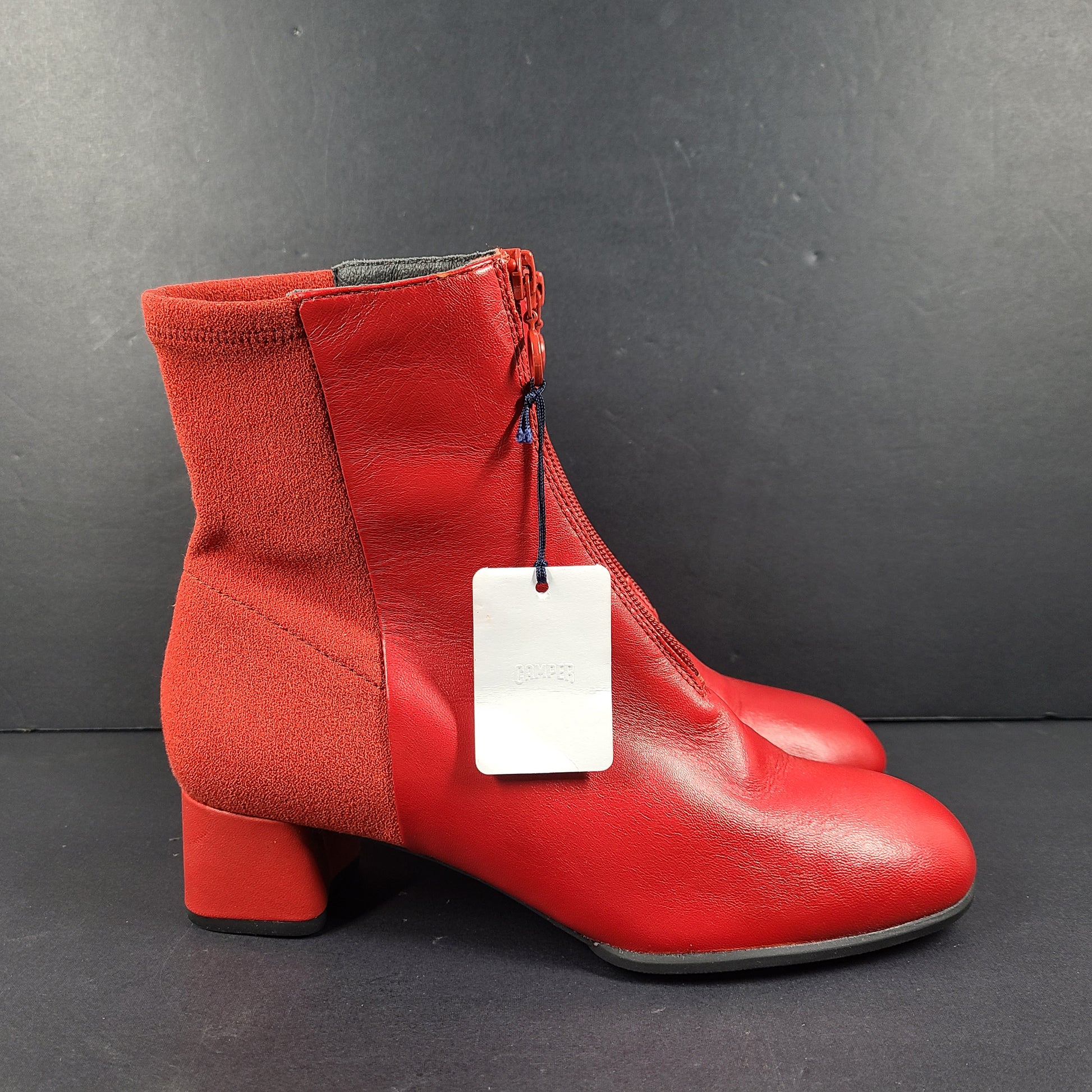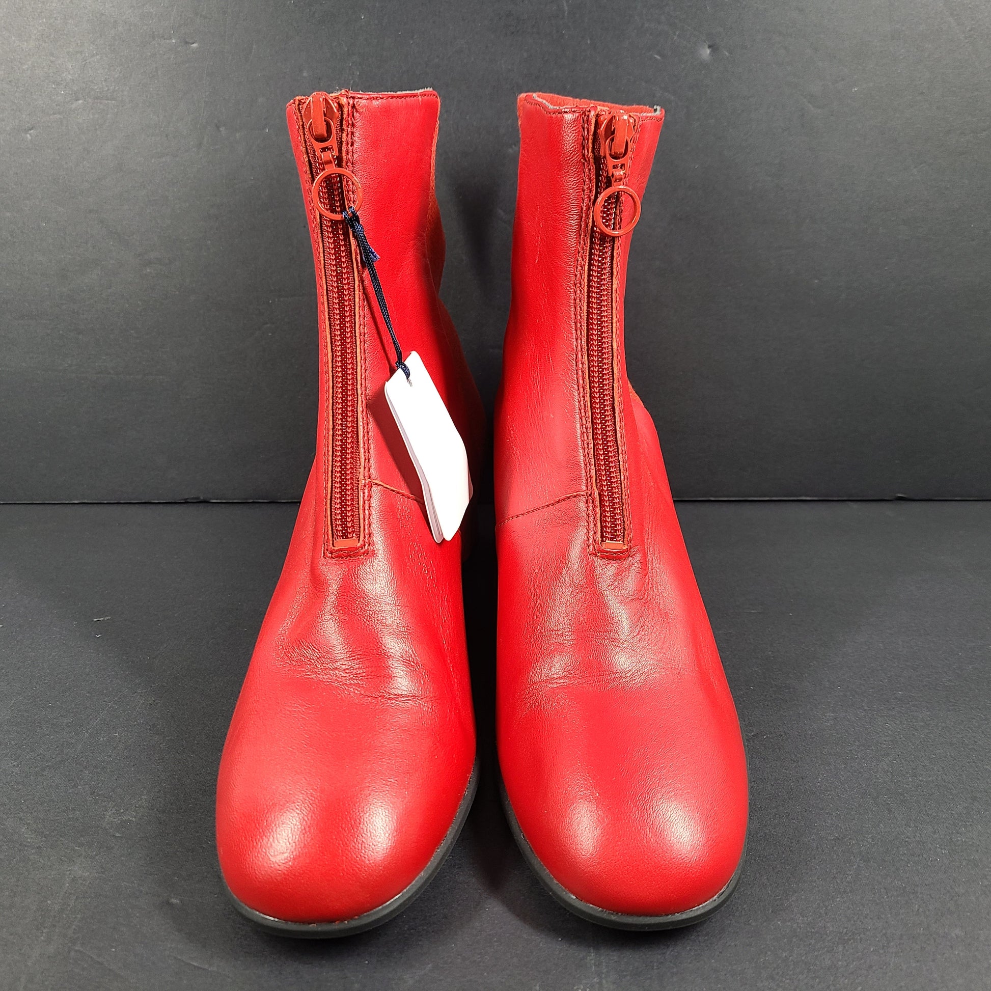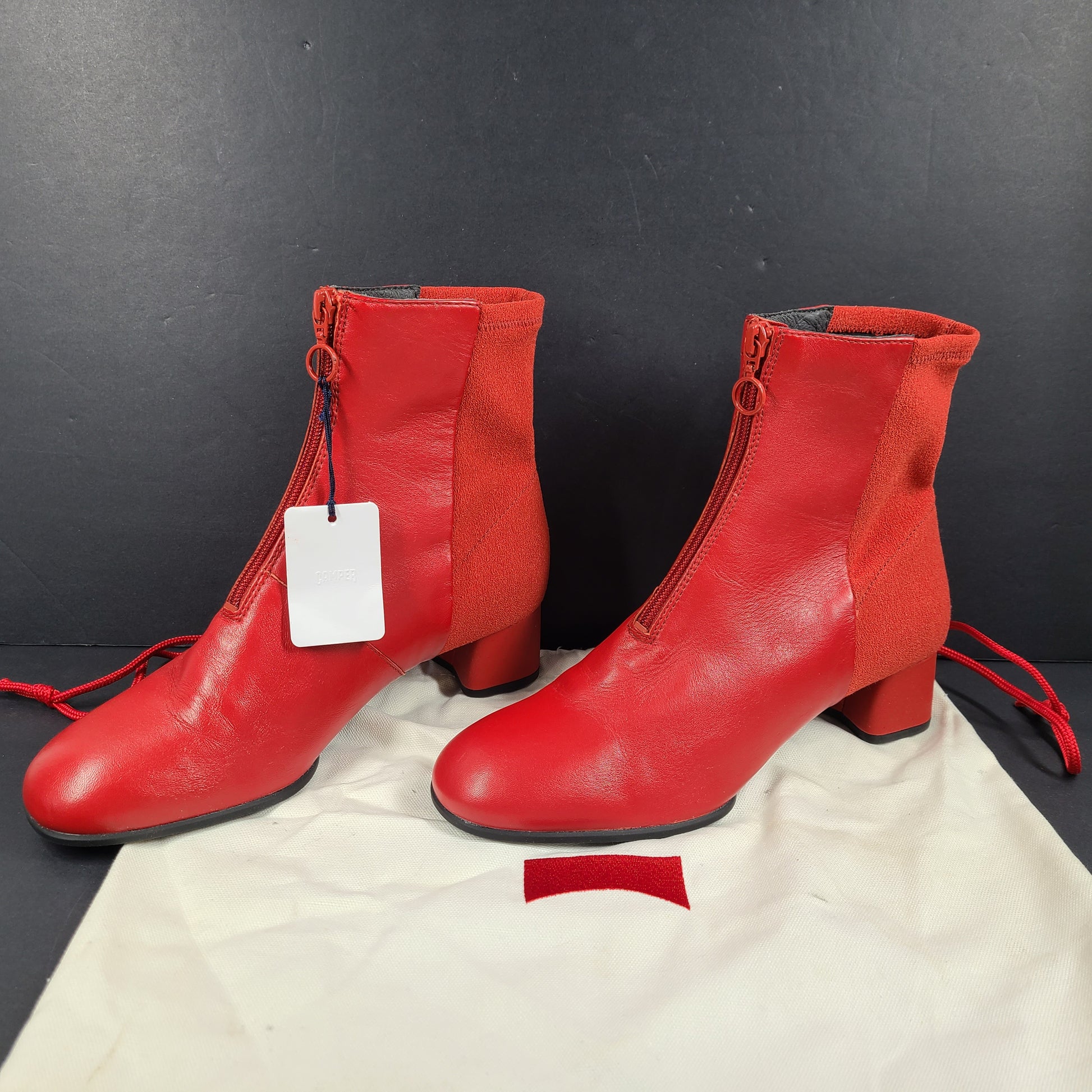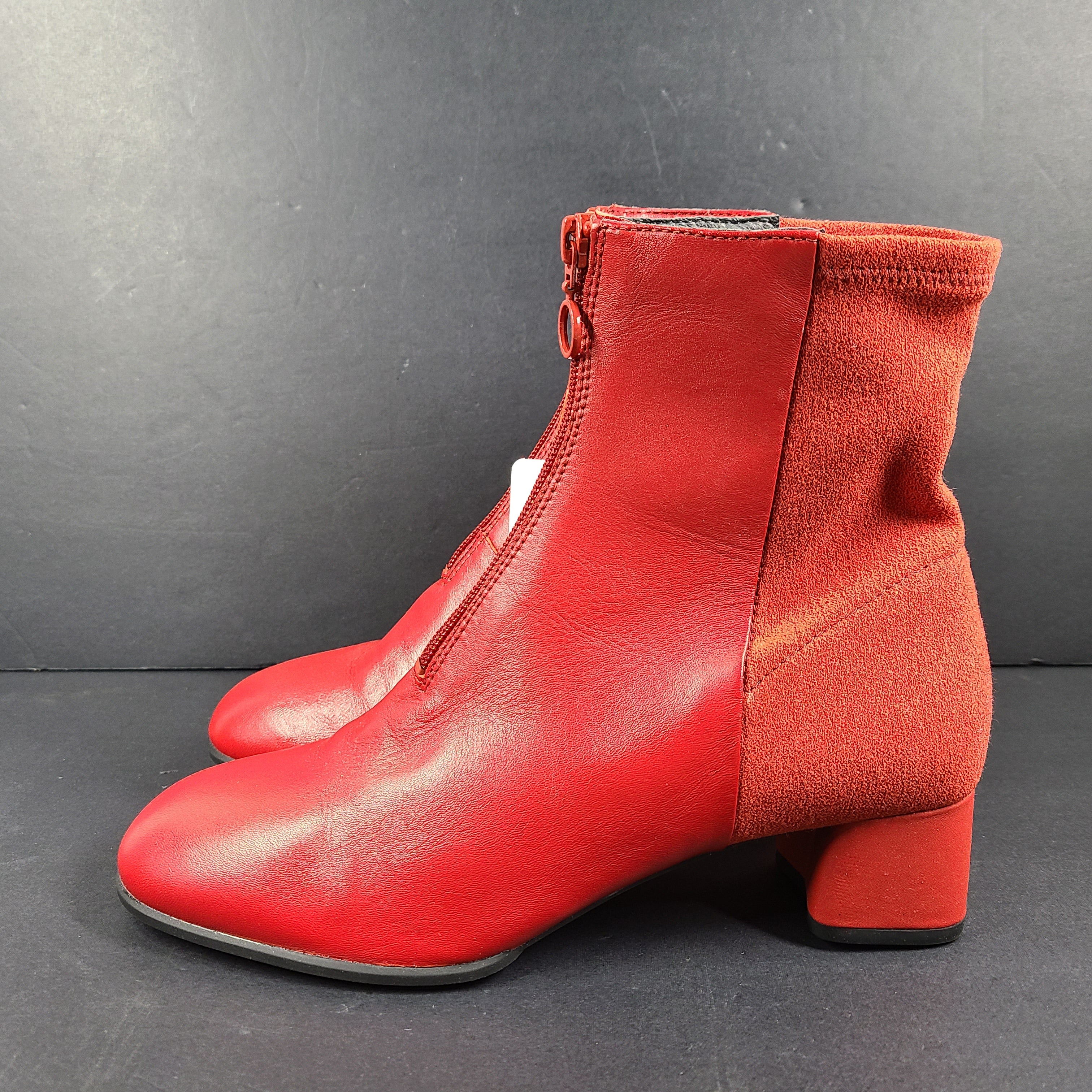 Camper Women's Leather Ankle Boots Block Heel K400312-004 Red Sz 8 New