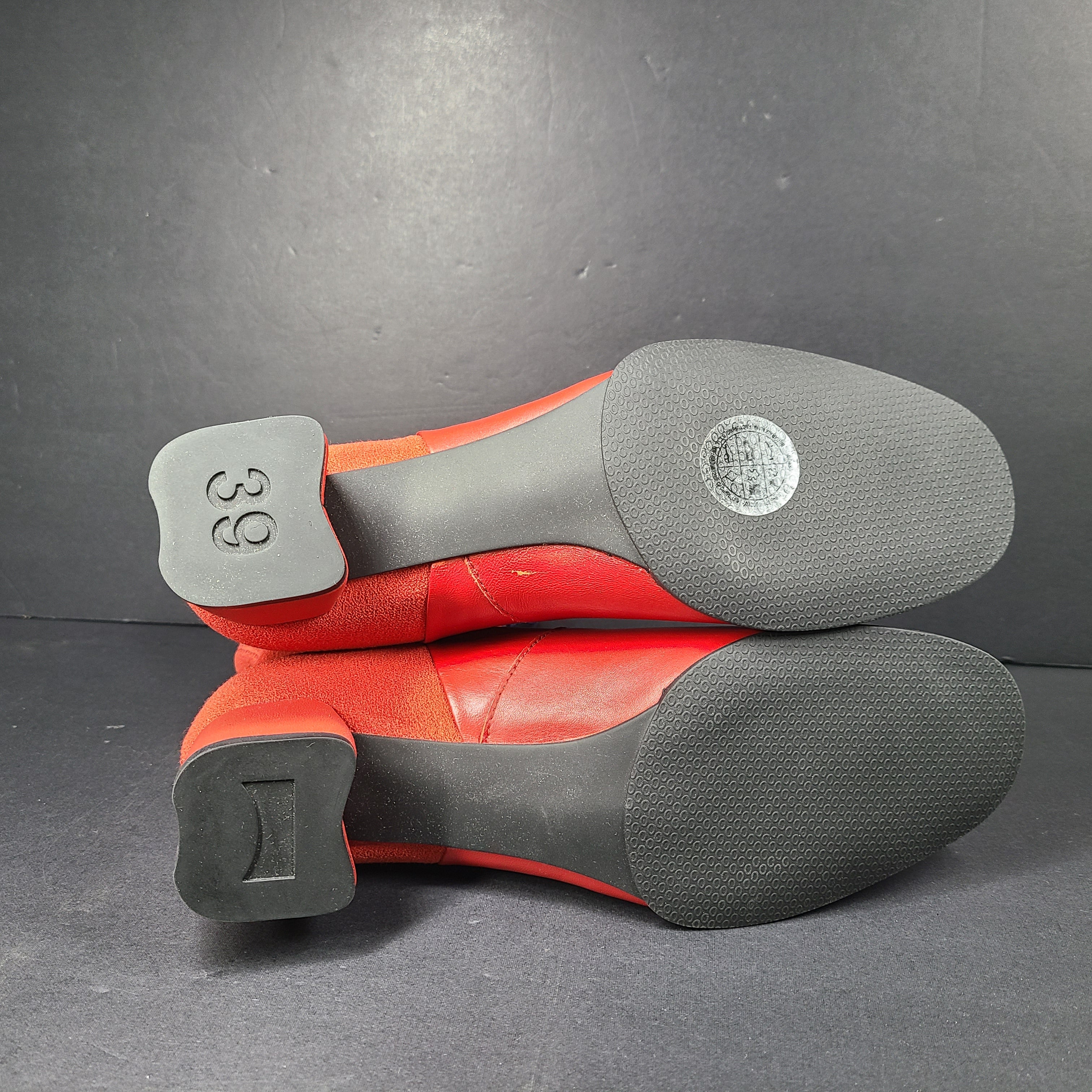 - Red leather material