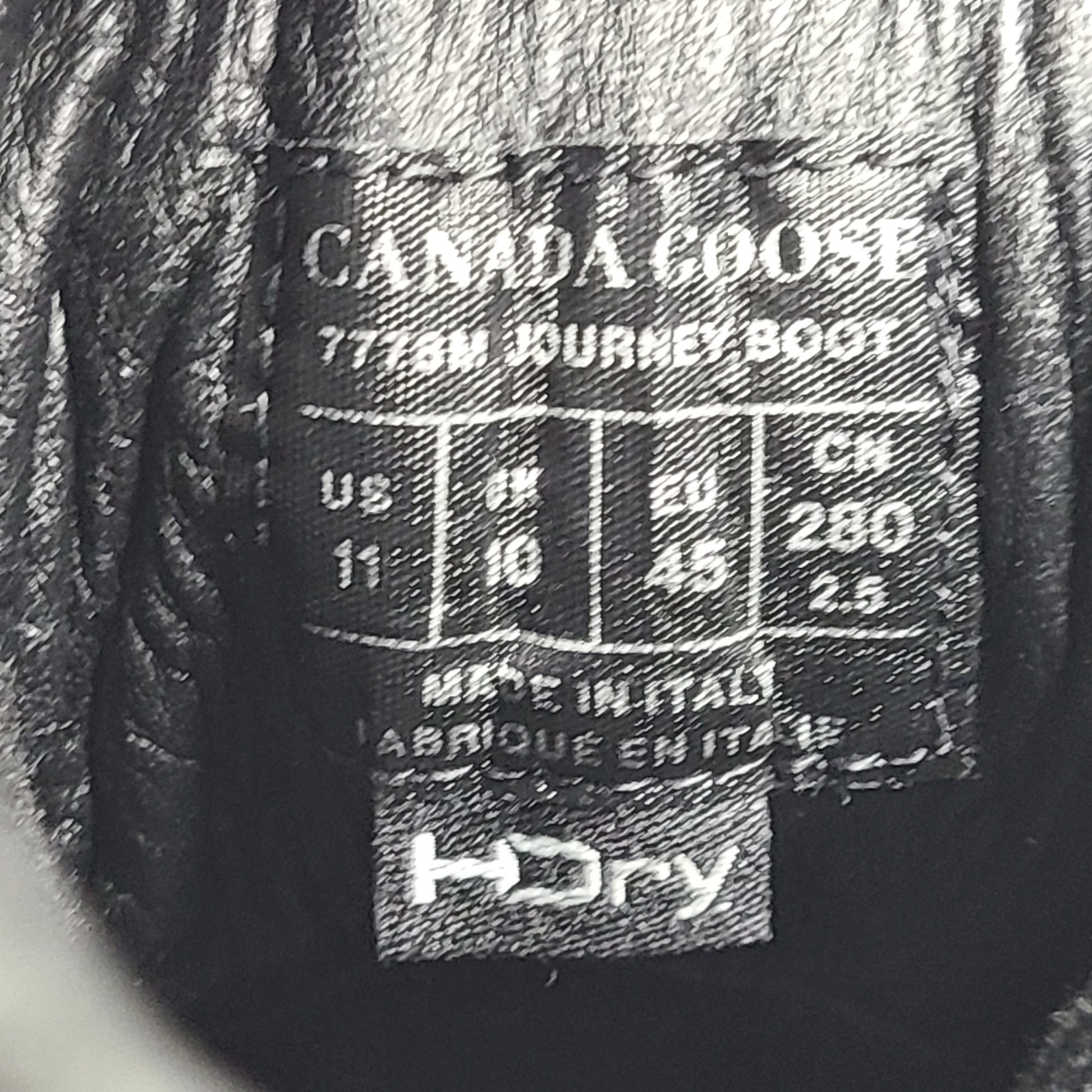 Canada Goose Journey Boot 7778M Shoes Made in Italy Black Sz 11