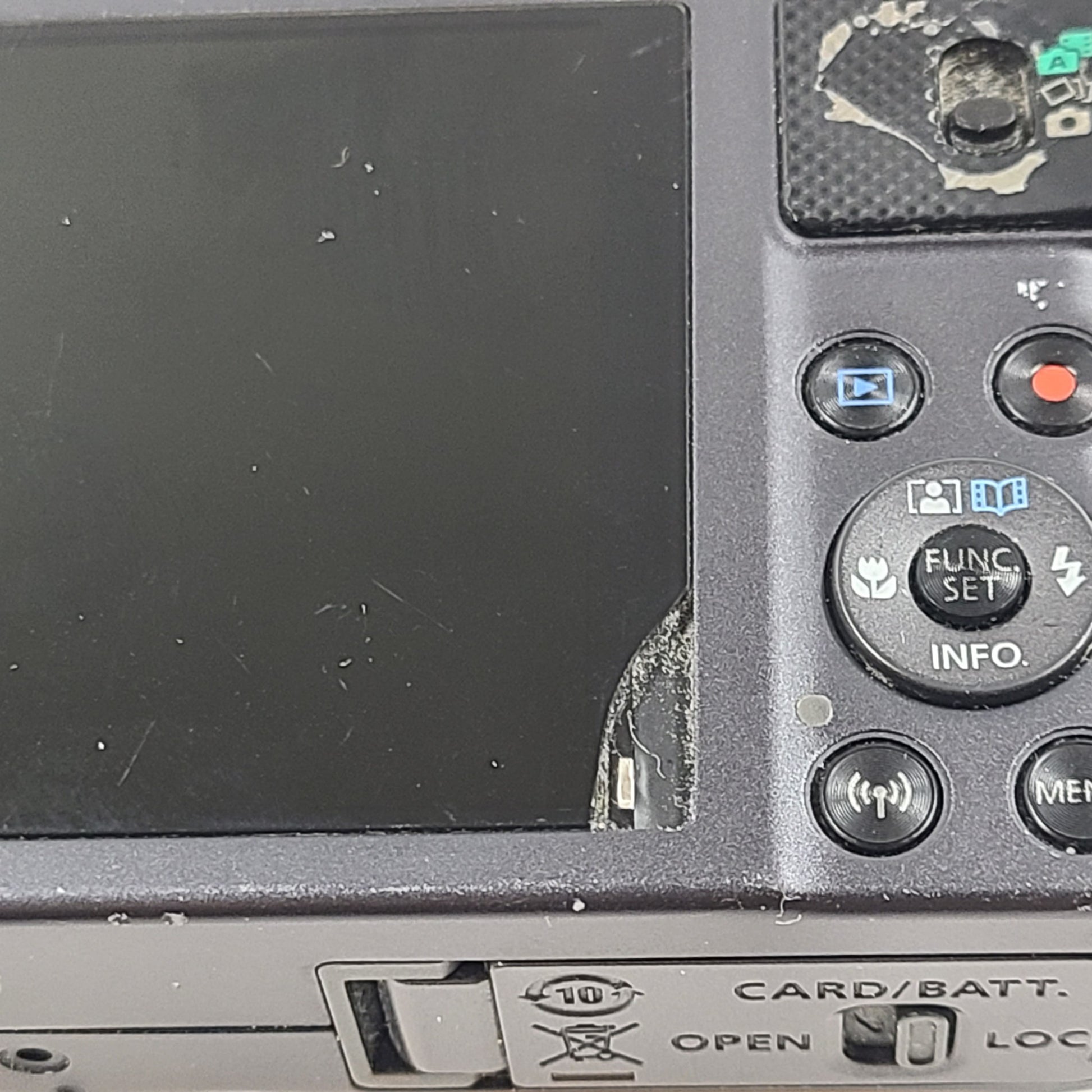 Condition: Used - Tested and fully functional. A corner of the screen has broken off. Please see pictures. This does not affect function in any way. Camera body has a few scuffs on corners. Other than that in good condition and camera works well.