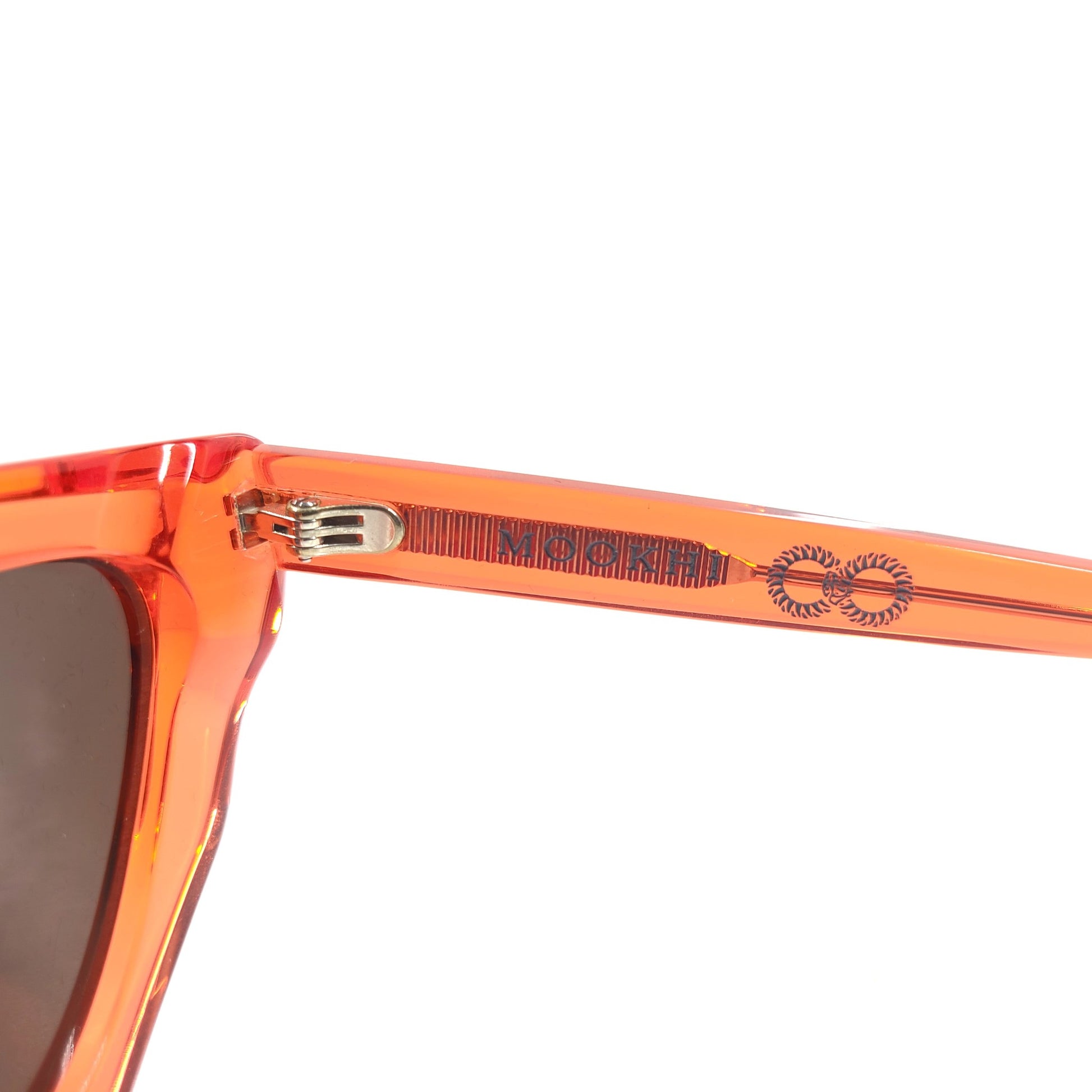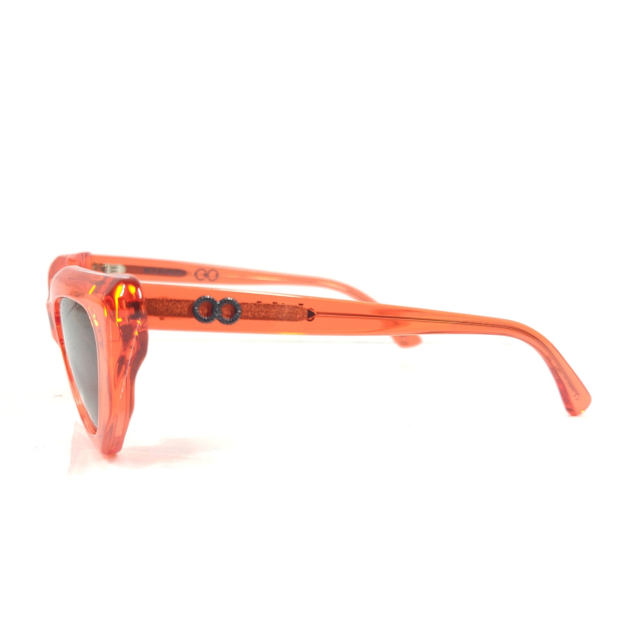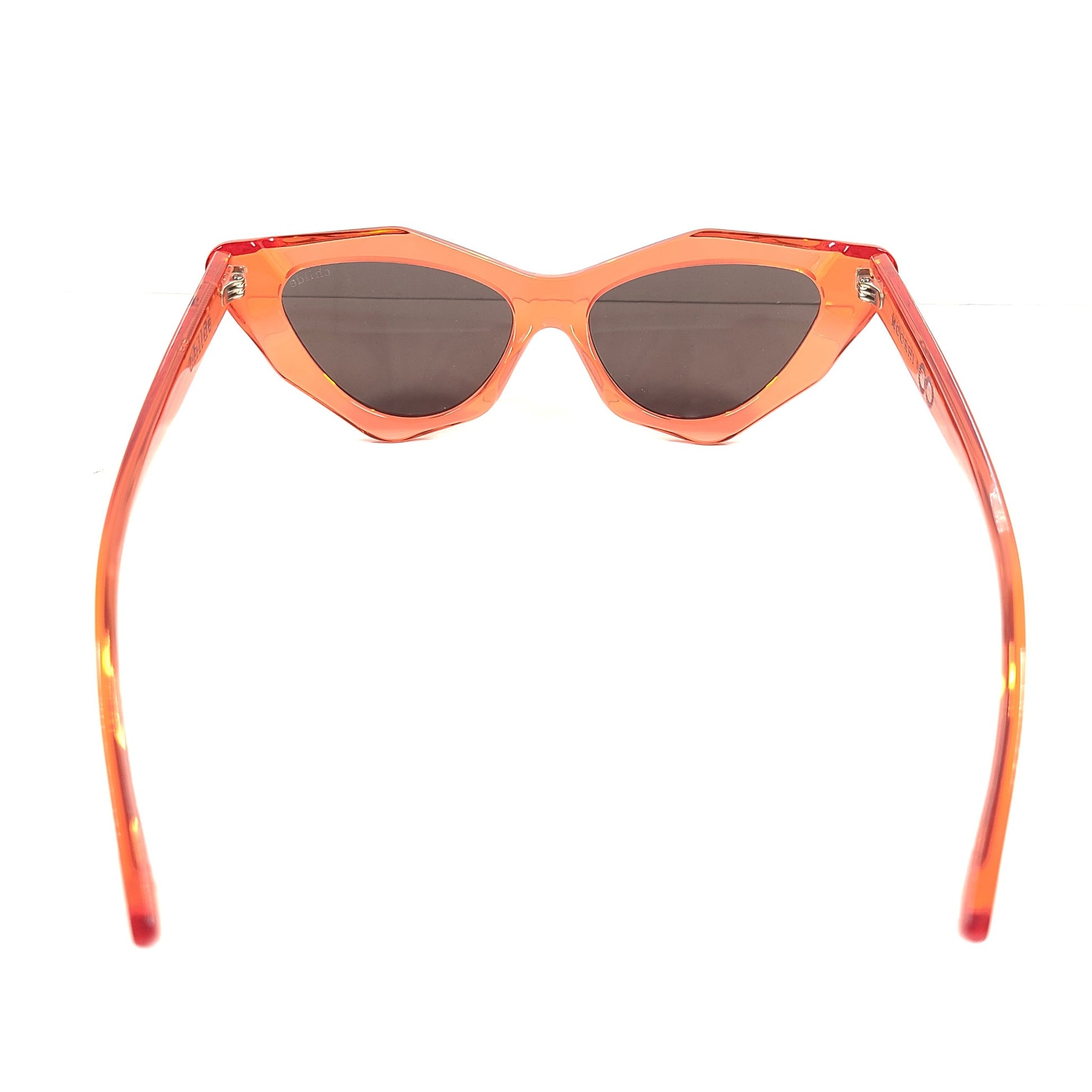 The Mookhi in Translucent Red with Amber Lens is a sophisticated modern cat eye sunglass.
