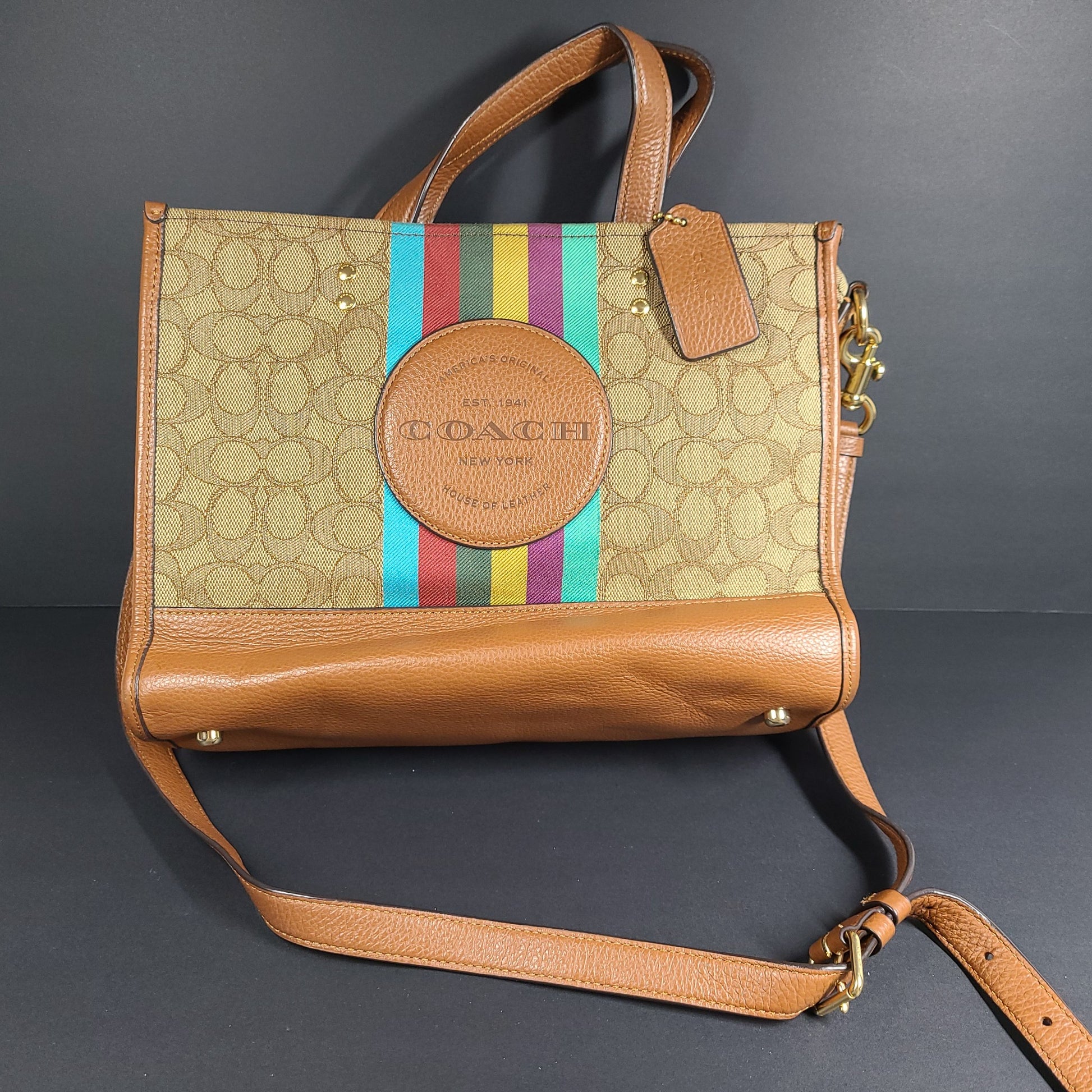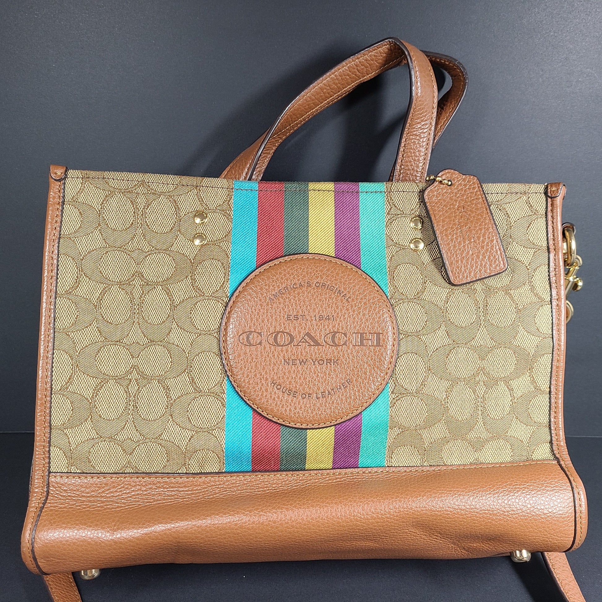 Coach Dempsey Tote 40 Signature Jacquard Stripe Coach Patch Bag Crossbody C5794