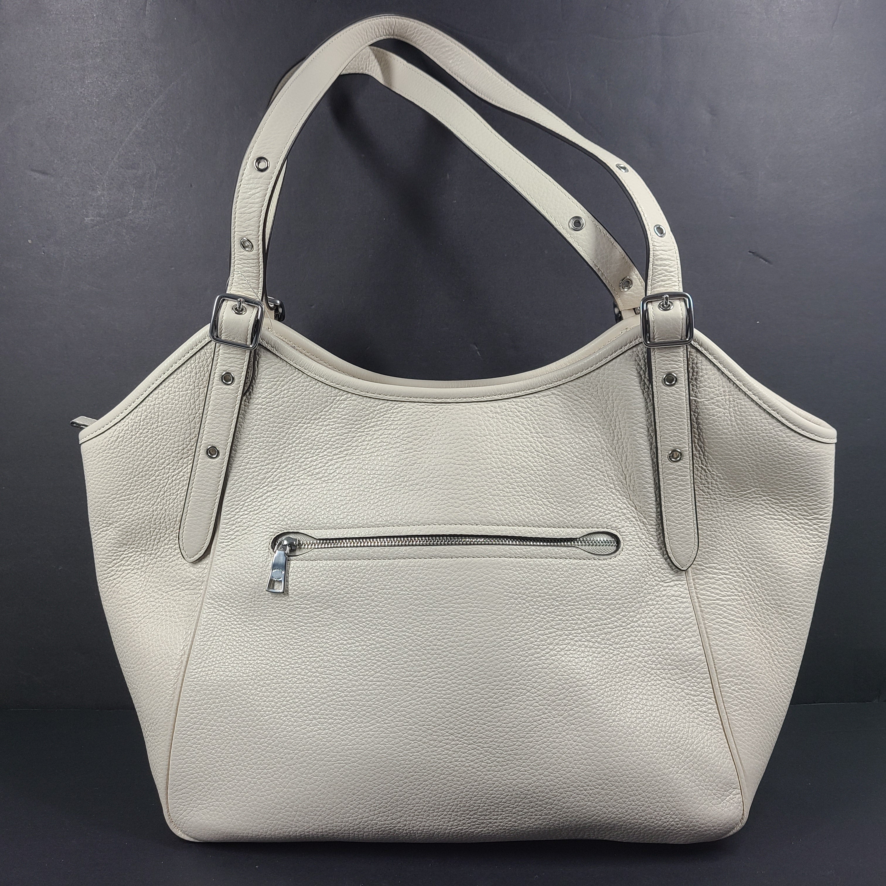 Coach Meadow Pebble Leather Shoulder Tote Bag CM074 Chalk Beige