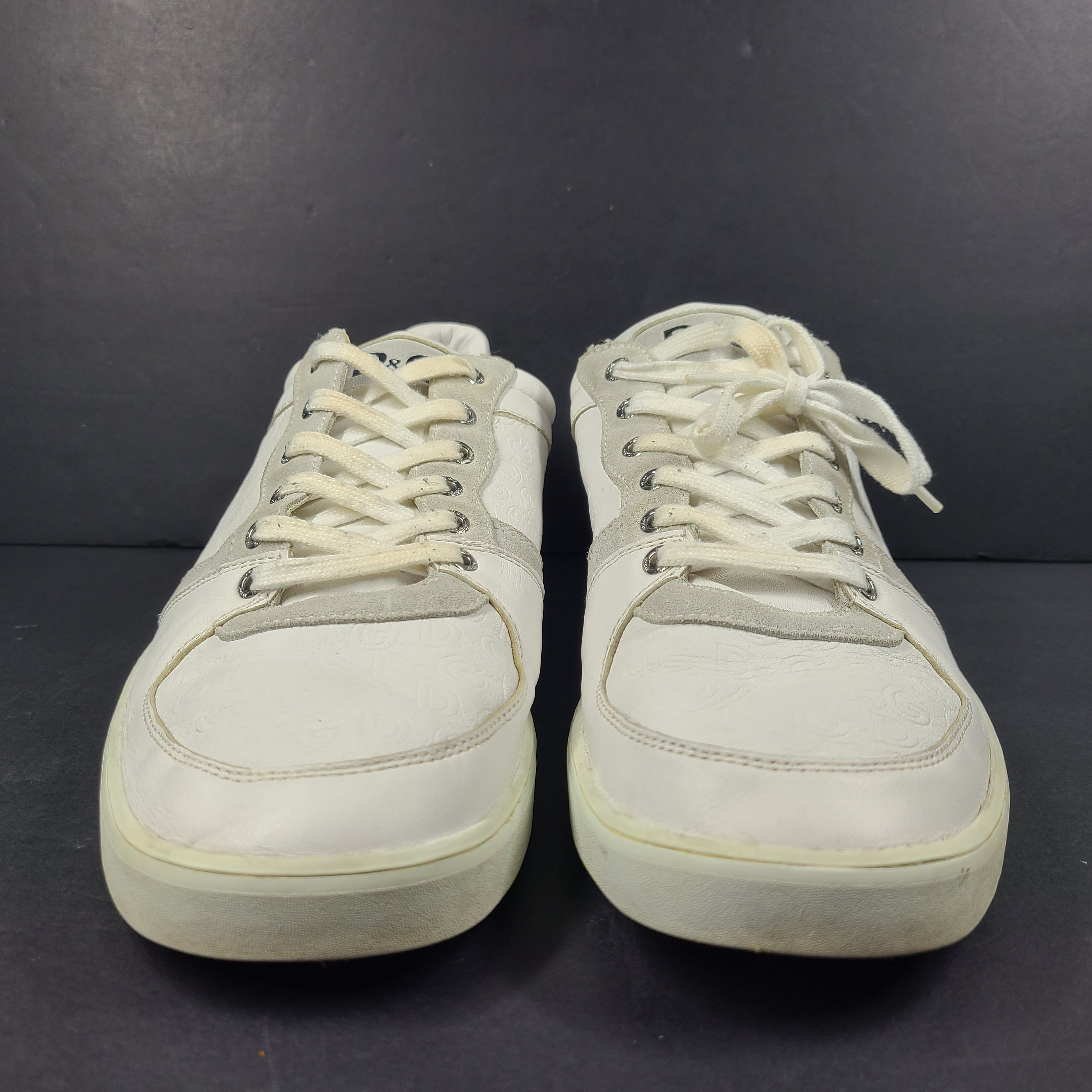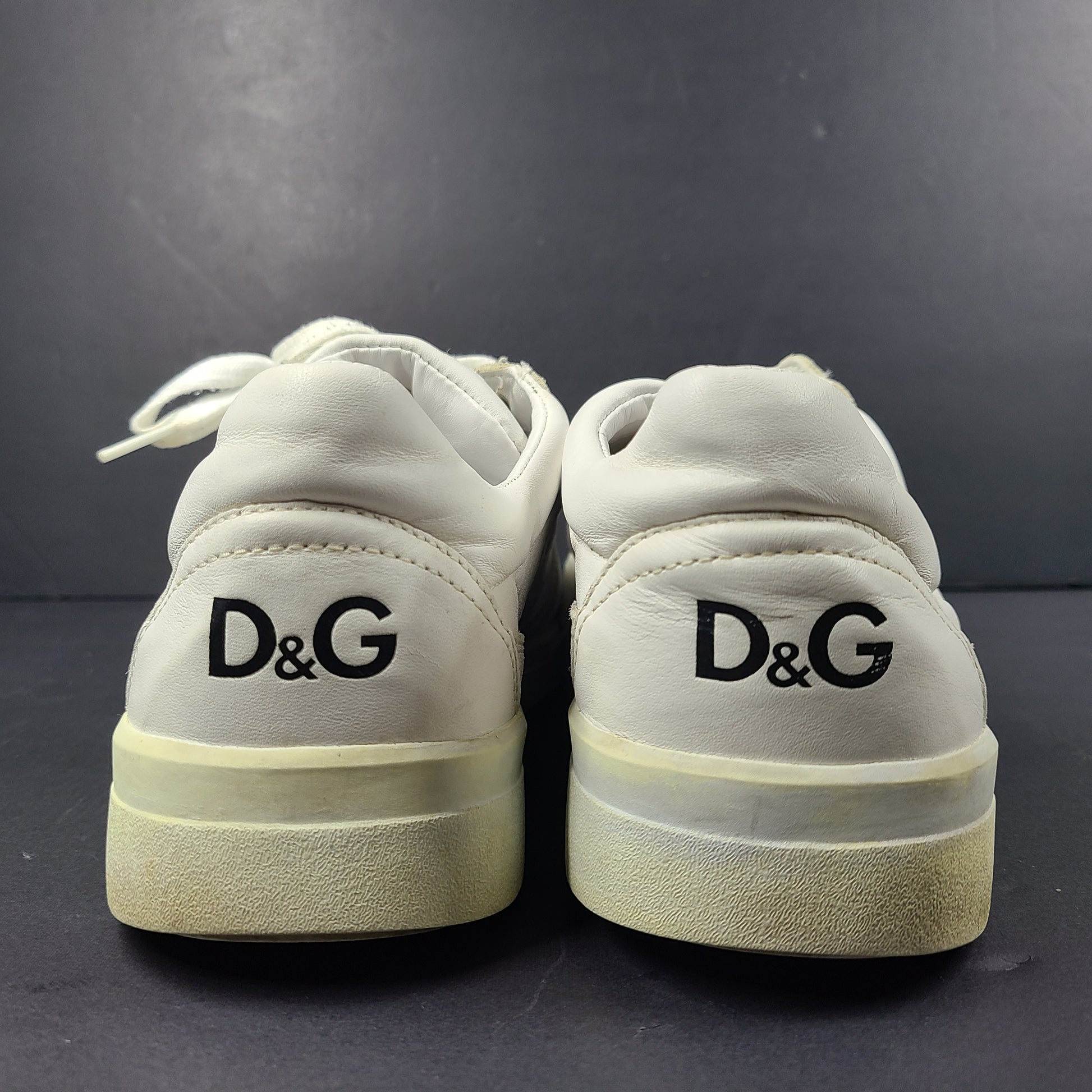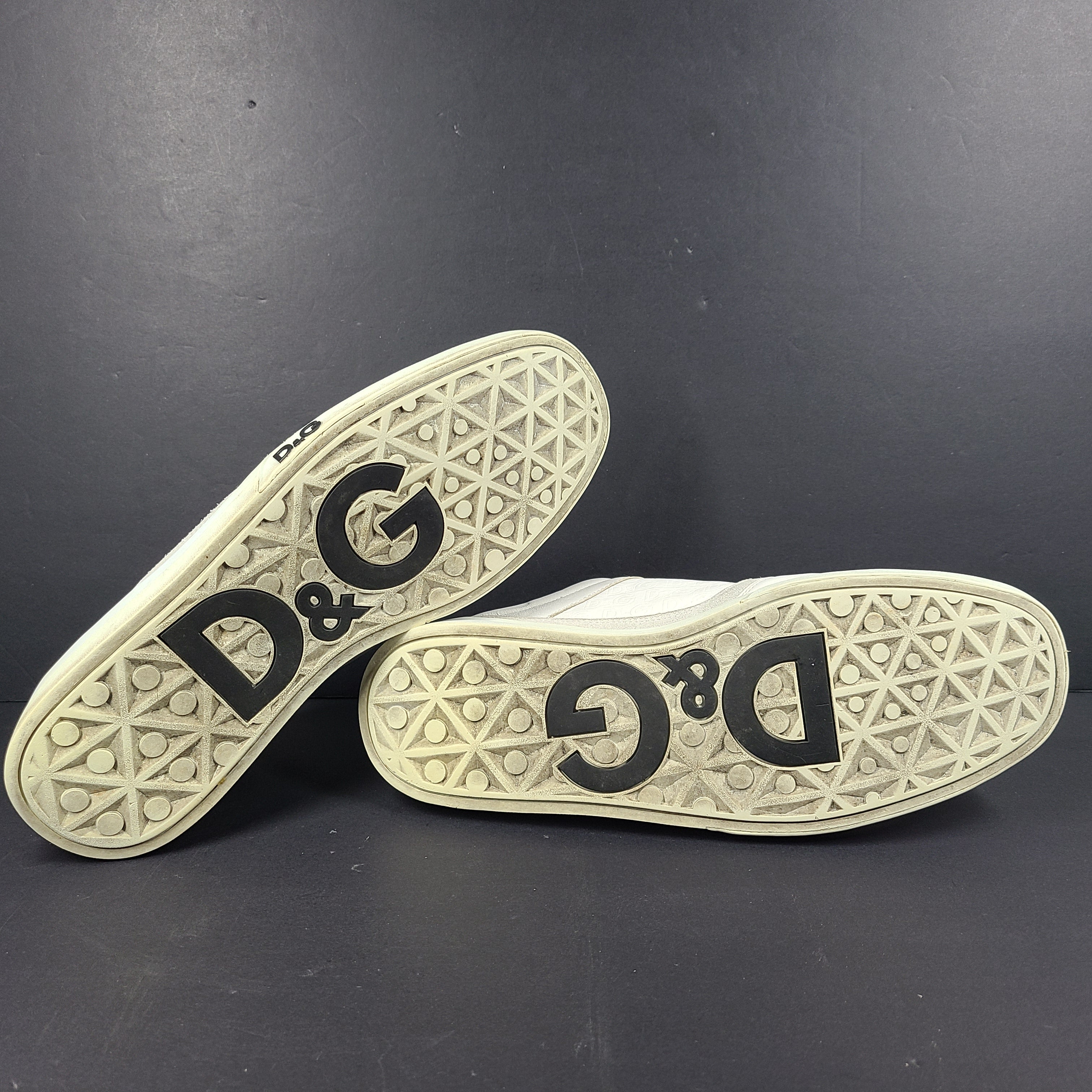 Description: These stylish white D&G Dolce & Gabbana sneakers offer a casual and trendy footwear option. Ideal for everyday wear, they provide both comfort and style. Premium leather. Feature rubber soles, calfskin insoles, and subtle DG logo patches.