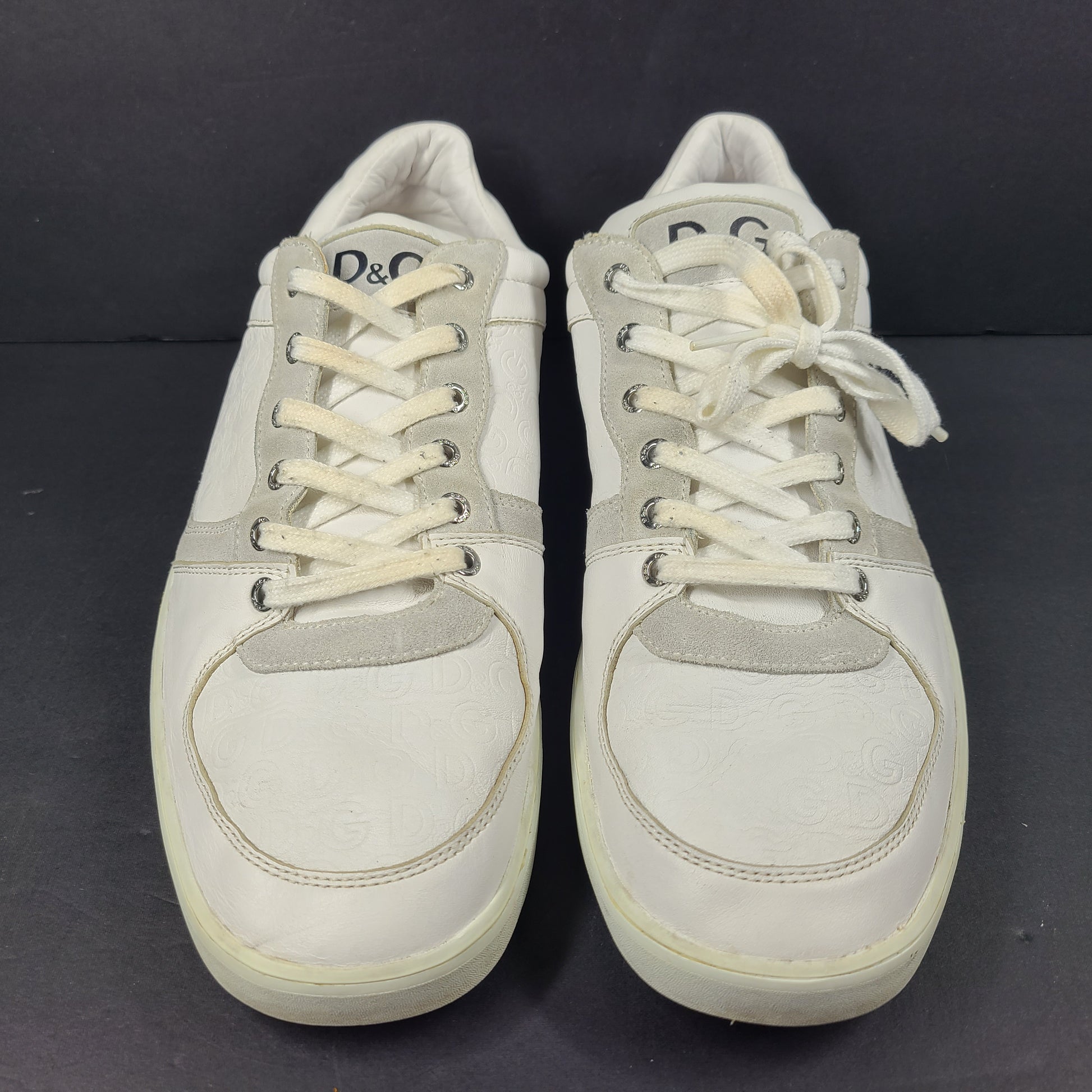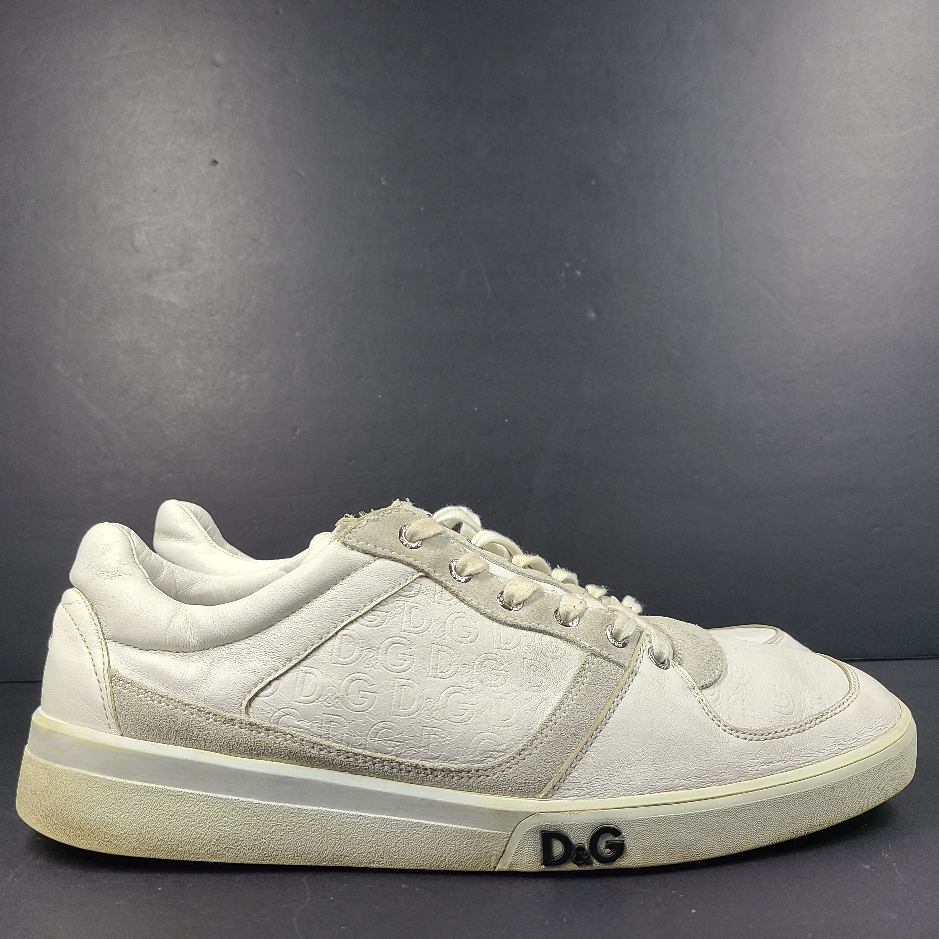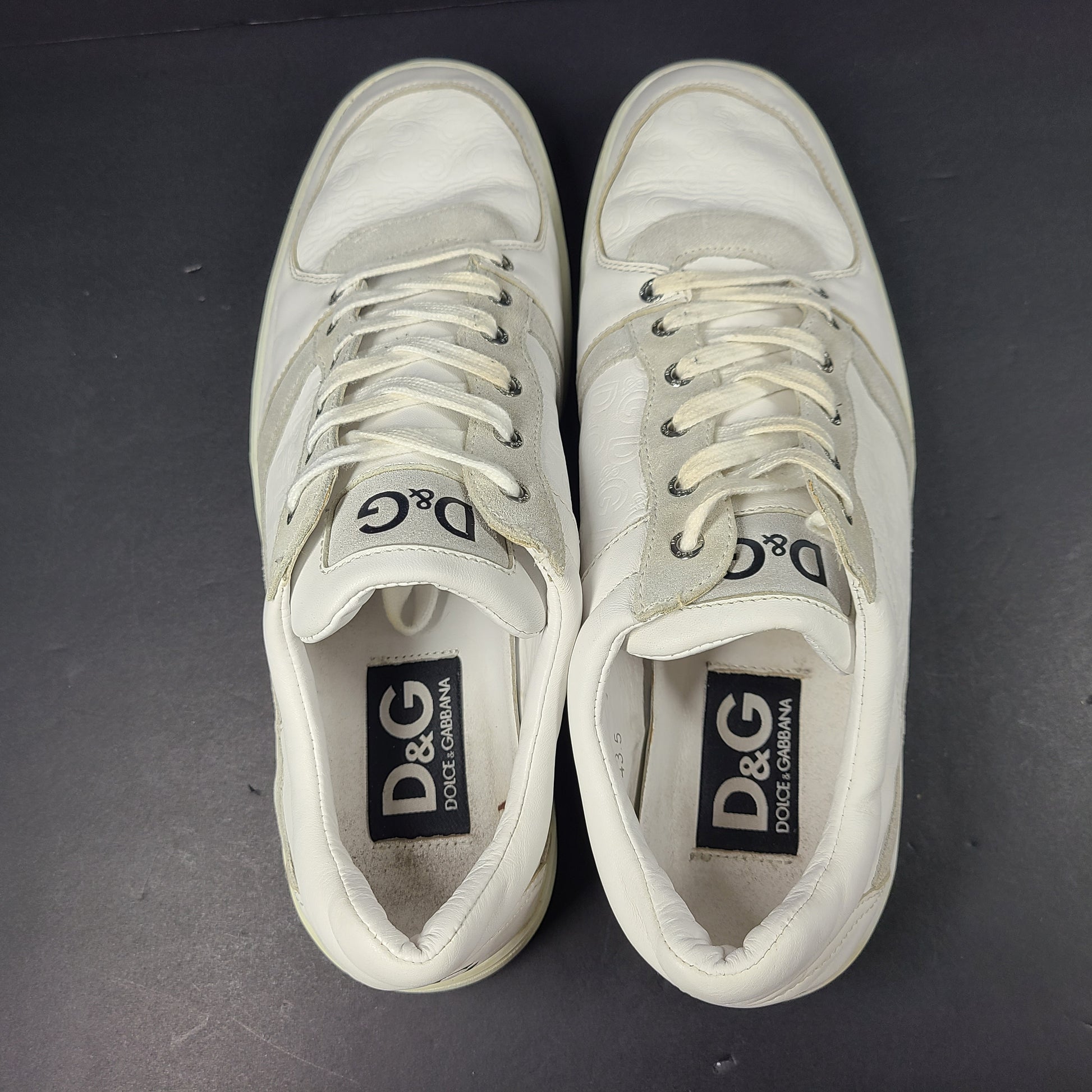 Description: These stylish white D&G Dolce & Gabbana sneakers offer a casual and trendy footwear option. Ideal for everyday wear, they provide both comfort and style. Premium leather. Feature rubber soles, calfskin insoles, and subtle DG logo patches.