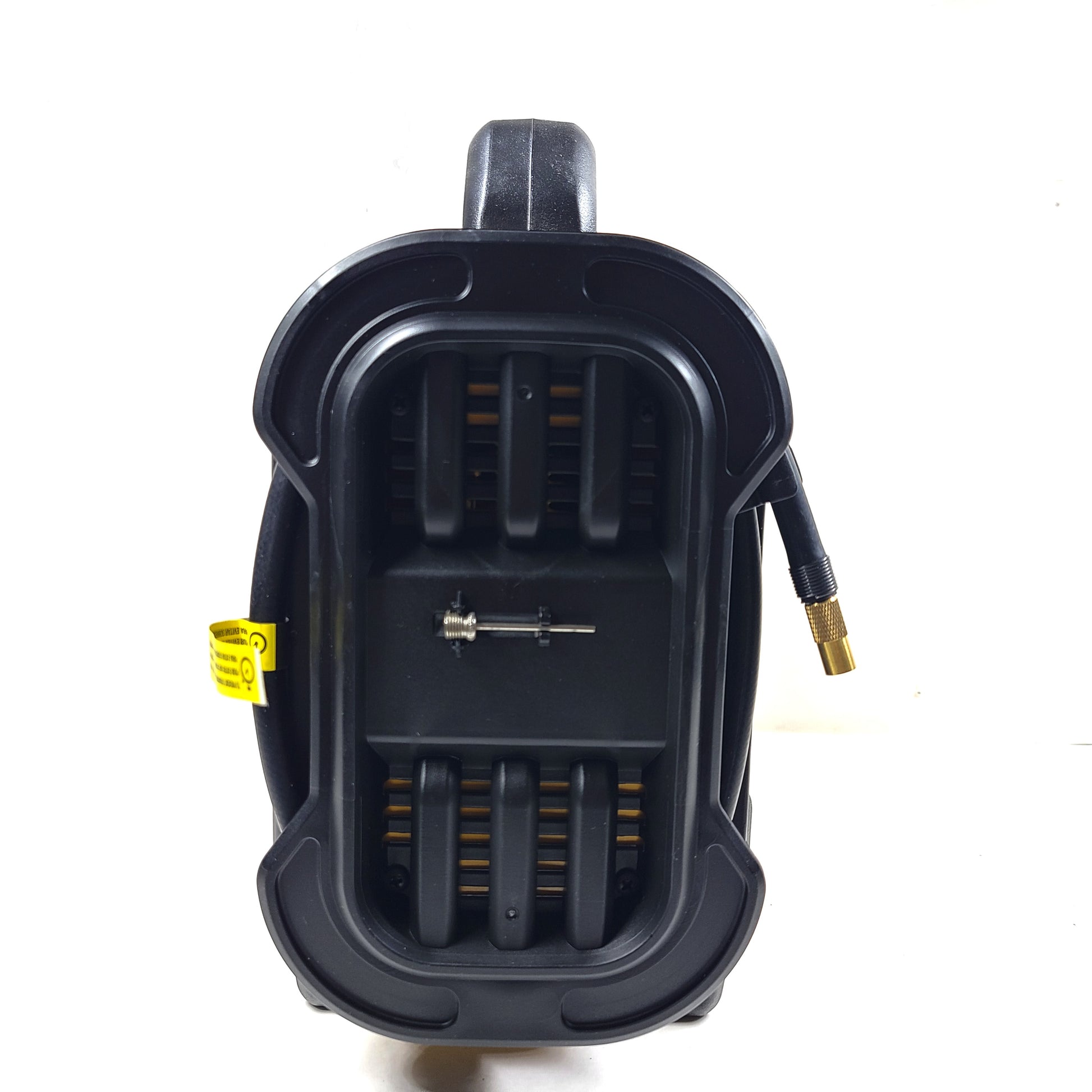 - Just attach the brass-tipped Sure Fit nozzle to your tire's valve stem, select the desired air pressure and the compressor will automatically shut itself off once it's finished, sports needle included