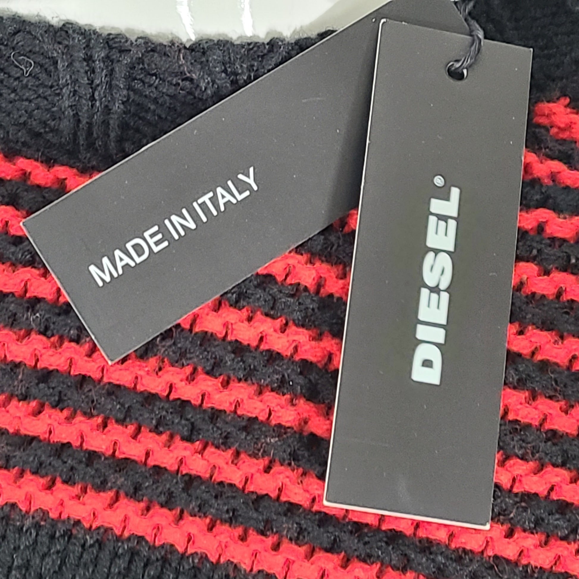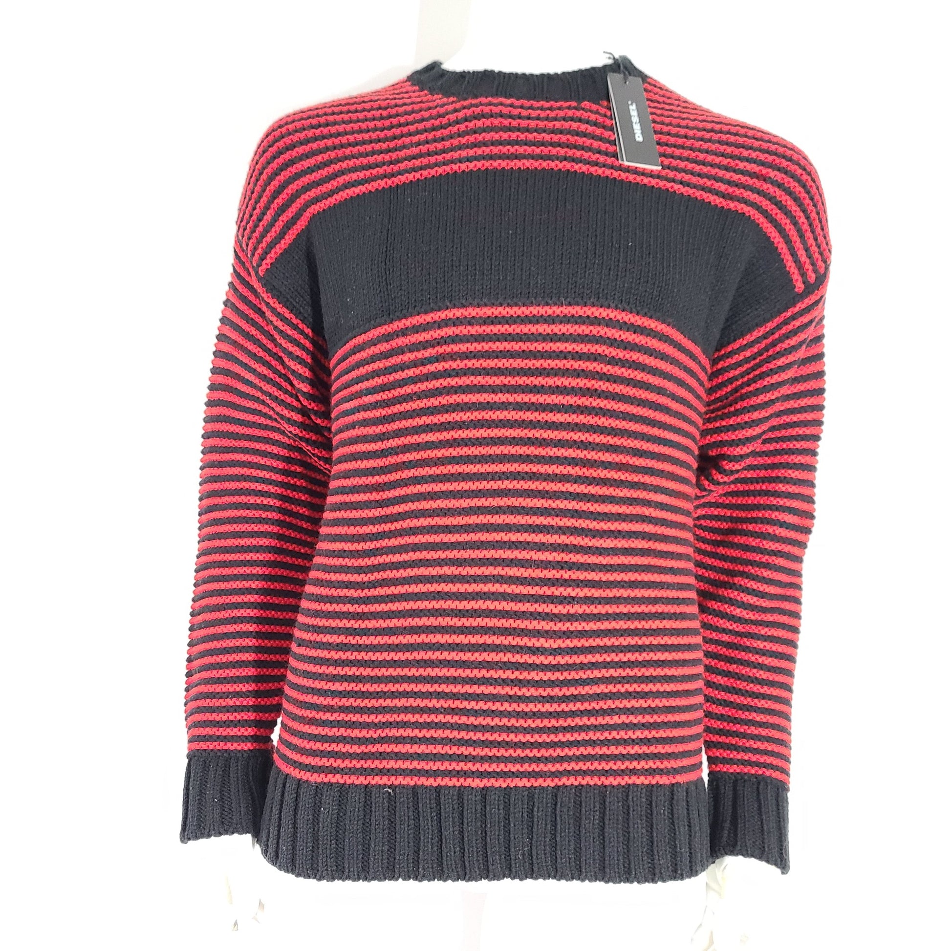 Diesel Men's K-Ballis Knit Sweater Striped Formula Red Black 'Only the Brave' S